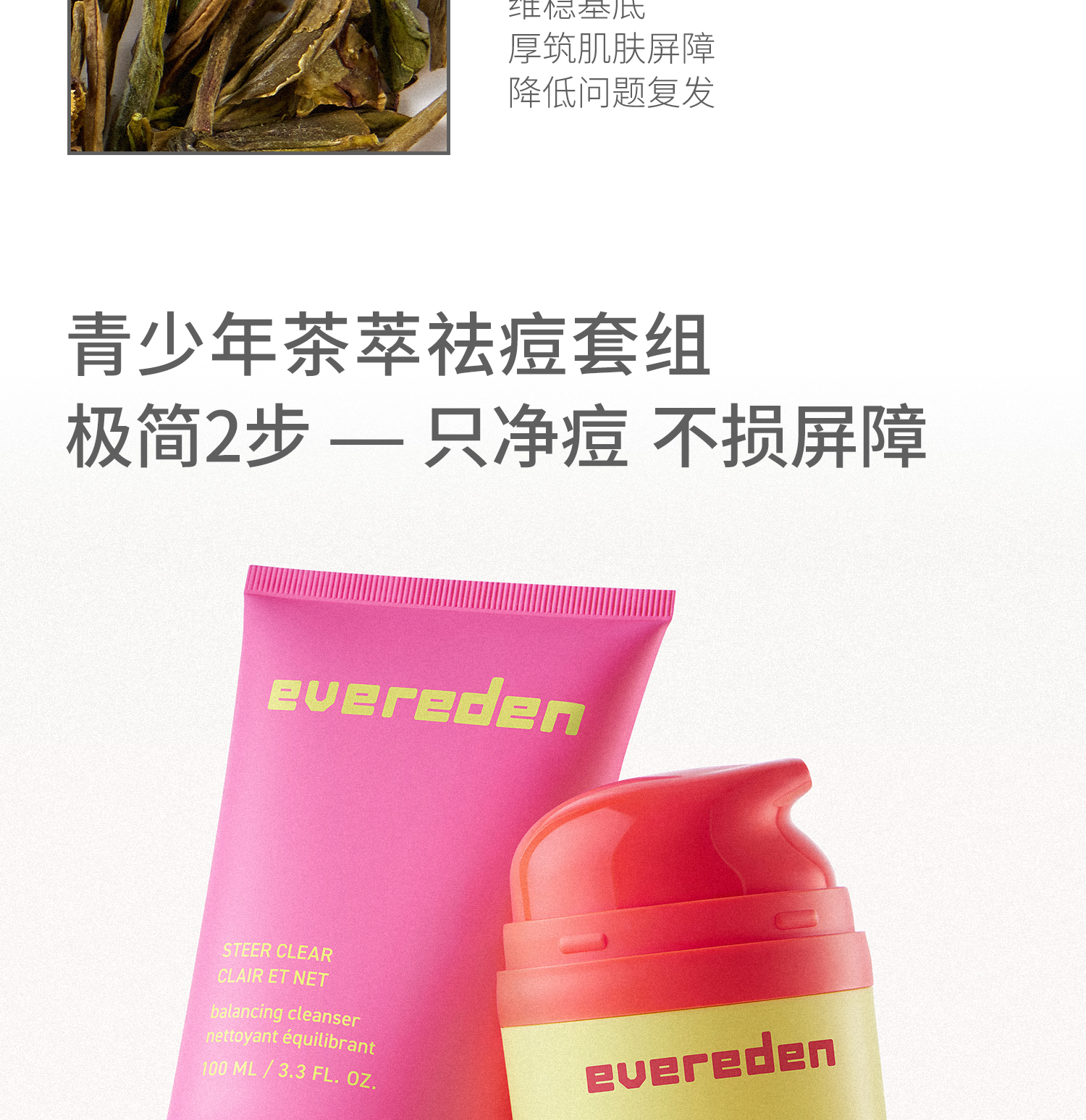【新品上市】【套组】Evereden安唯伊青少年茶萃洁面100ml+青少年茶萃轻乳霜50ml
