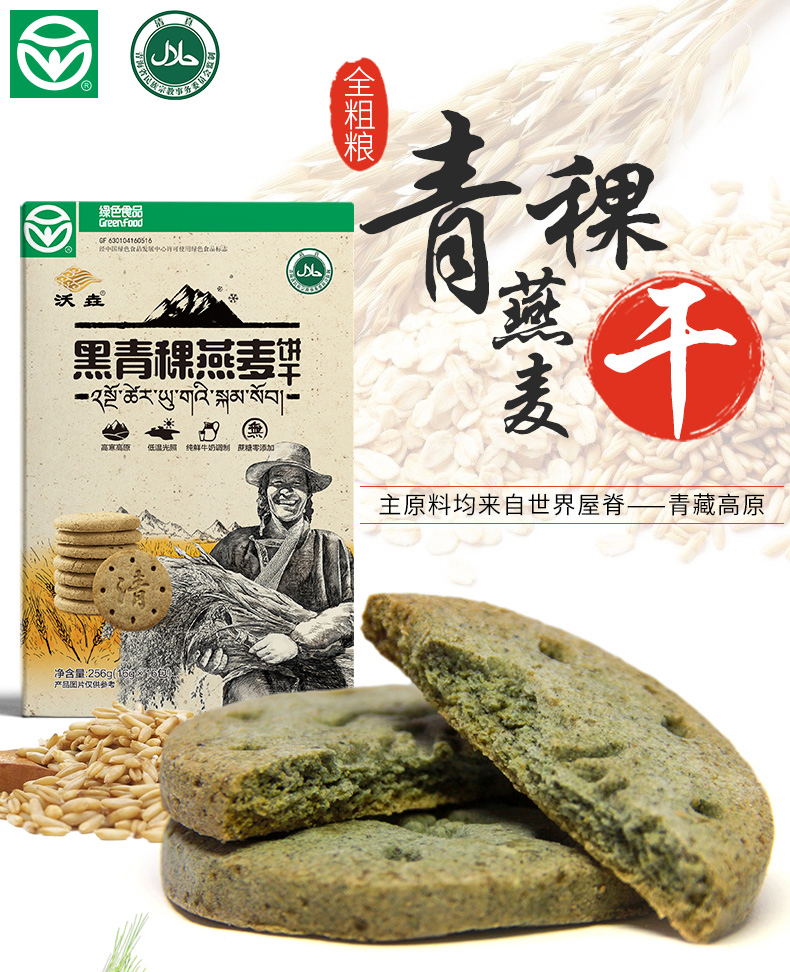 【青海·青稞饼干】黑青稞燕麦饼干256g 粗粮饼干代餐饼干木糖醇饼干麦芽糖醇饼干健康零食燕麦饼干