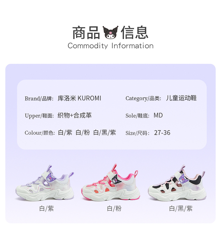 KUROMI库洛米童鞋女童运动鞋春季儿童老爹鞋女孩网面鞋27-36 KU5526821