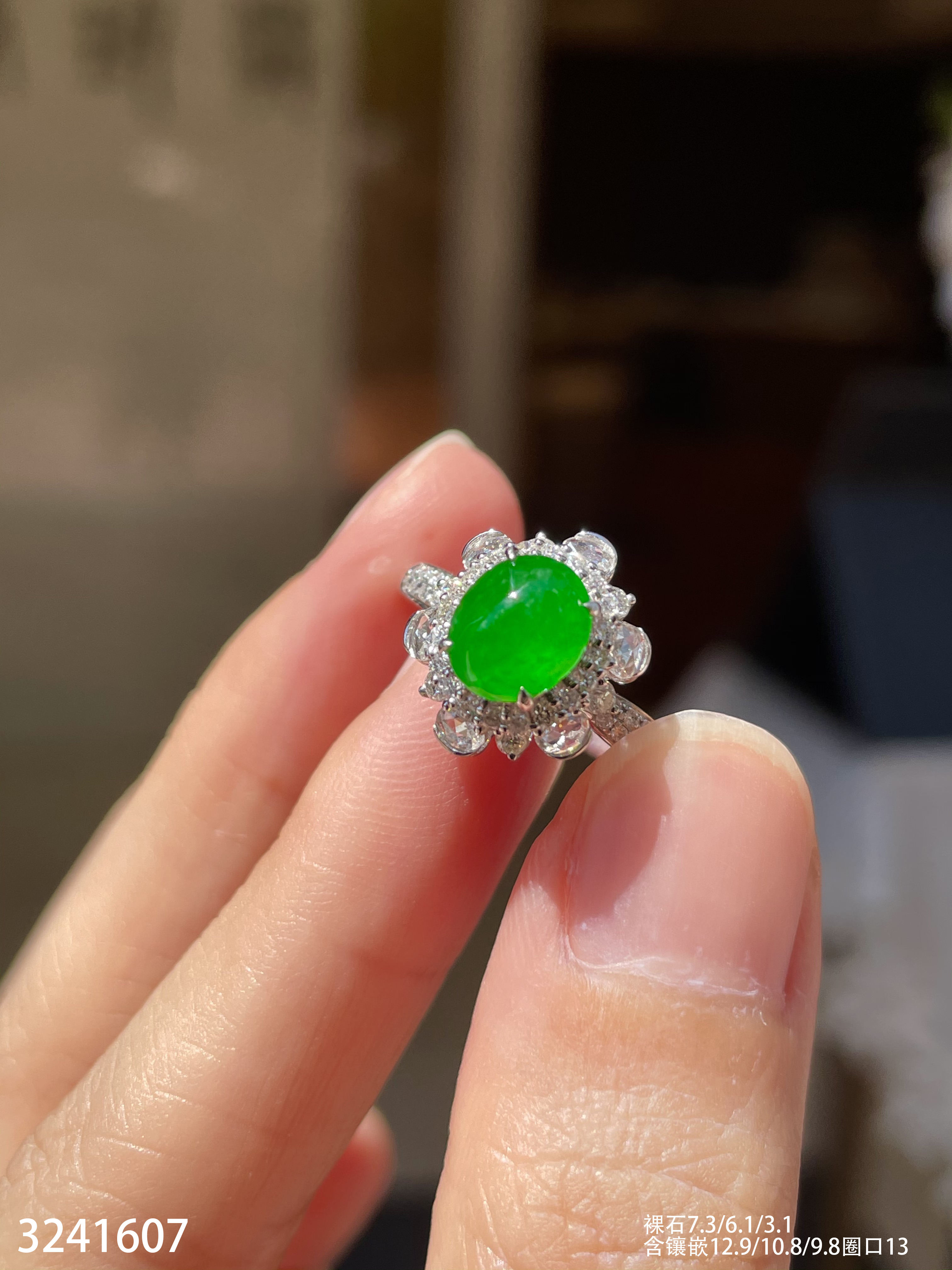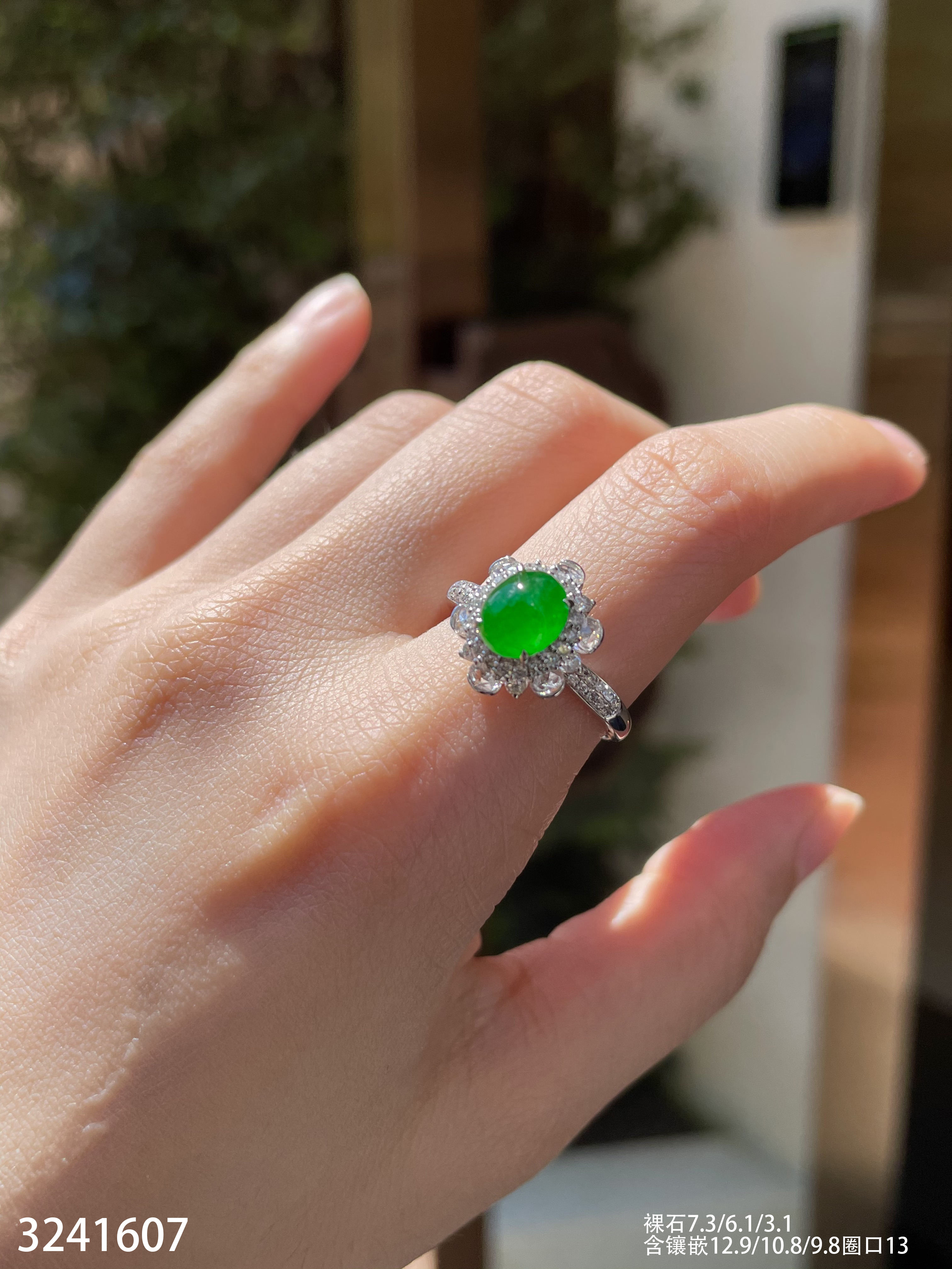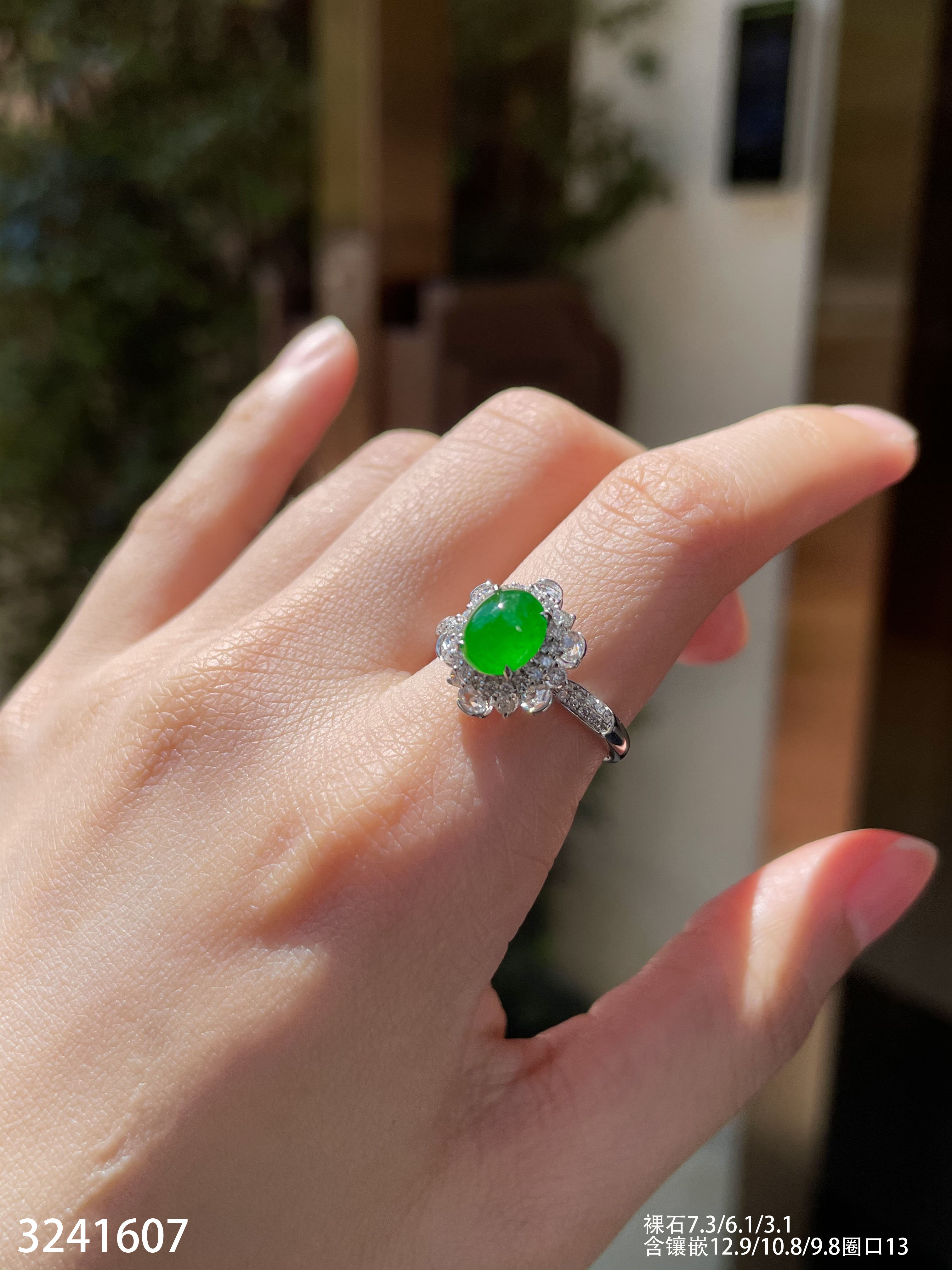 3241607,老坑冰艳绿蛋面戒指。具体价格微信咨询