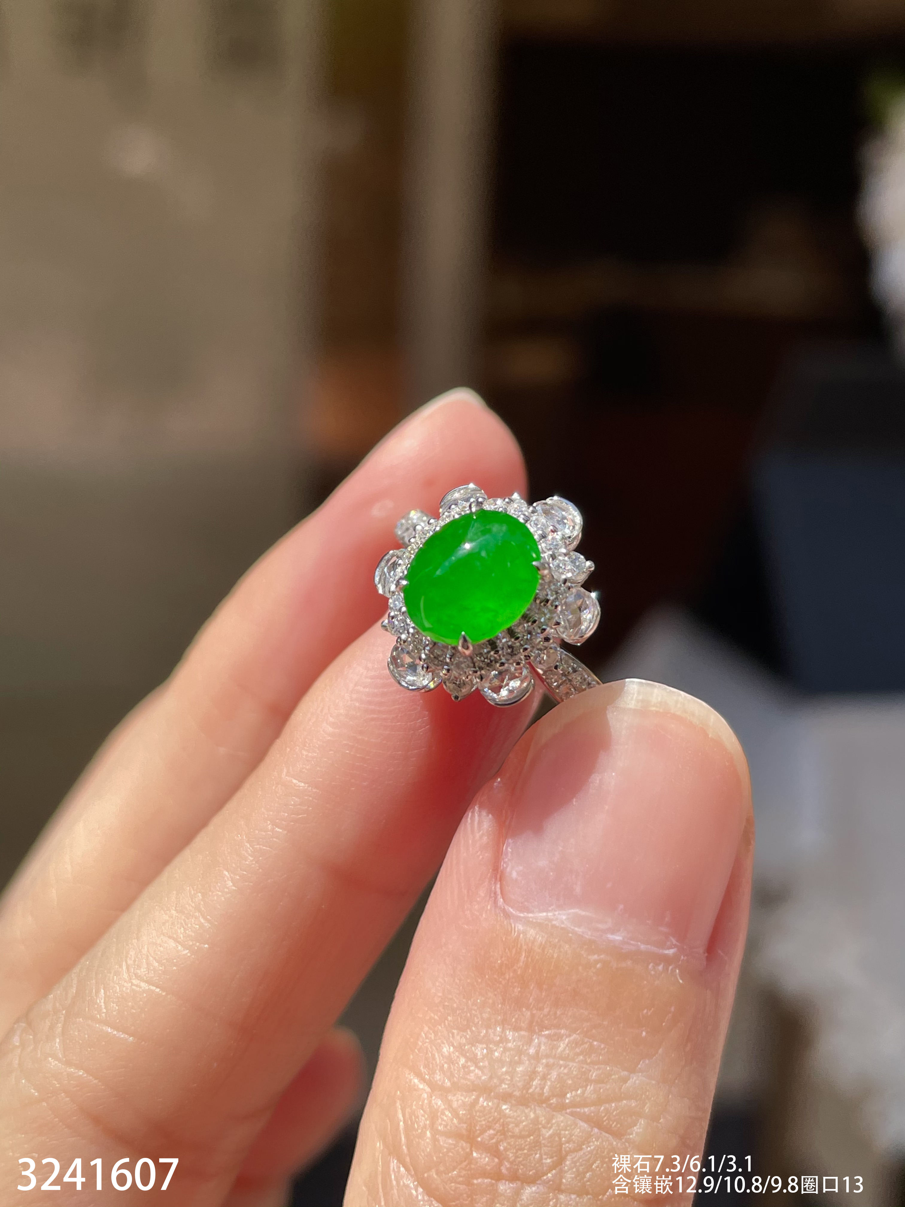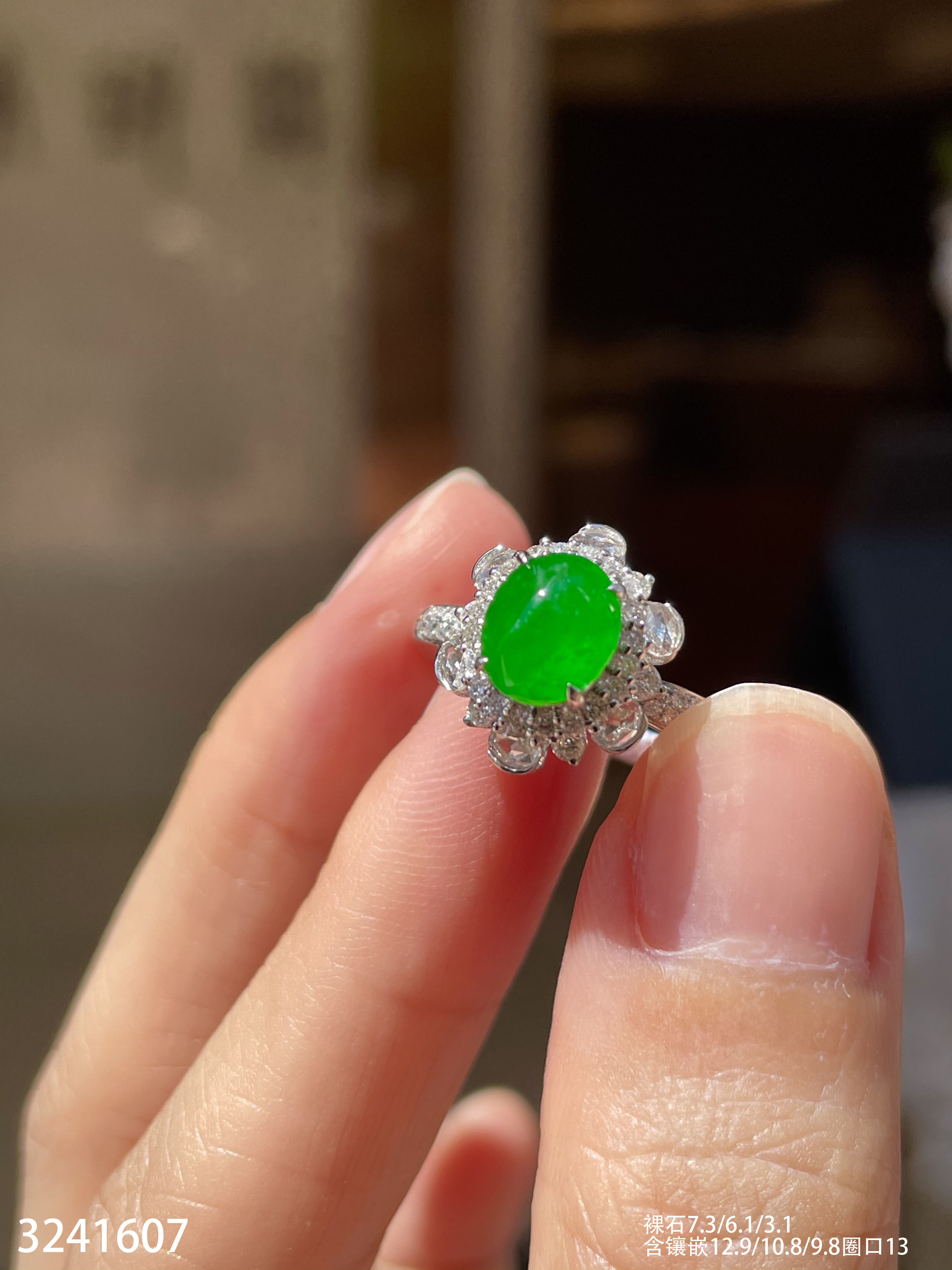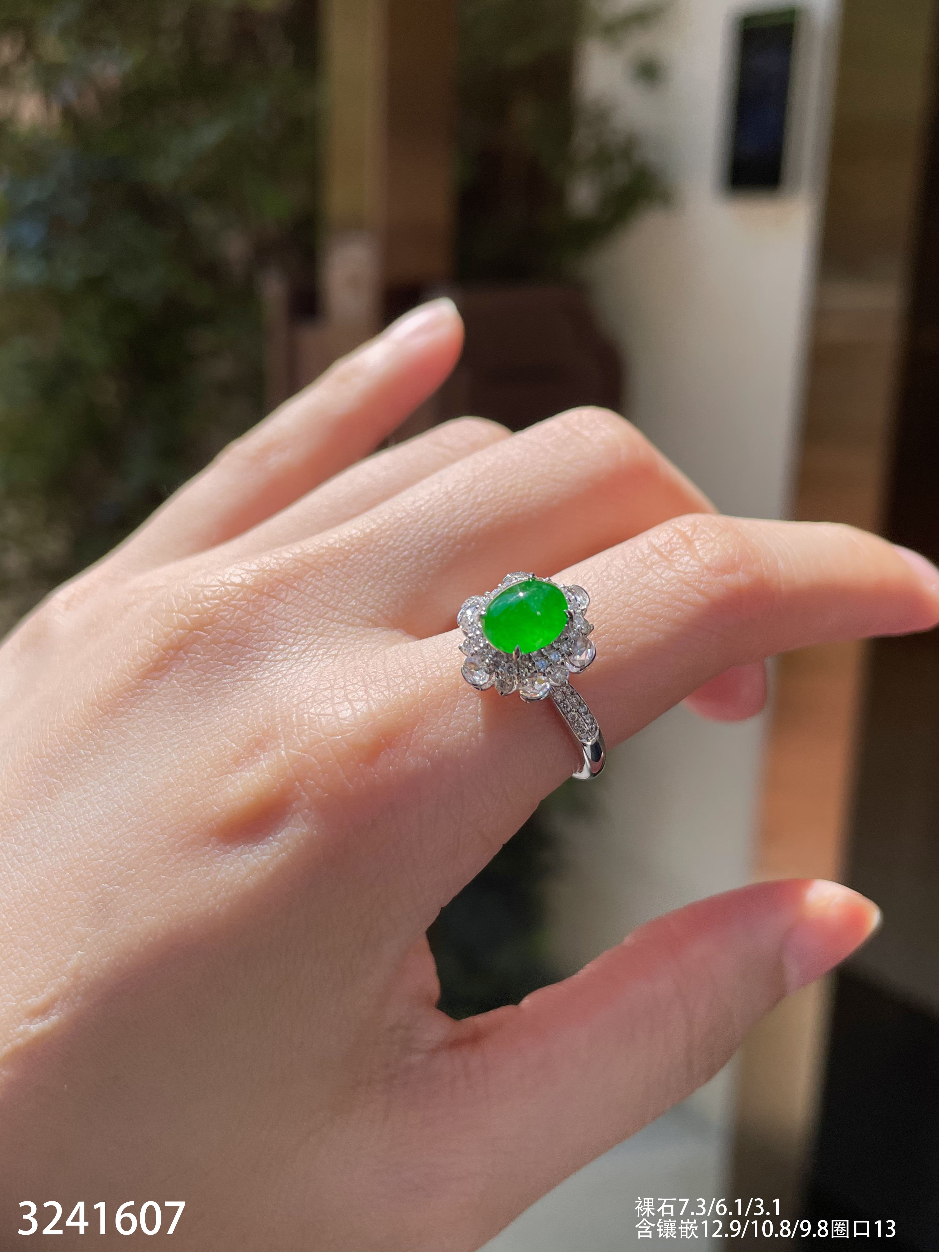 3241607,老坑冰艳绿蛋面戒指。具体价格微信咨询
