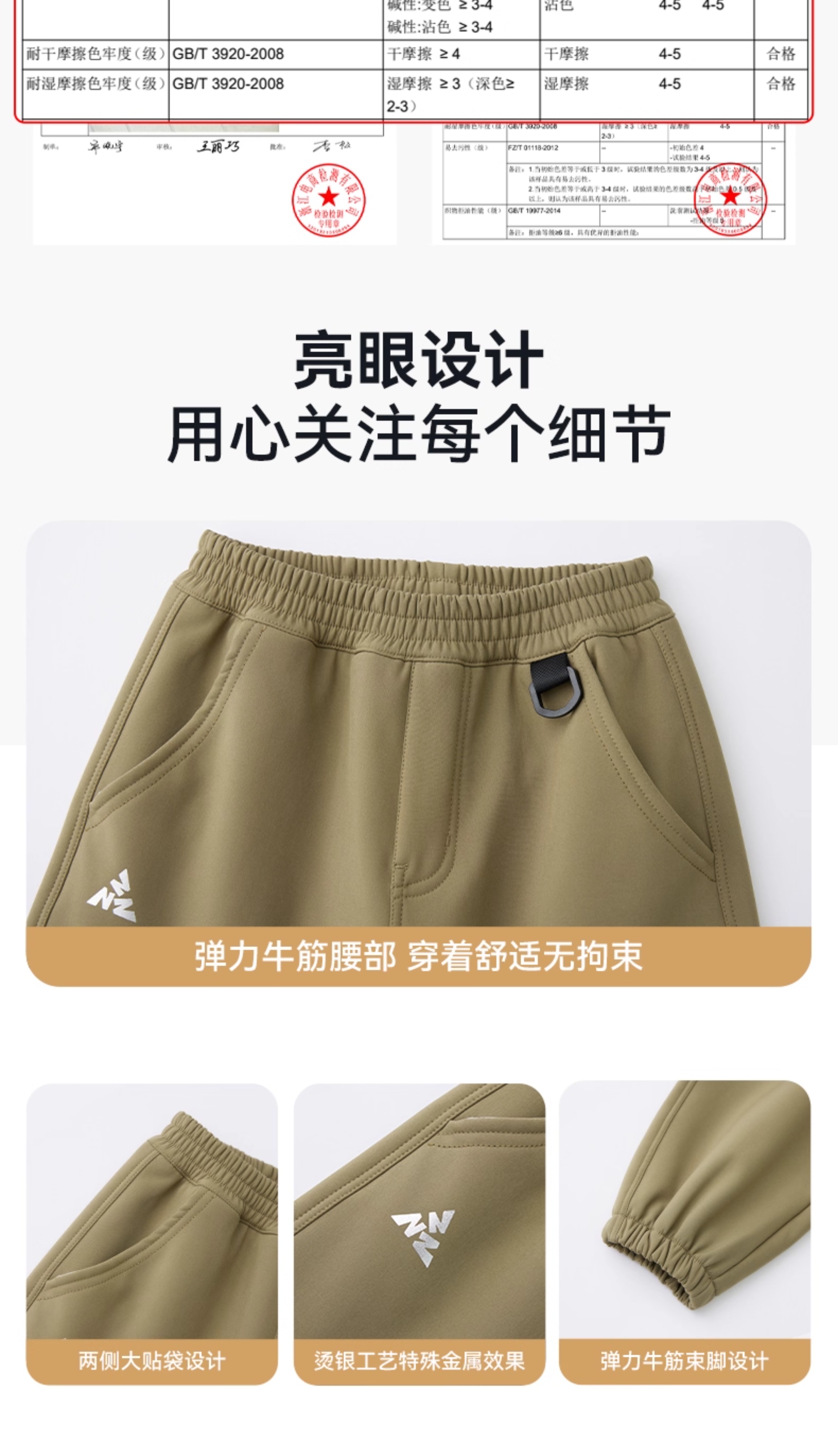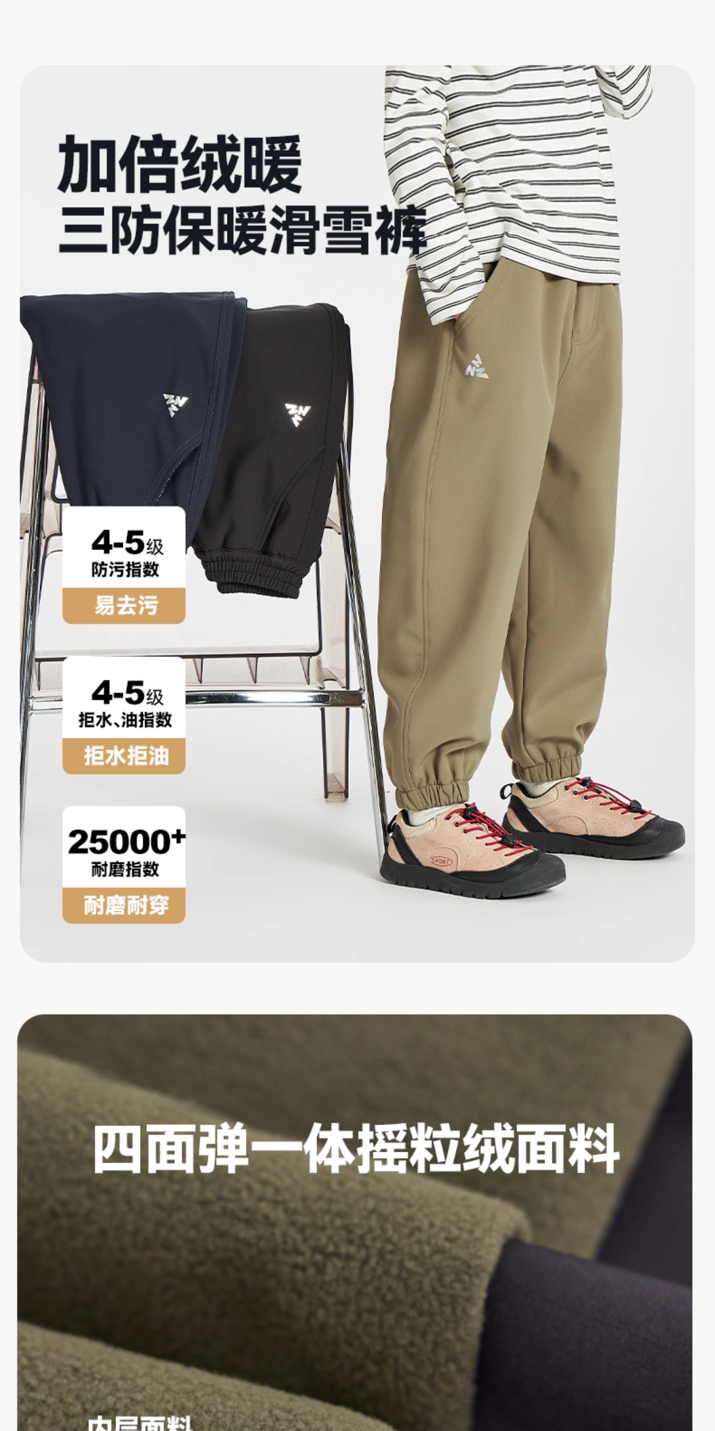 【件件底价,童装双倍积分】多多家男童加绒裤子三防滑雪裤2025秋冬新款儿童男孩一体绒休闲裤9818