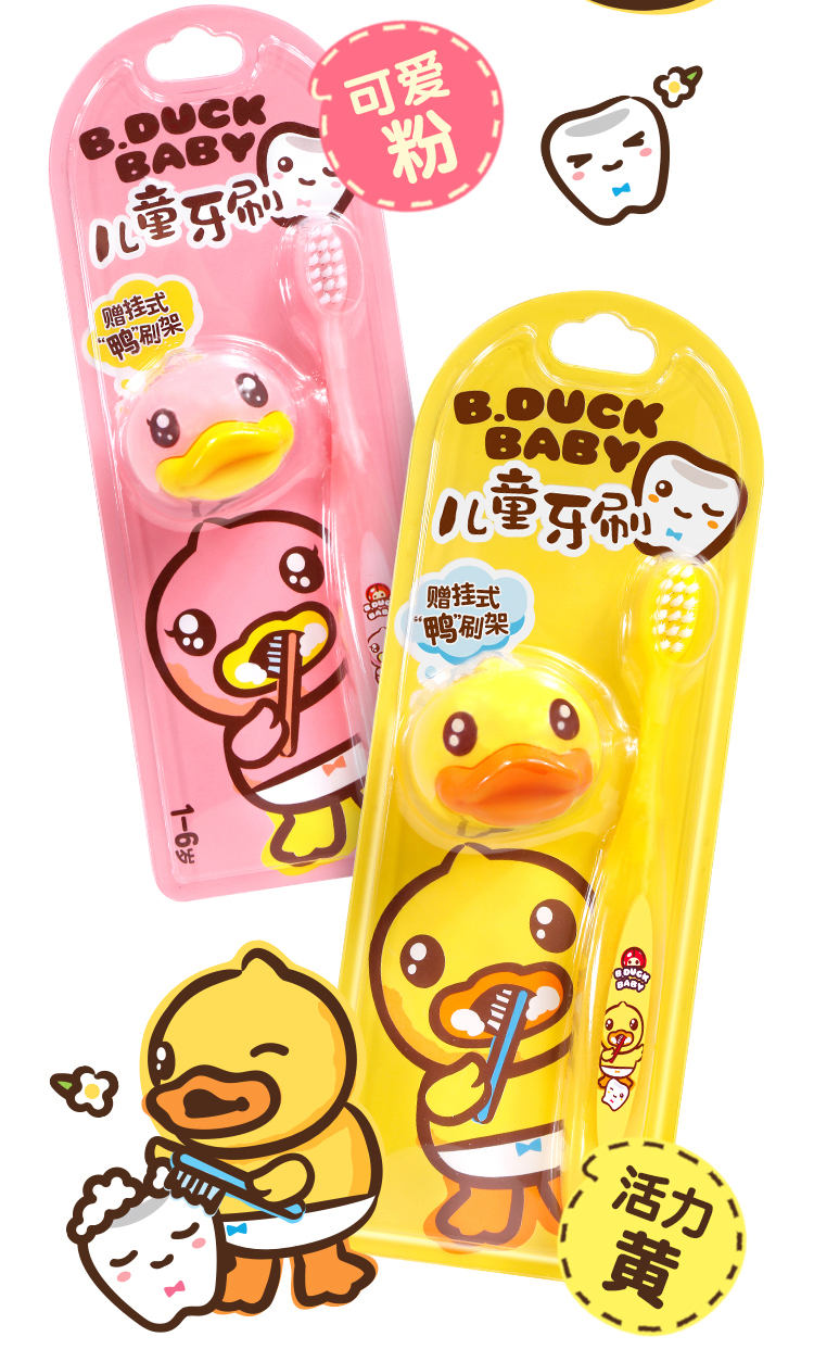 【专柜同款精品】B.Duck Baby1-6岁儿童牙刷1支(挂式牙刷架随机发货)(黄色)