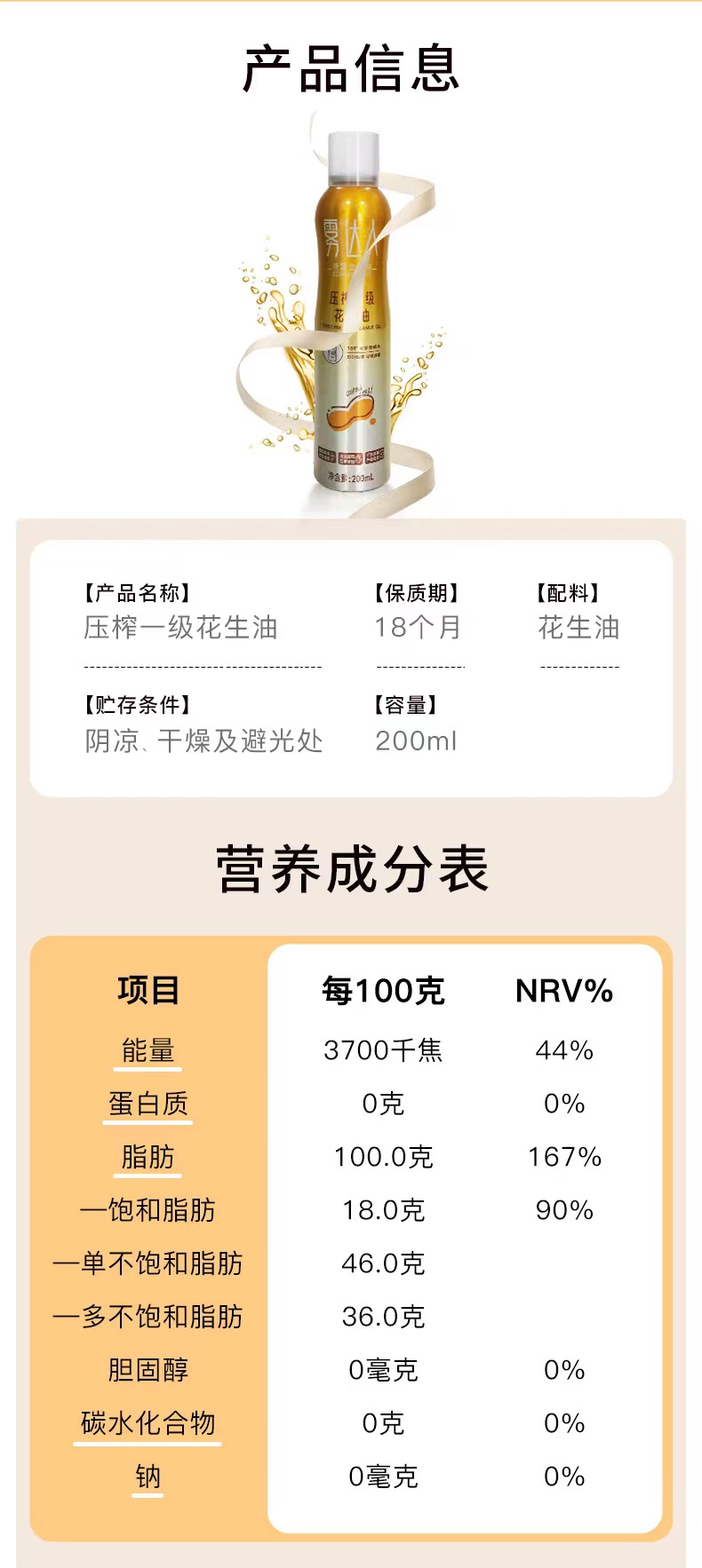 高正小榨浓香喷雾花生油(烧烤专用)200ml*2