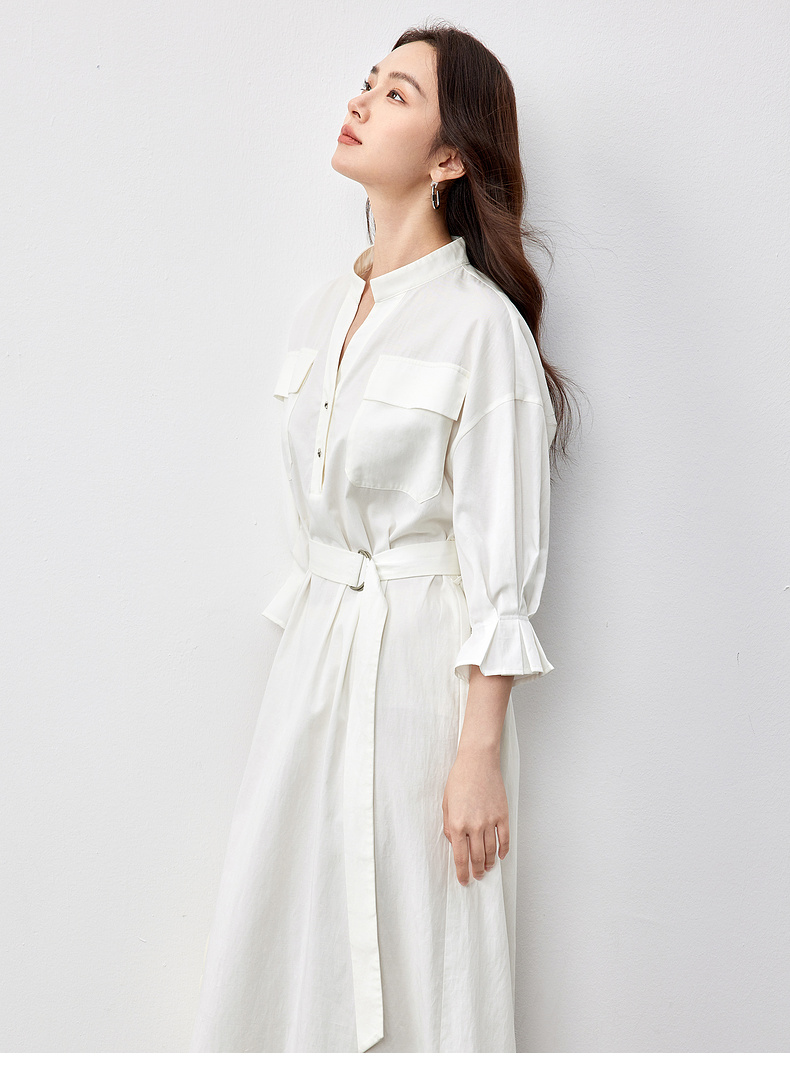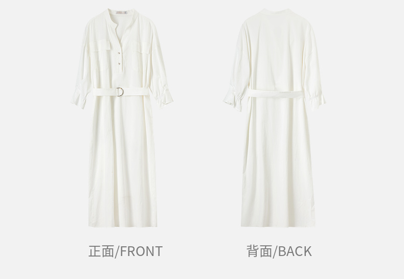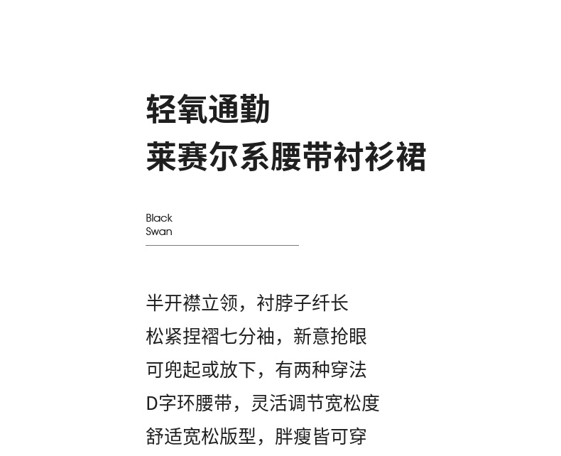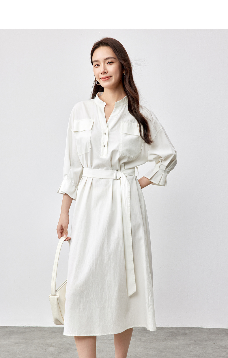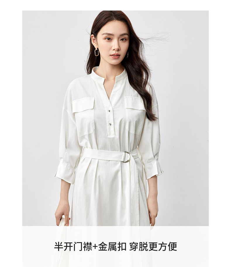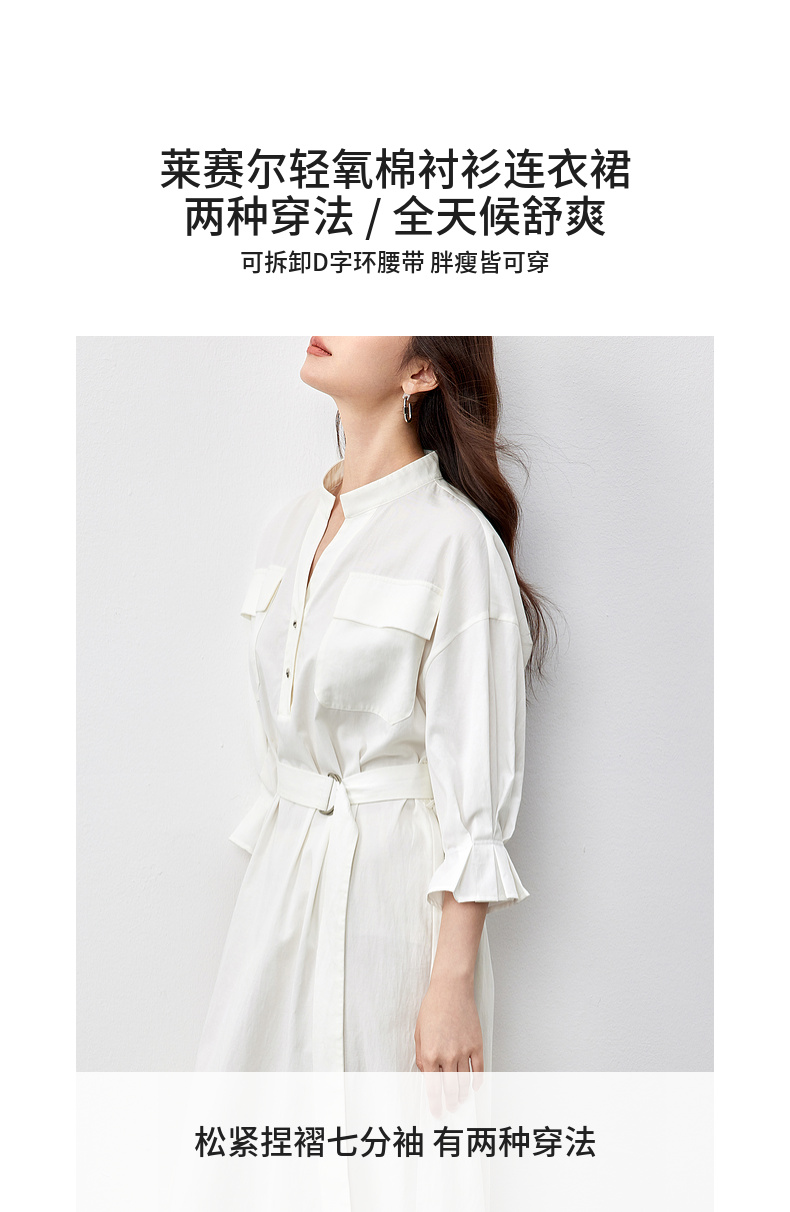 【内购】通勤可拆卸腰带松紧捏褶两穿七分袖衬衫连衣裙-151L58196