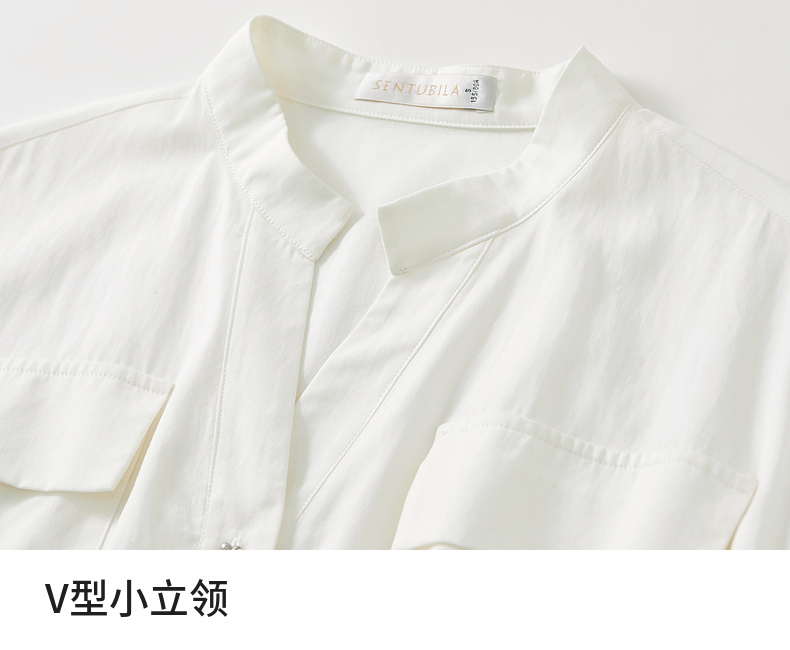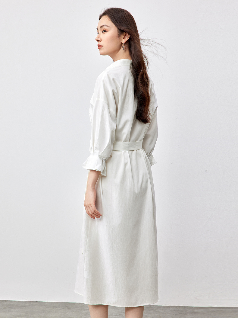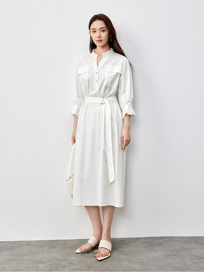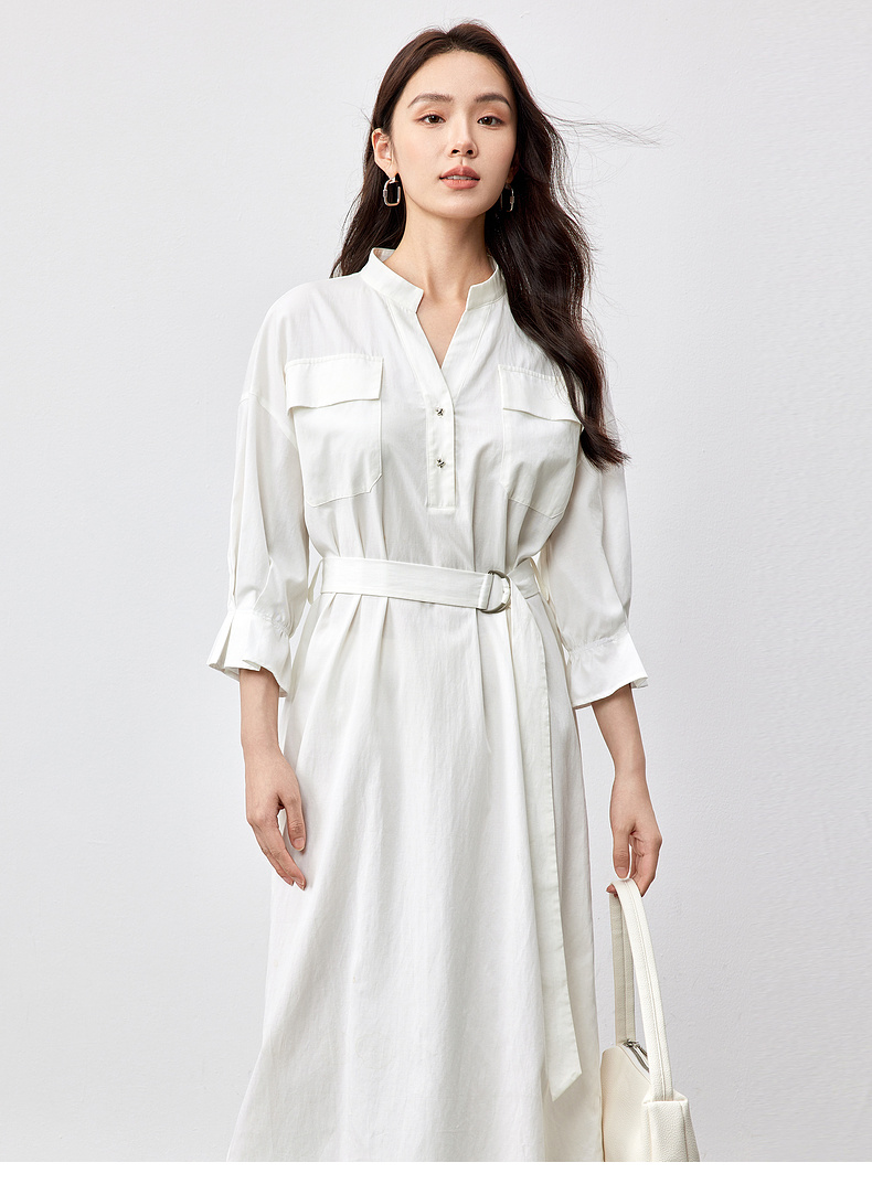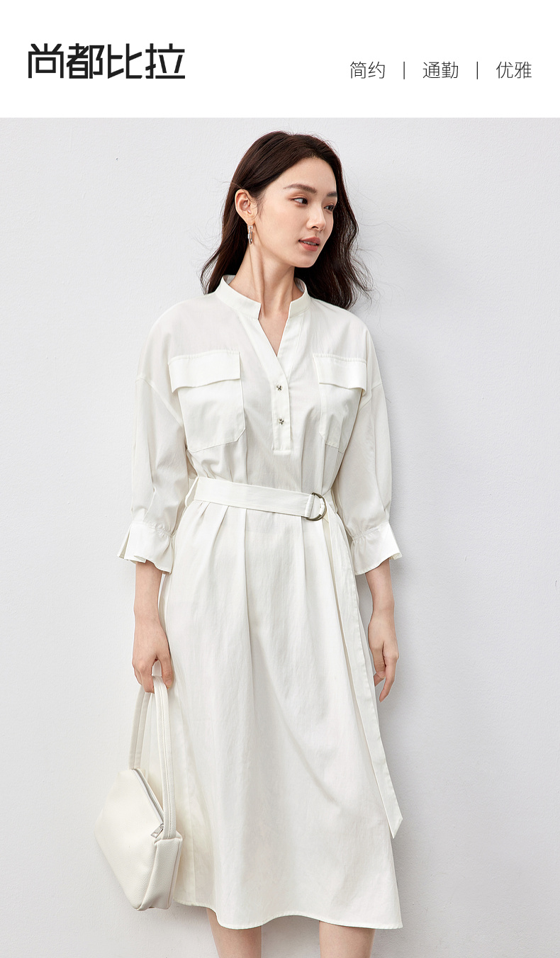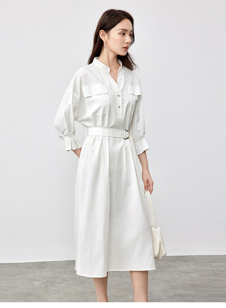 【内购】通勤可拆卸腰带松紧捏褶两穿七分袖衬衫连衣裙-151L58196