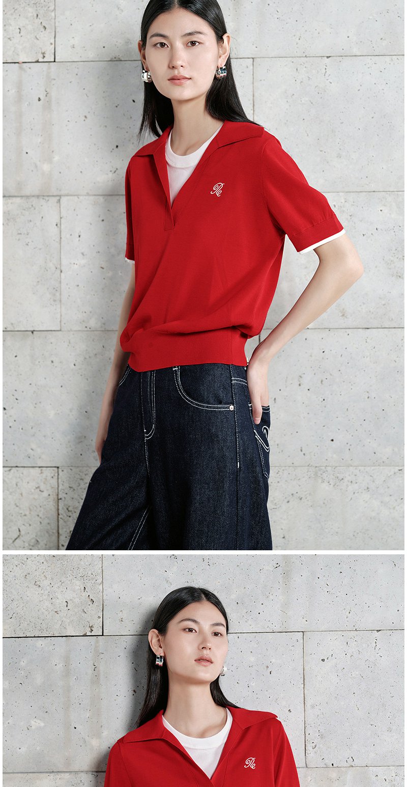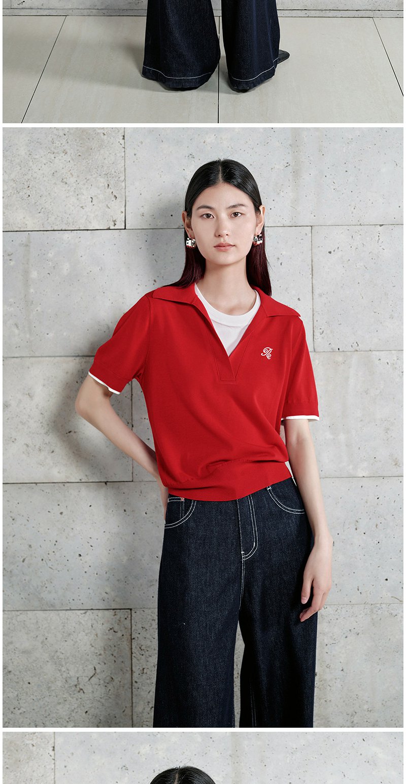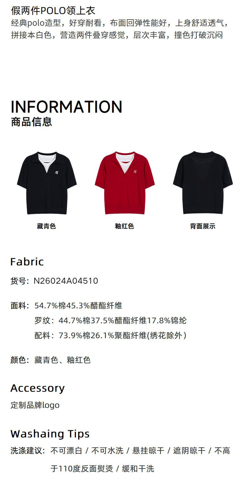 NEELLY纳俪商场同款春季新款假两件设计感针织衫女耐看气质上衣N26024A04510