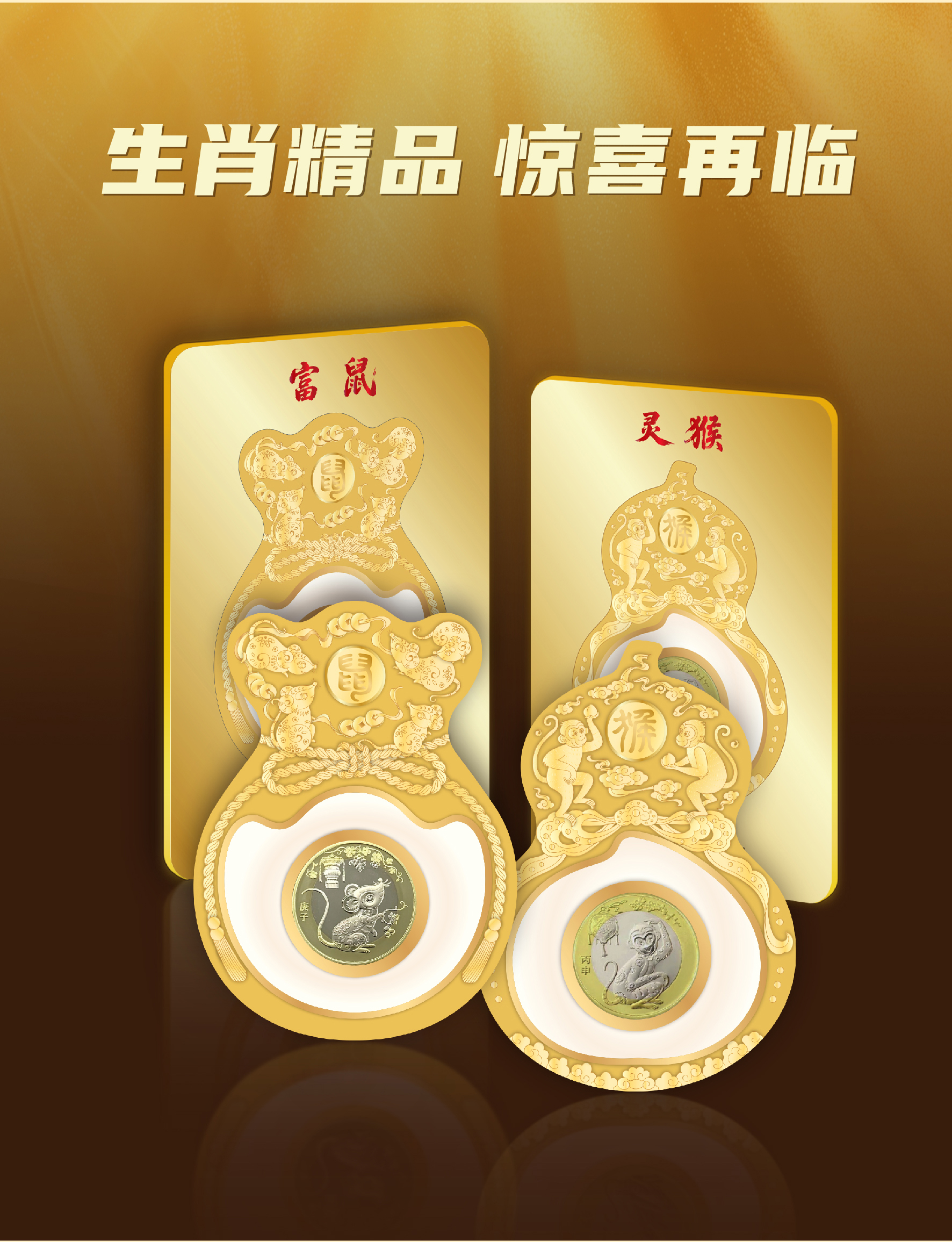 【康银阁】2020、2016年生肖纪念币“富鼠·灵猴”特别装帧版