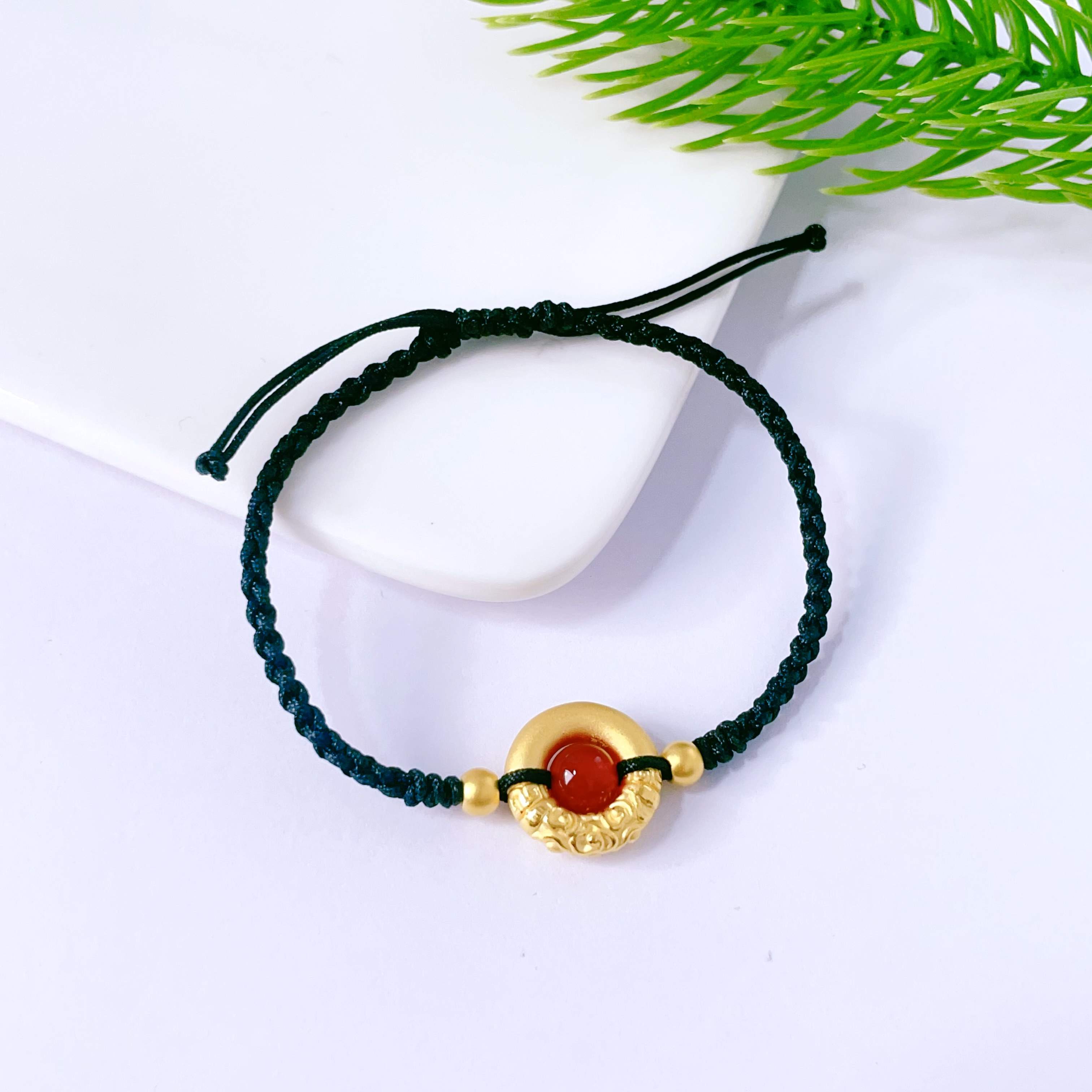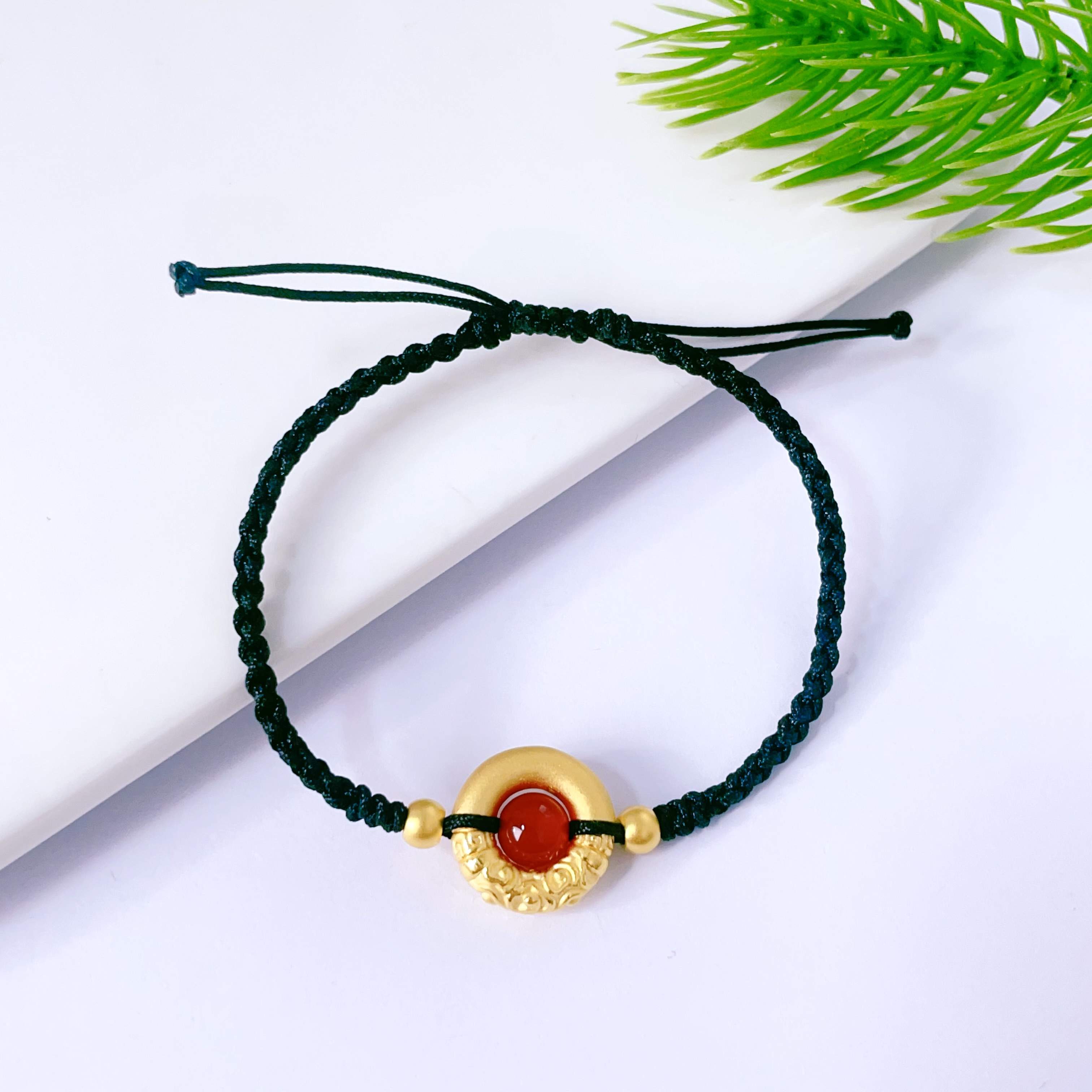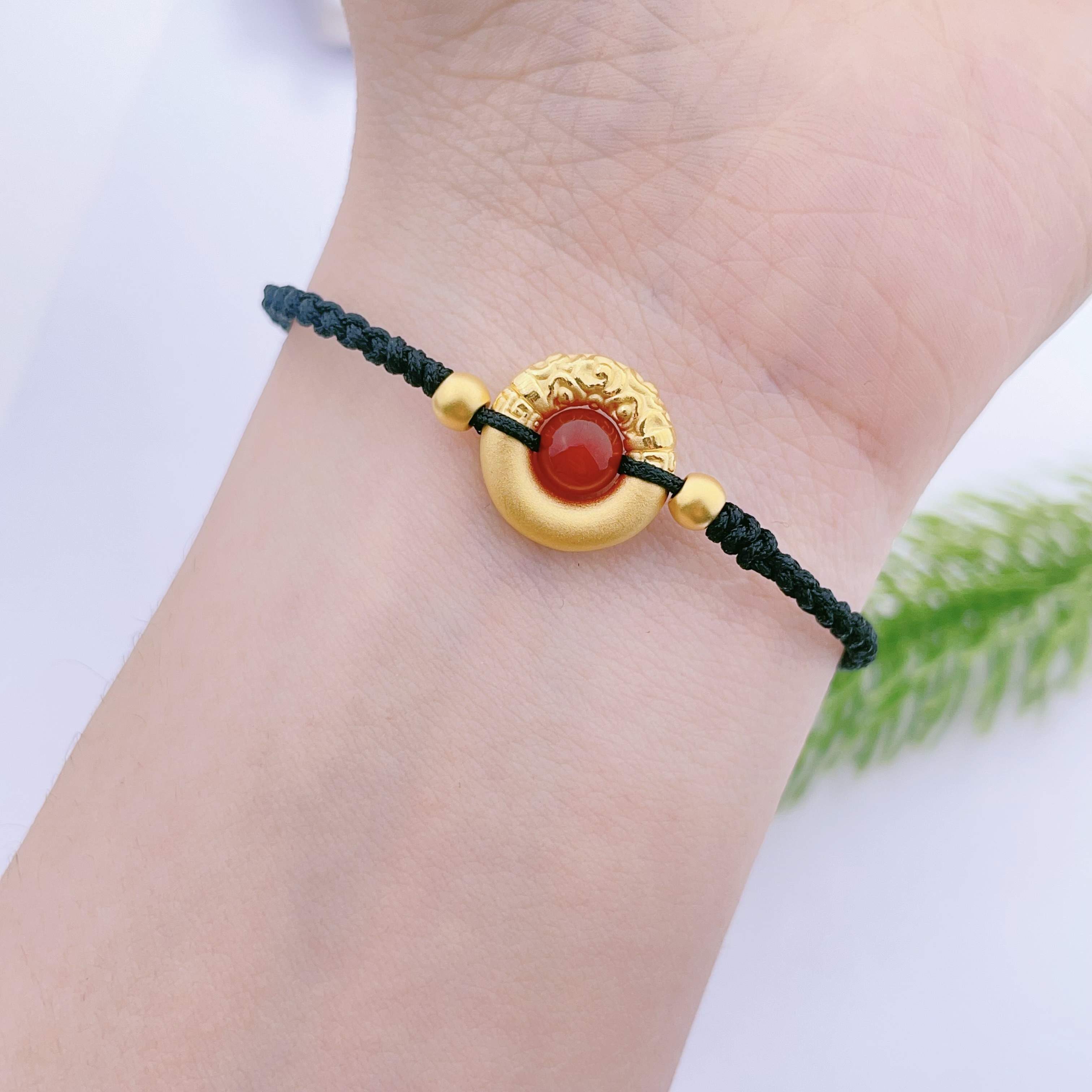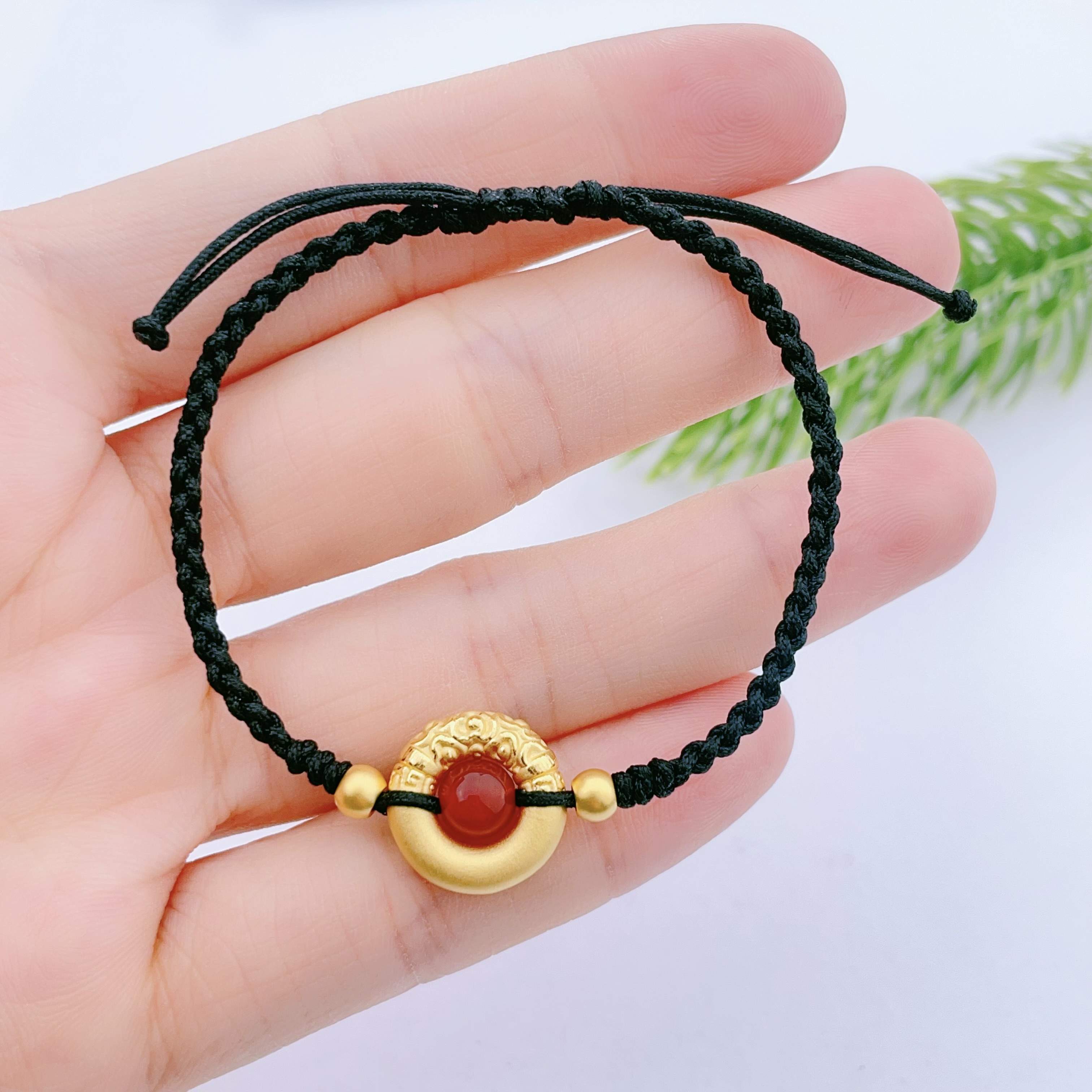 【限时7.5折】【定价黄金】足金 #热卖 #悟空 3D硬金红玛瑙相思豆祥云悟空金箍棒平安扣双珠黑色调节成品手串(AJ3DSC00200)(预售产品下单后不退款不退货不换货不补差价)