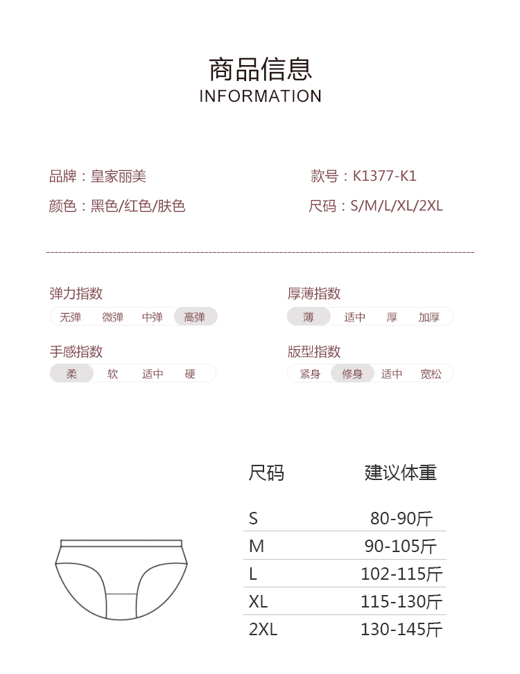 皇家丽美内裤女内裤中高腰弹力女士裤头K1377-K1