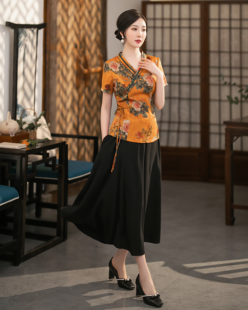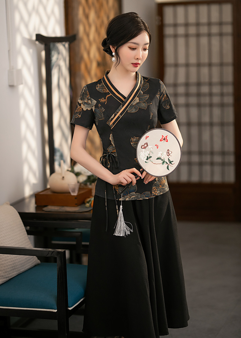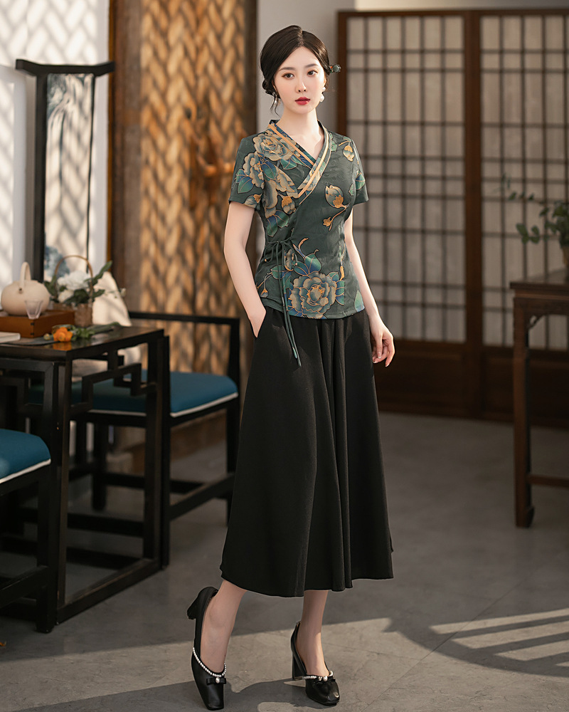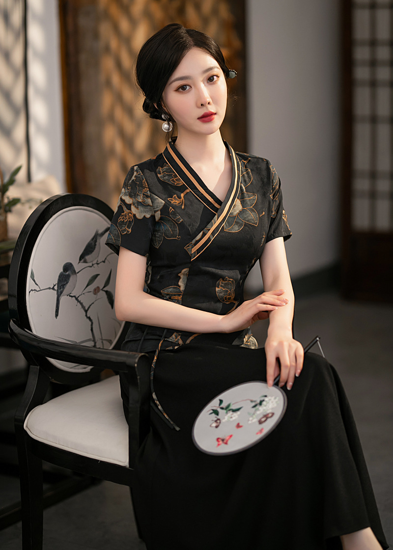 日常改良,老上海复古民国风时尚气质妈妈旗袍套装ZA-014
