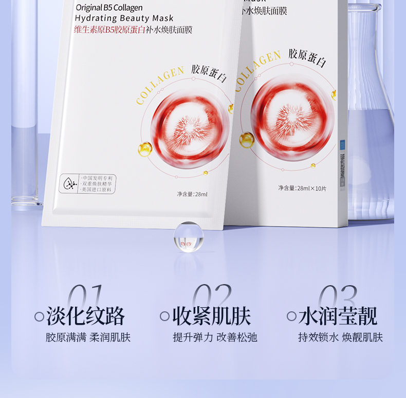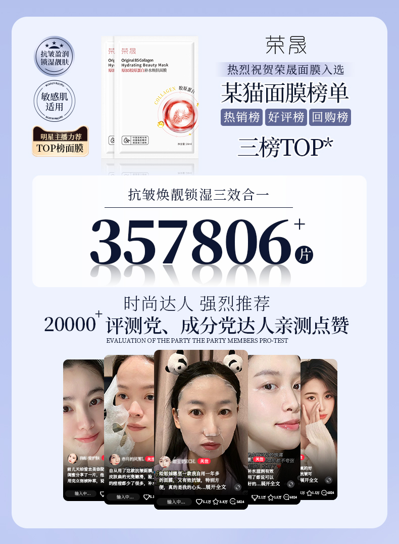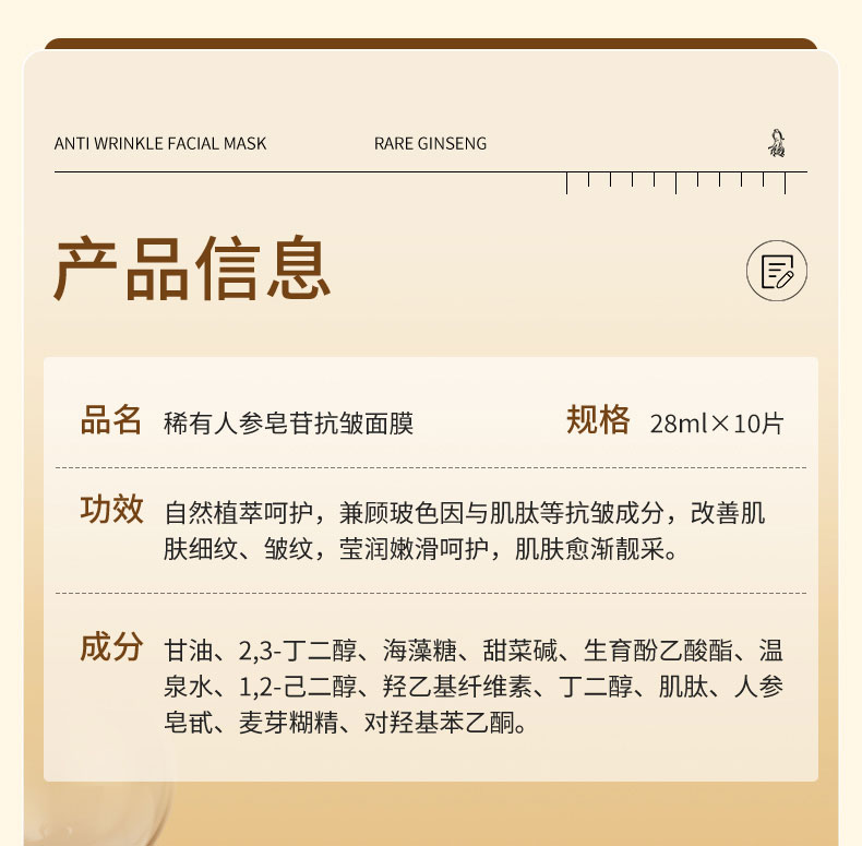 【49到手40片!】荣晟稀有人参抗皱面膜&维生素原B5胶原蛋白面膜10片/盒