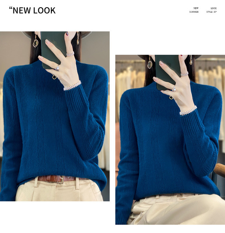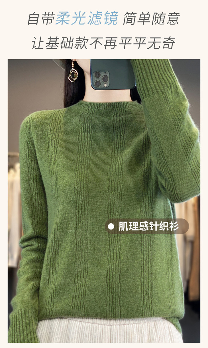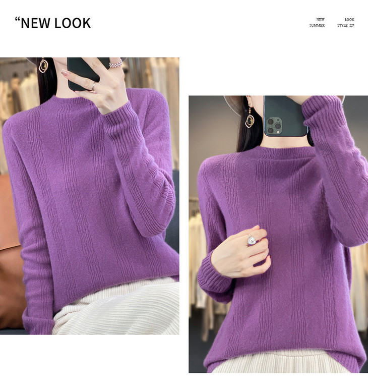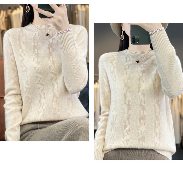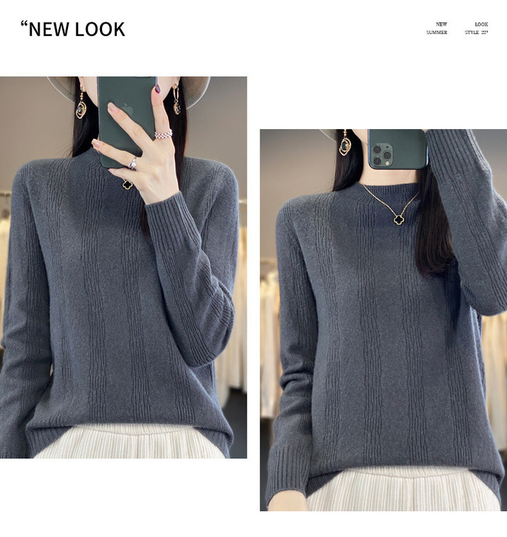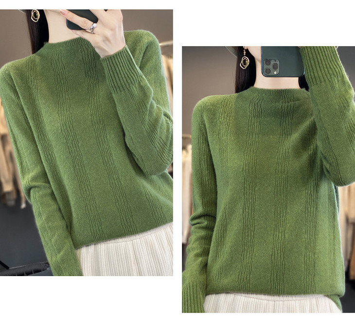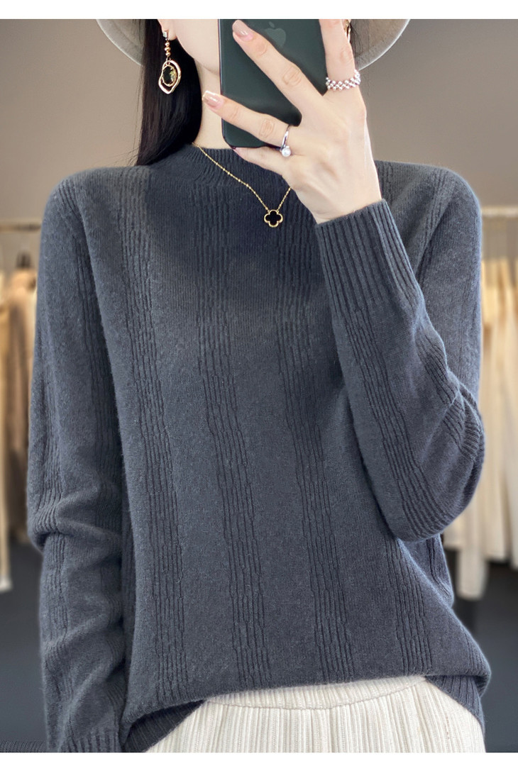 【双11】秋冬女半高领立领竖条纹宽松大码内搭打底衫QH-NJR-350