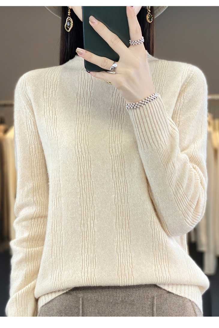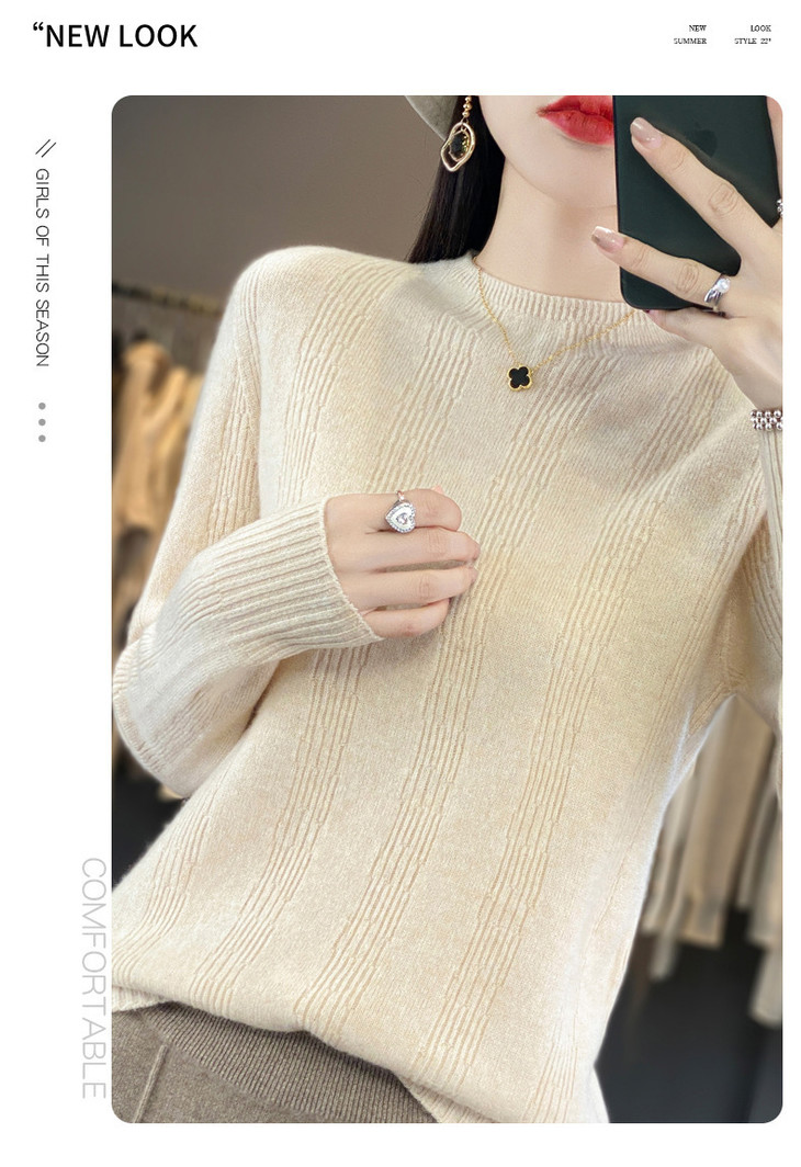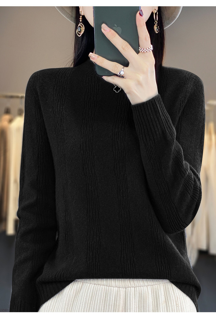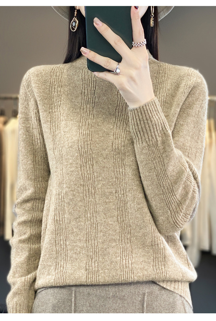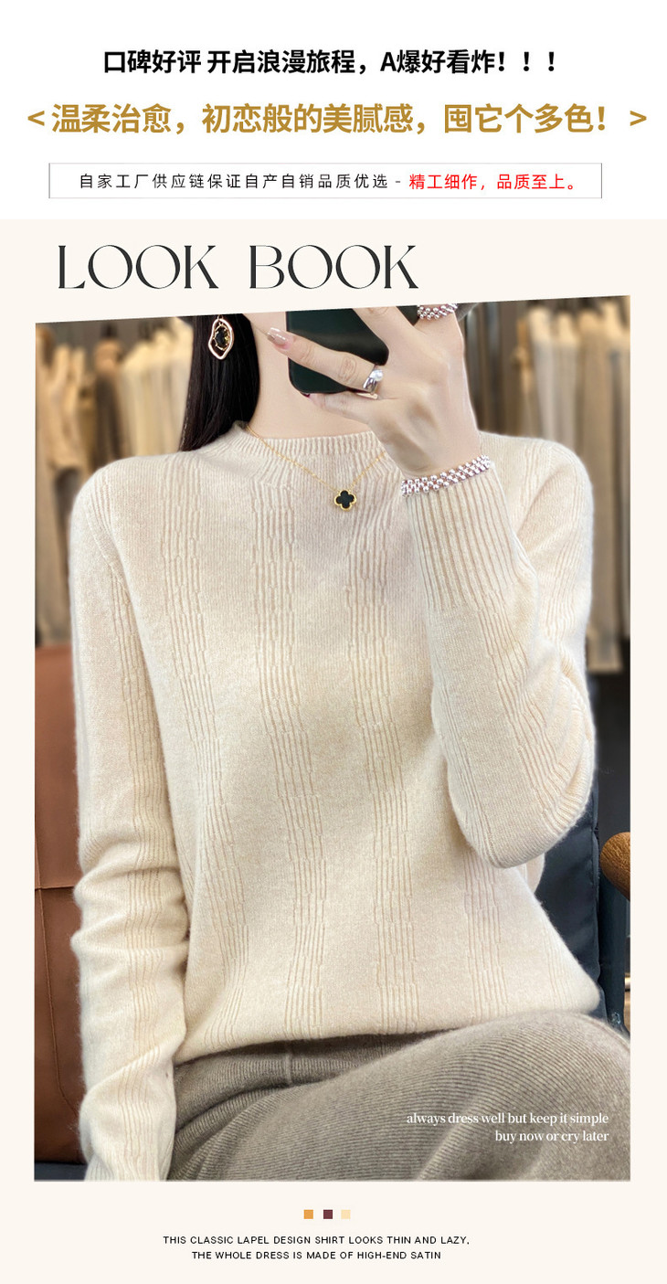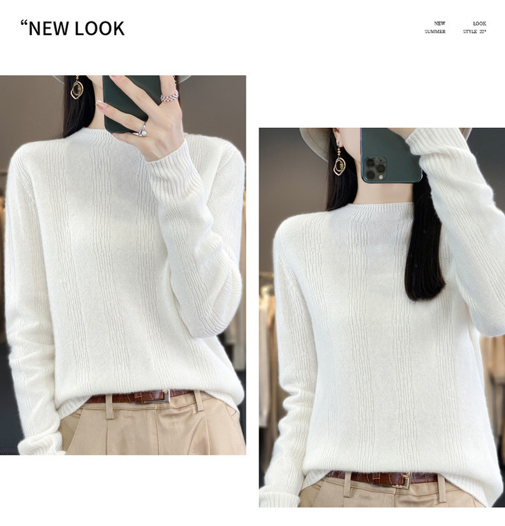 【双11】秋冬女半高领立领竖条纹宽松大码内搭打底衫QH-NJR-350