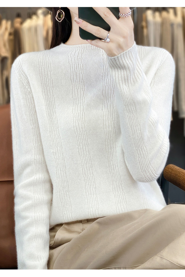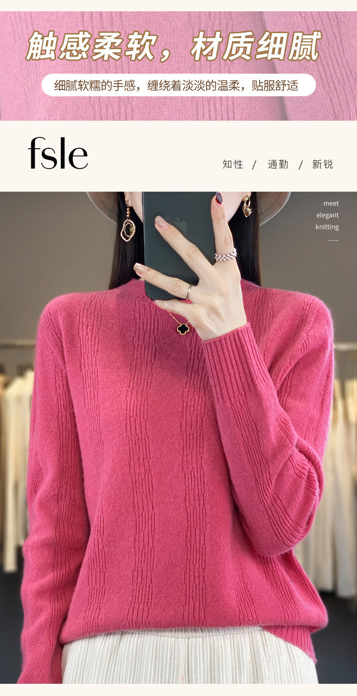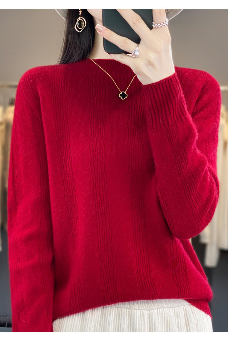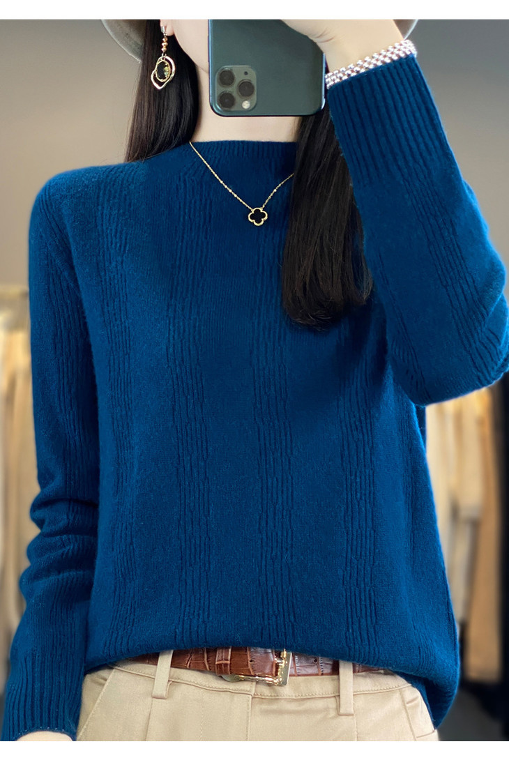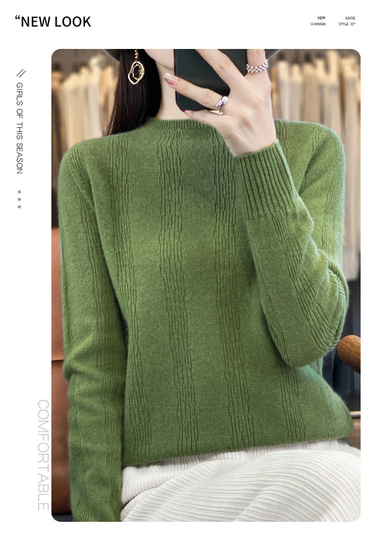 【双11】秋冬女半高领立领竖条纹宽松大码内搭打底衫QH-NJR-350