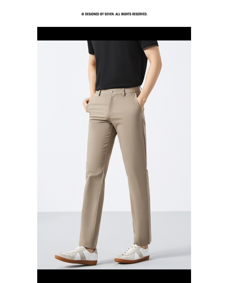【瞬间凉感】柒牌休闲裤男士2025夏季新品商务简约修身中腰直筒裤128H71370