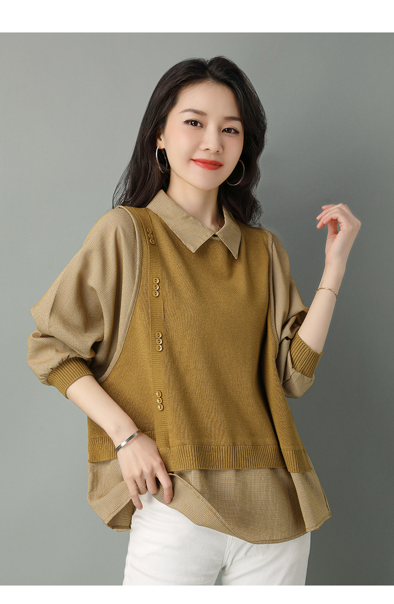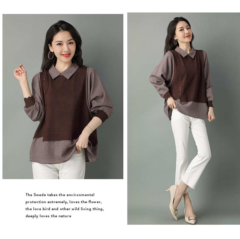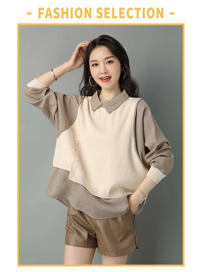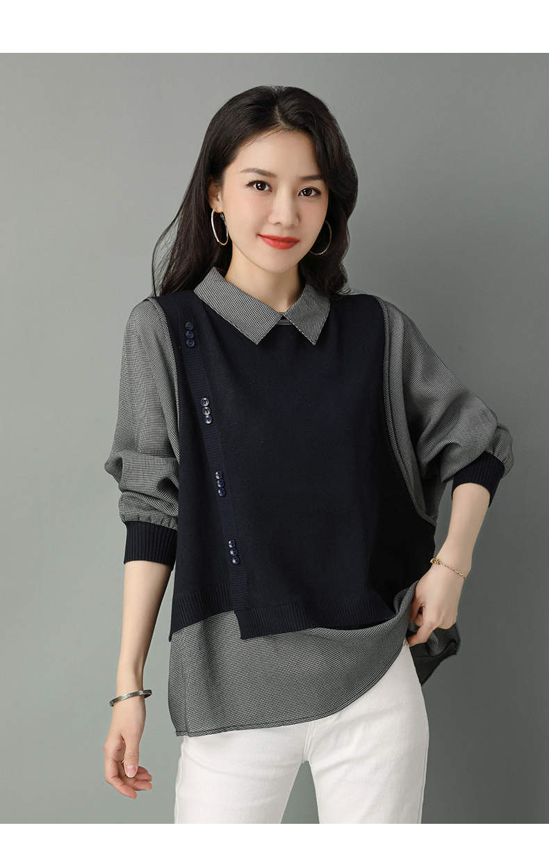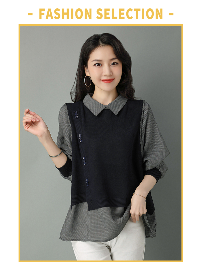 2022年新款大码假两件上衣长袖针织衫春装女士毛衣时尚打底衫洋气CC-101-35977