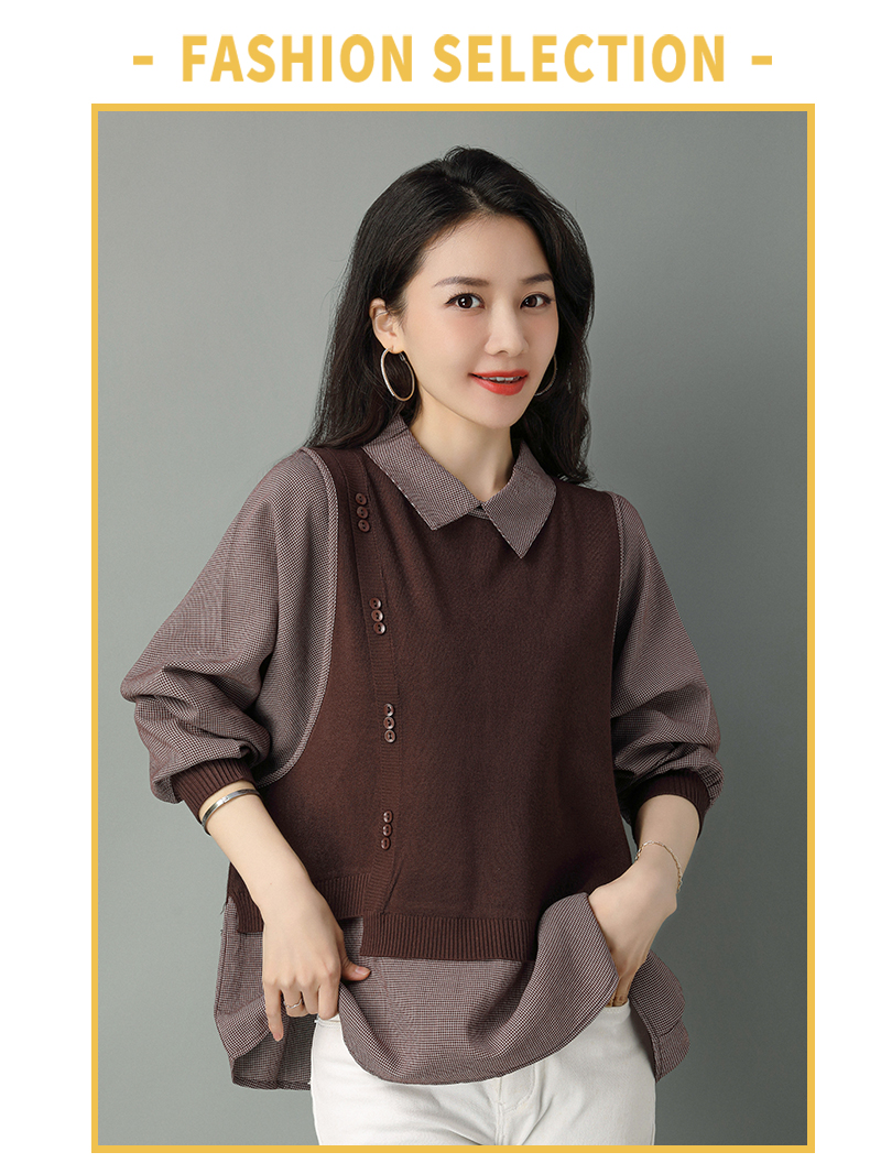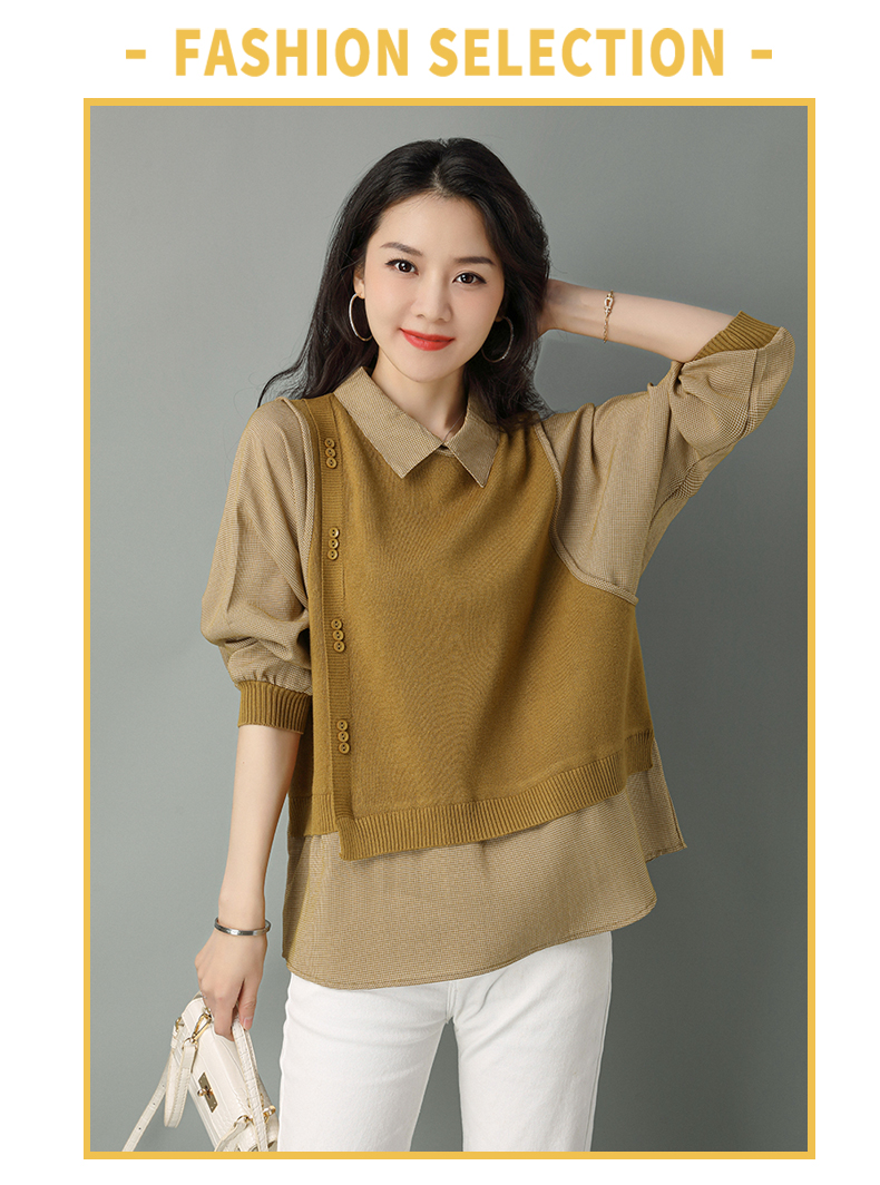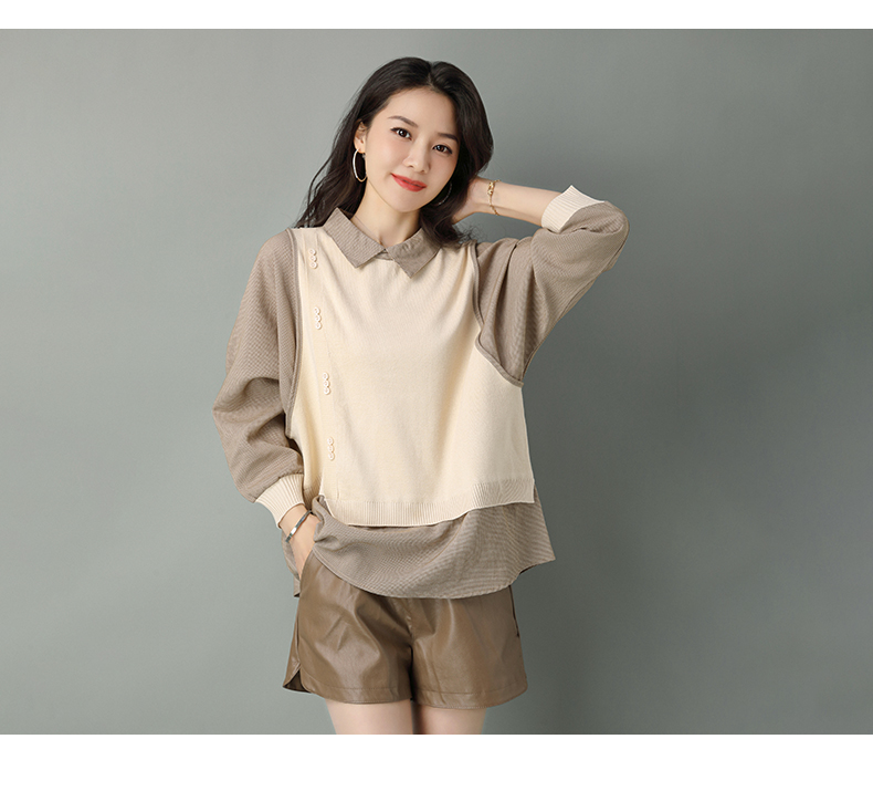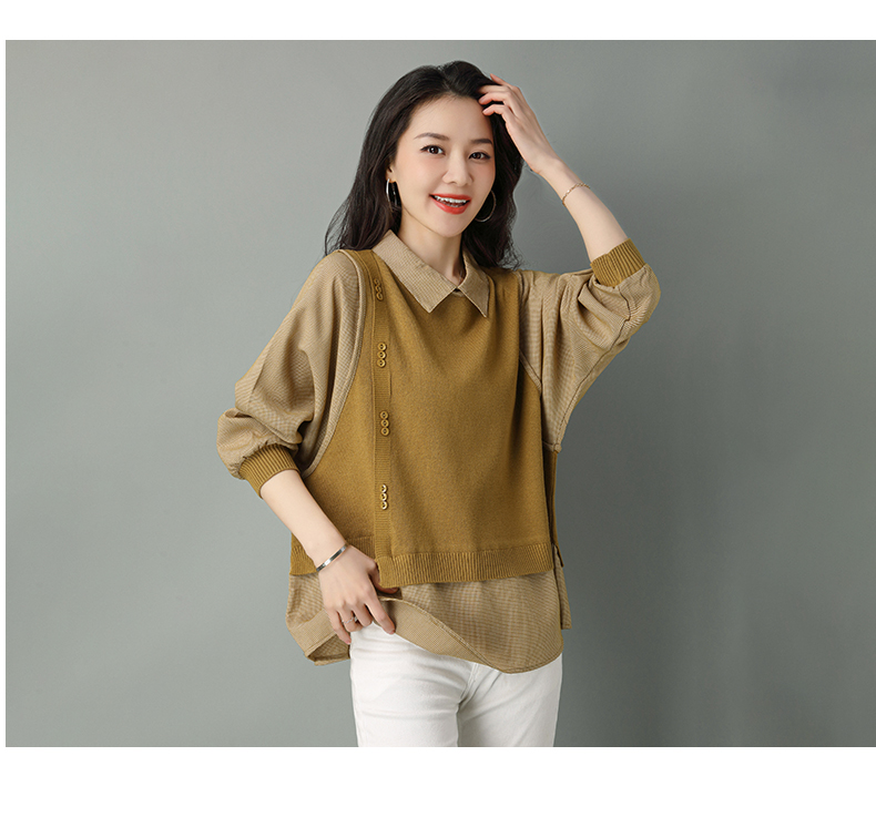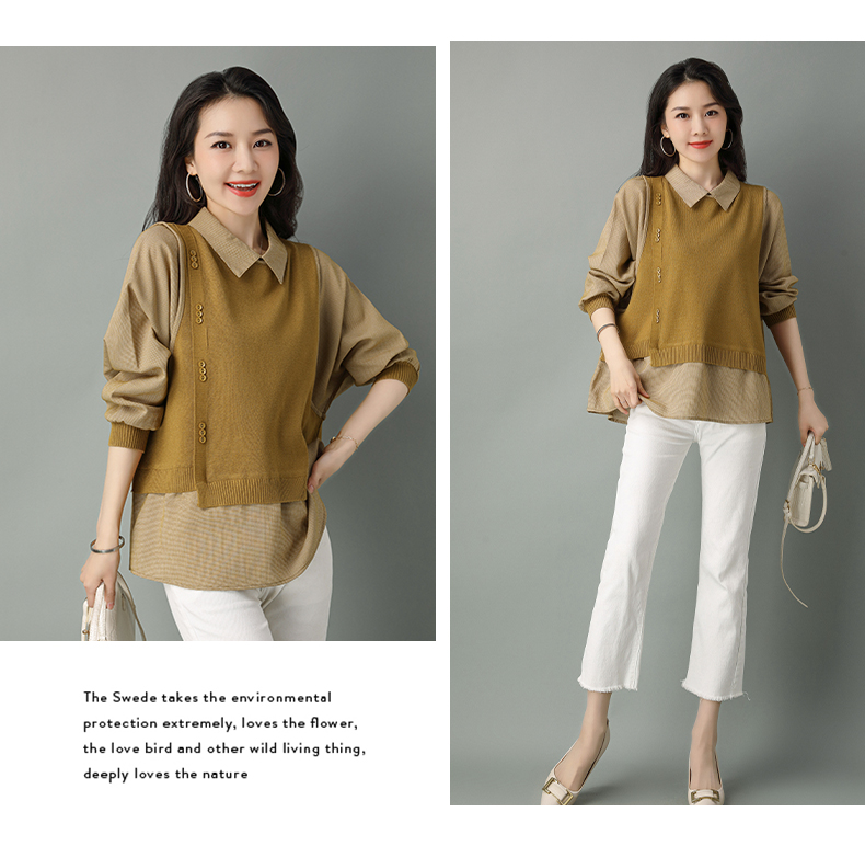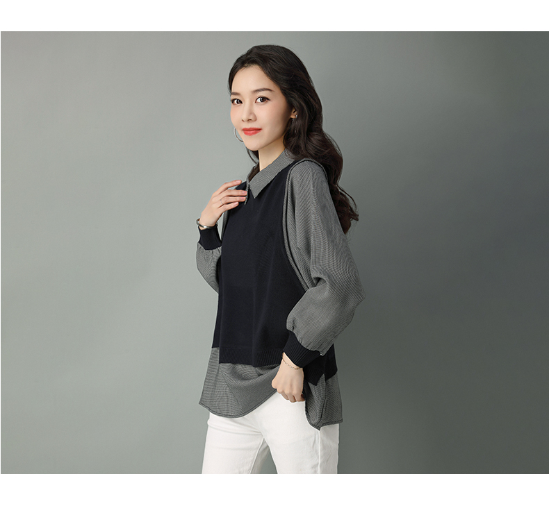 2022年新款大码假两件上衣长袖针织衫春装女士毛衣时尚打底衫洋气CC-101-35977