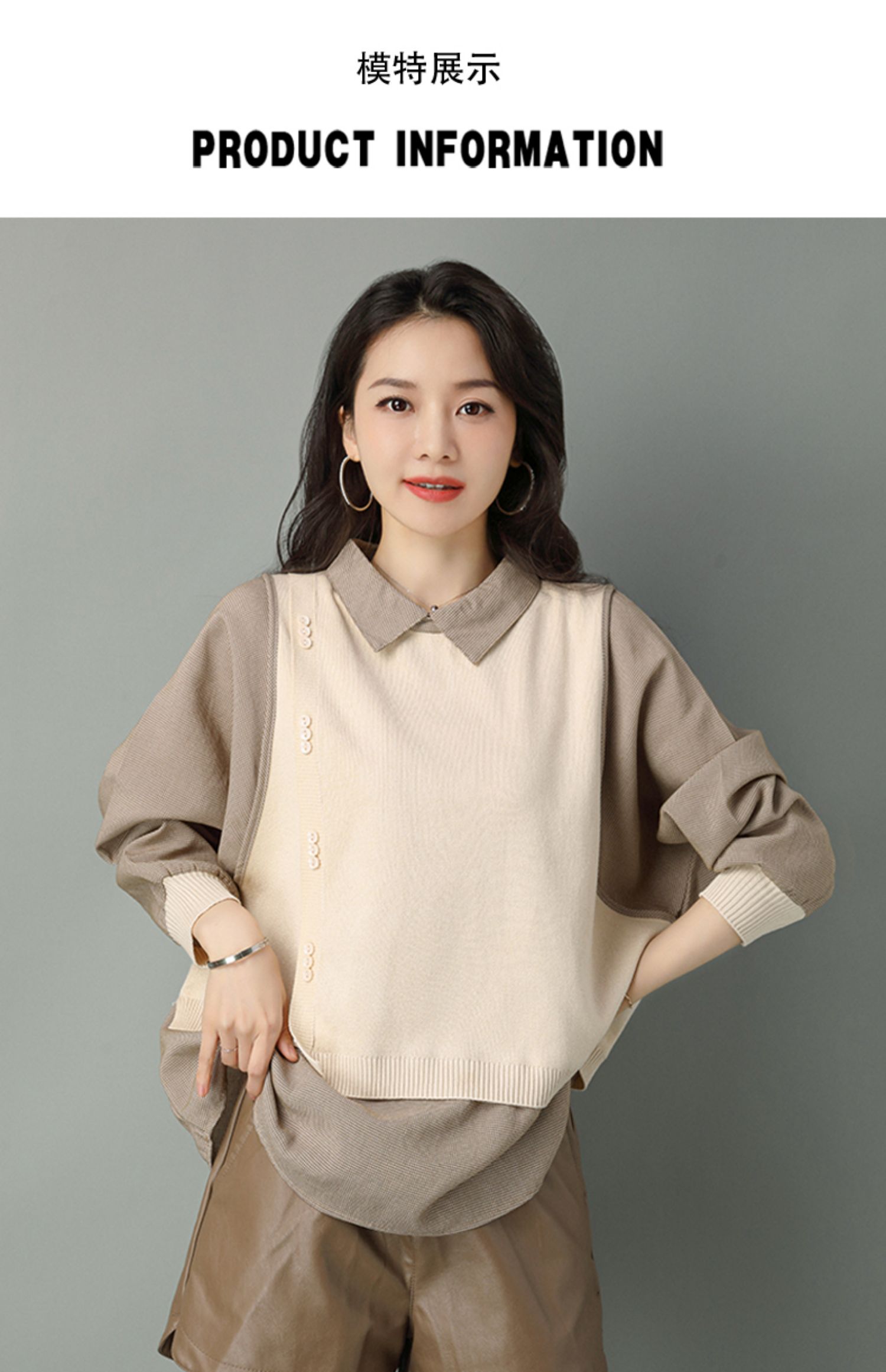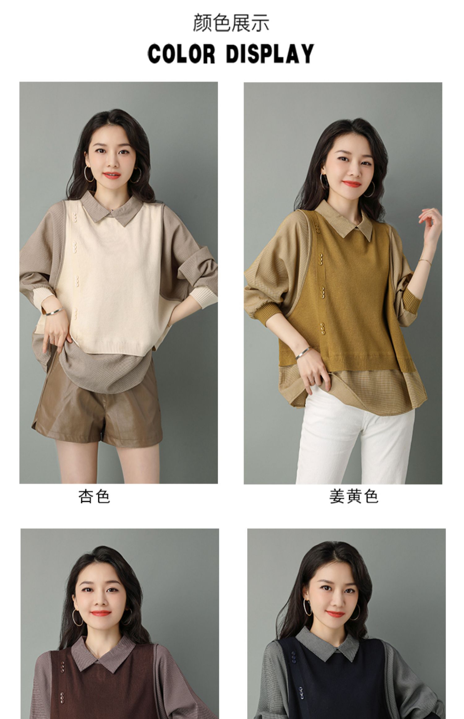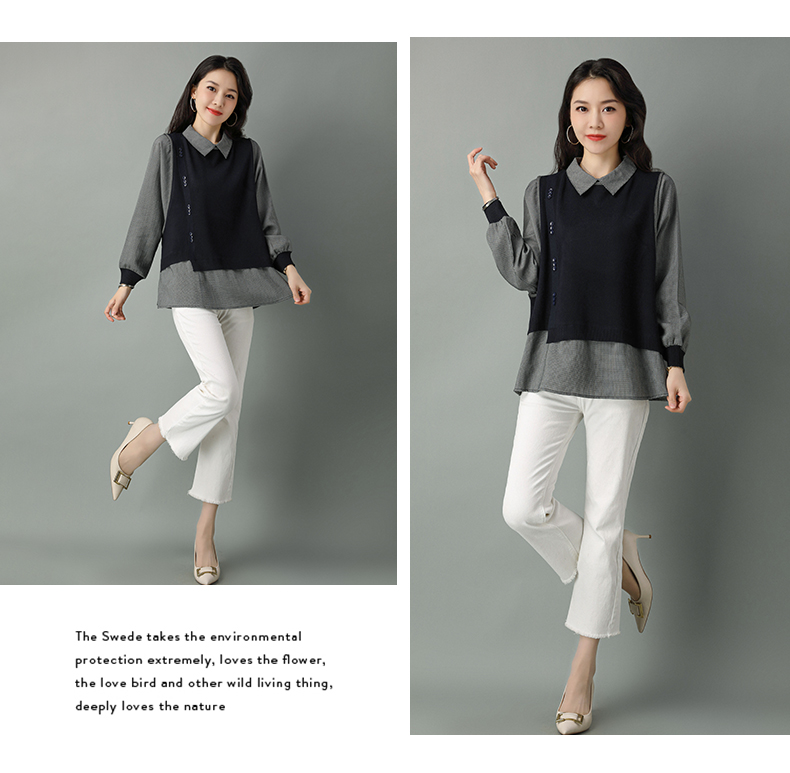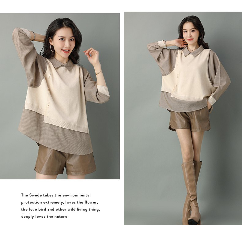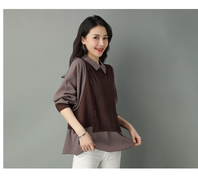 2022年新款大码假两件上衣长袖针织衫春装女士毛衣时尚打底衫洋气CC-101-35977