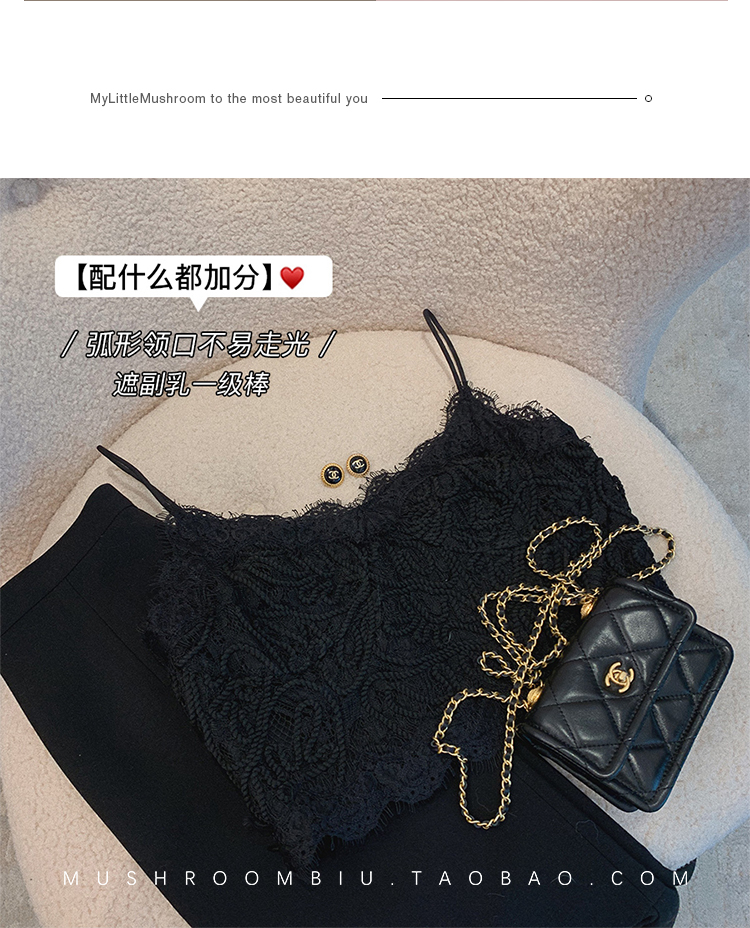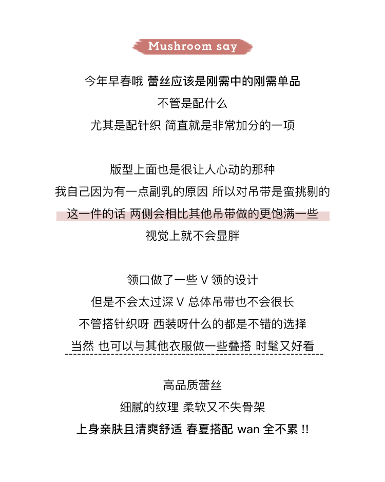 【金蘑菇菇 微醺百利甜】贯穿本期搭配的蕾丝吊带内搭神器