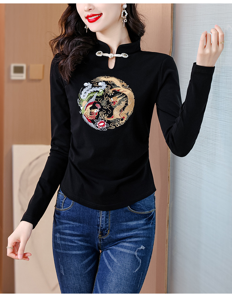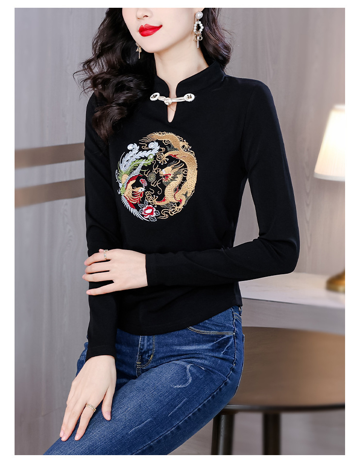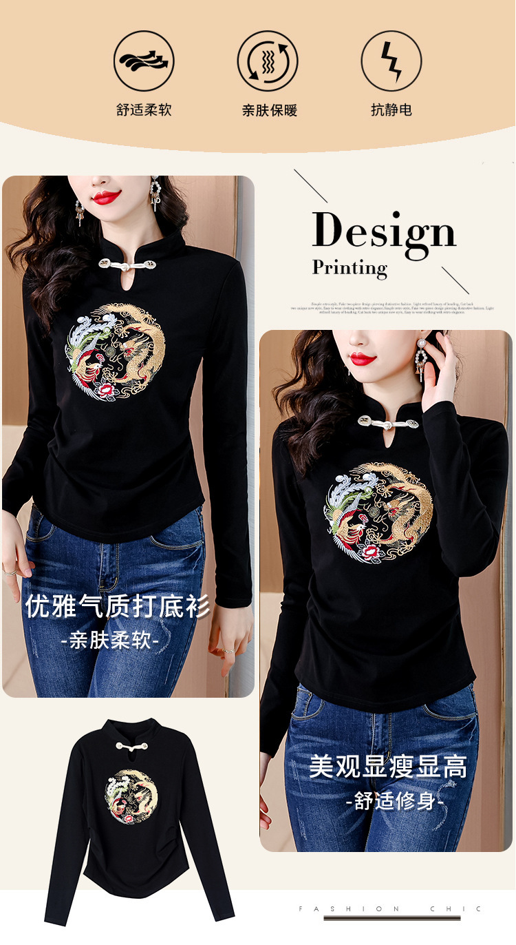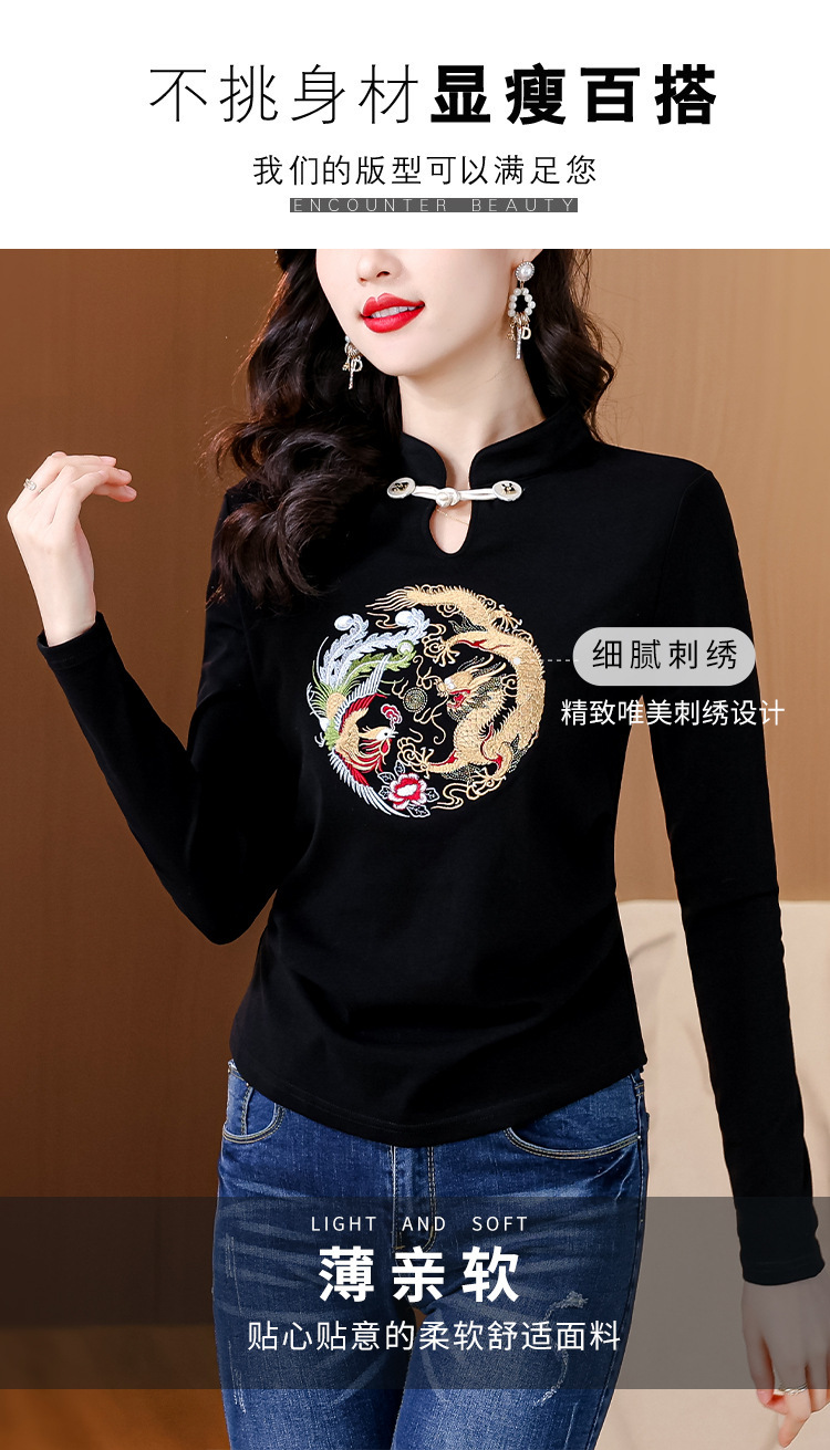短款立领国风刺绣,新中式盘扣打底衫KQL-355H8002
