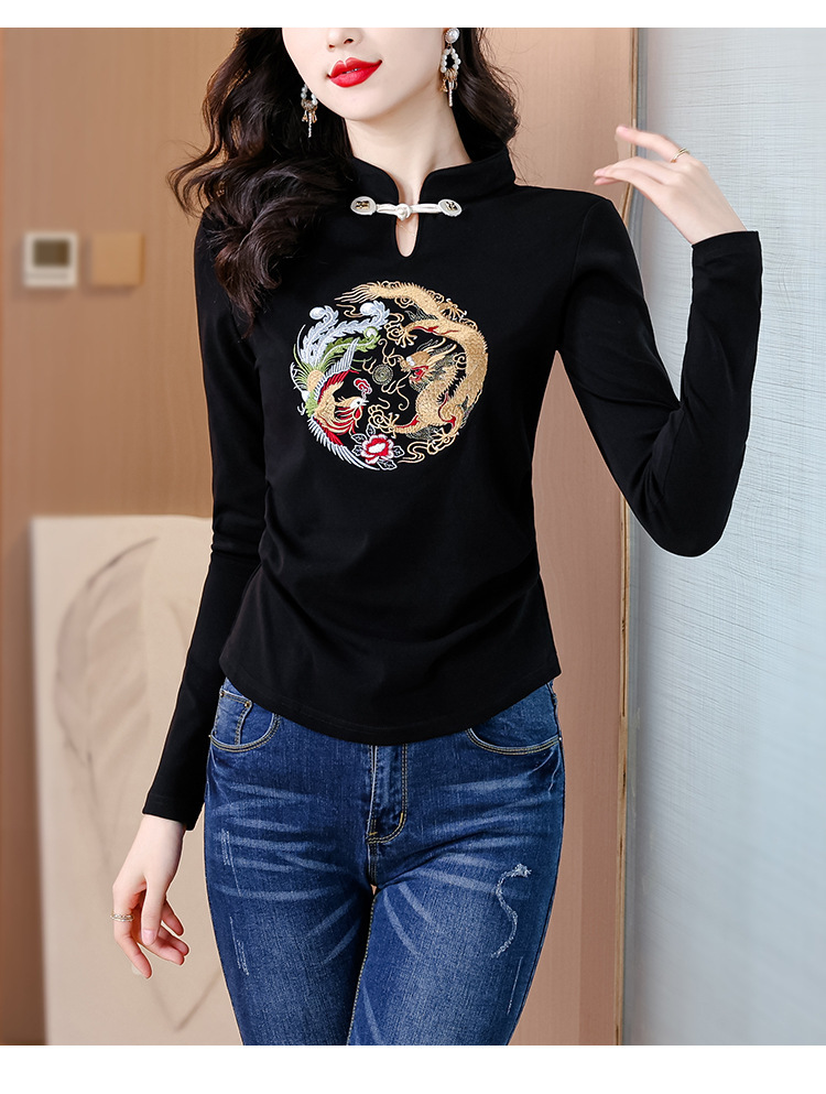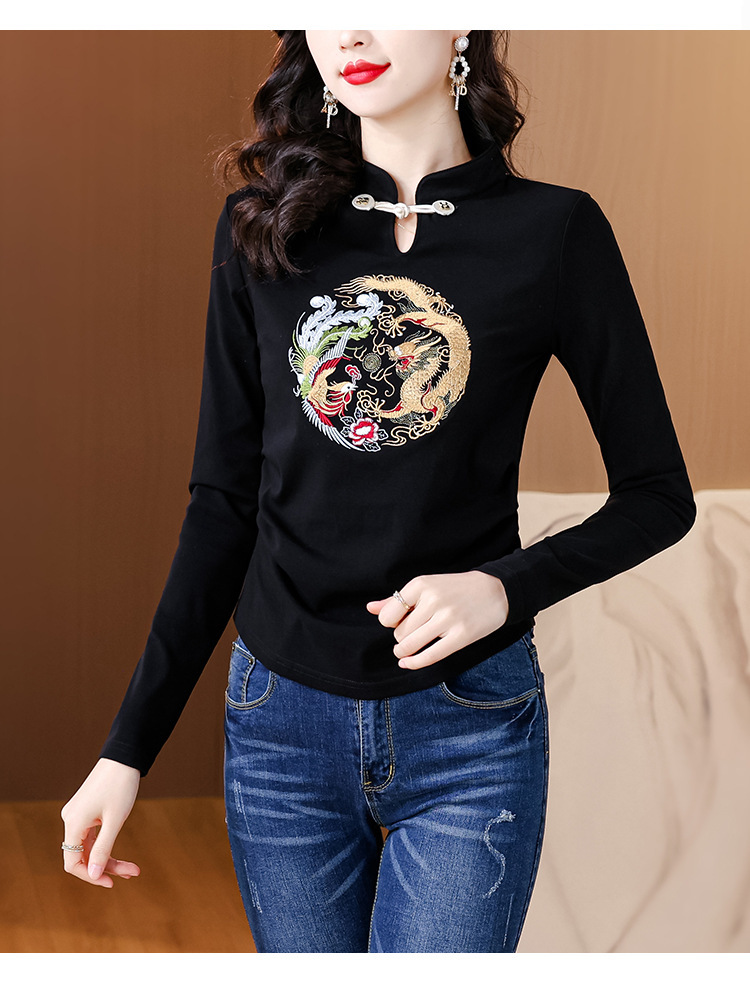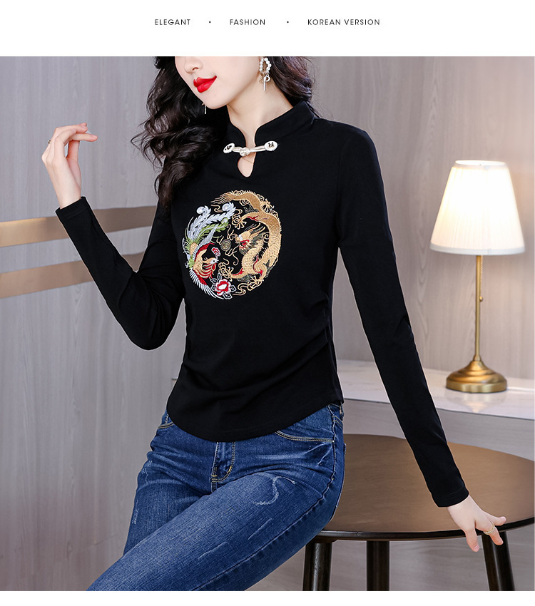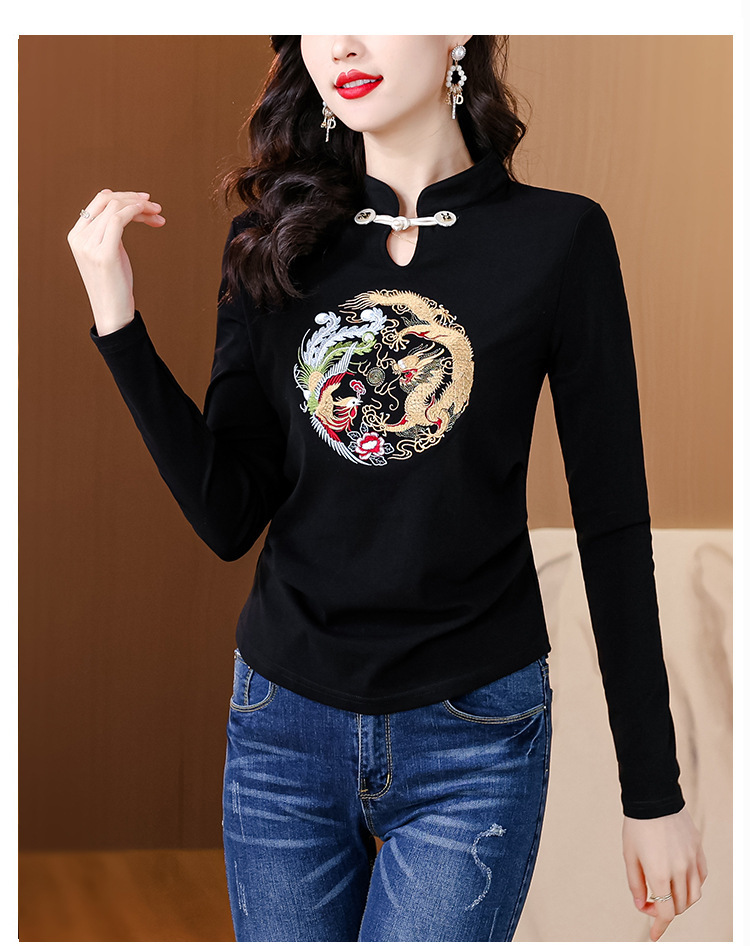 短款立领国风刺绣,新中式盘扣打底衫KQL-355H8002