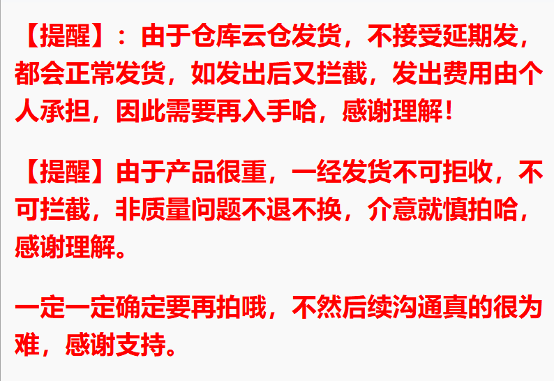 售后标准:该产品不支持七天无理由退换货,一经发货不可拒收,取消,介意慎拍!