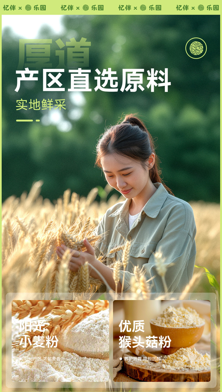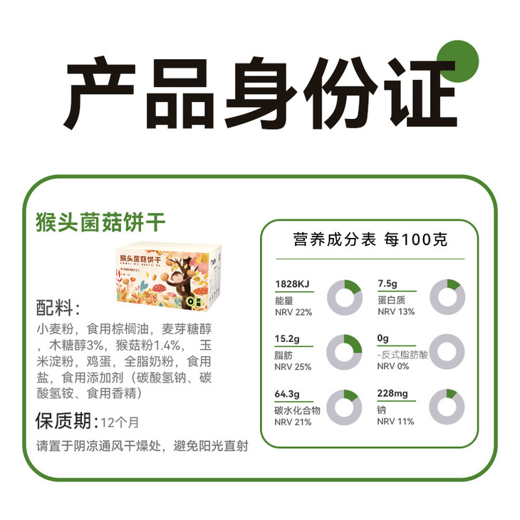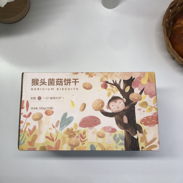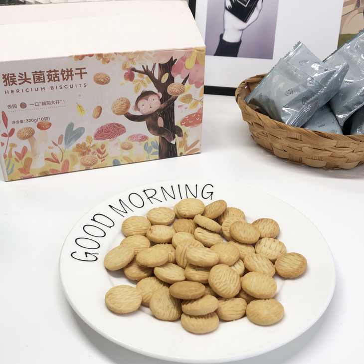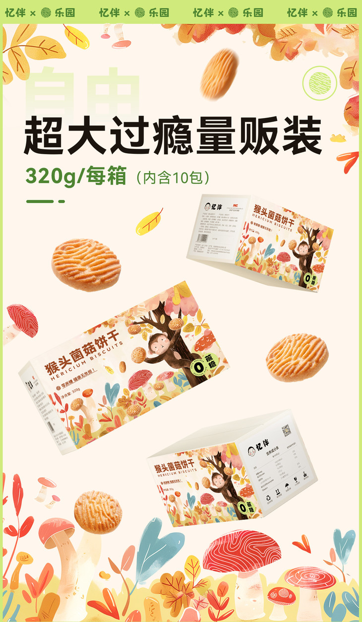 【忆伴零蔗糖猴头菌菇饼干】 ✅整箱约206片,320g/箱,10袋独立包装,超级便携卫生 ✅一家人都可以吃的健康小饼干,0反式脂肪酸,阳光小麦粉原料+优质猴头菇粉,用料超实在