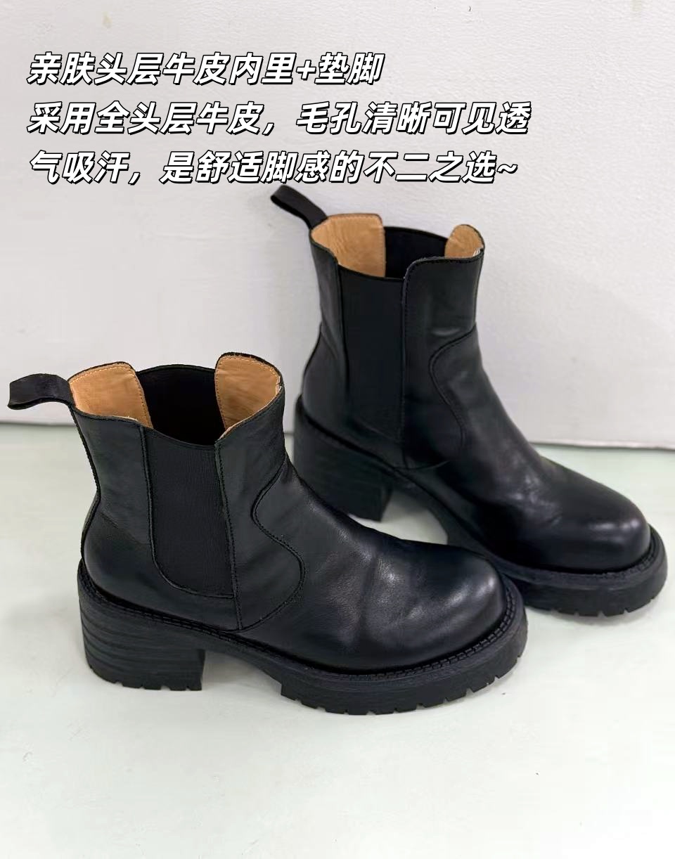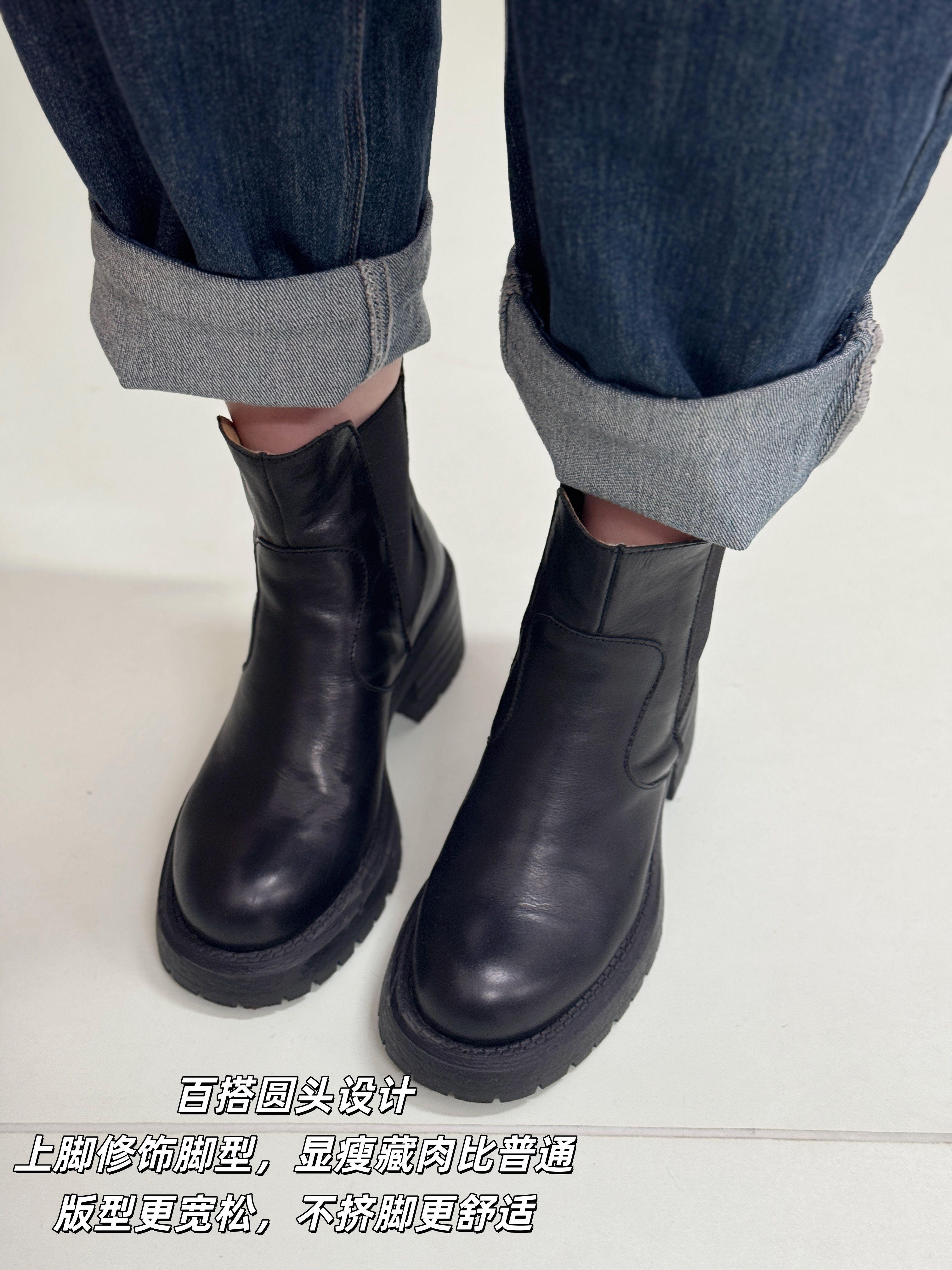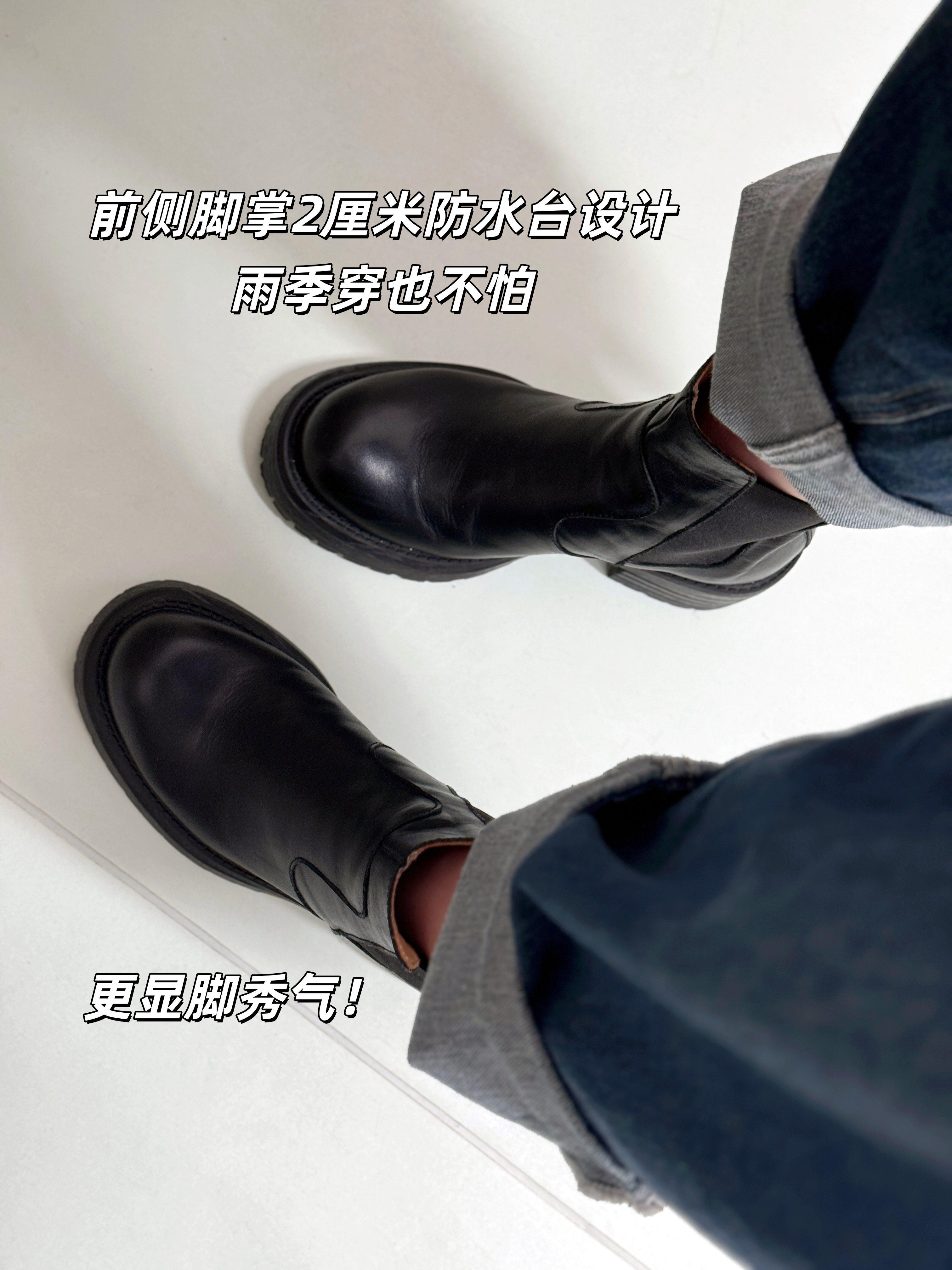 花粉定制【切尔西靴】不加绒,正码正拍,无需拍大一码!黑色、棕色经典色系,筒口松紧设计,穿脱方便,鞋面头层植鞣牛皮,内里头层牛皮,鞋底防滑耐磨,北方可穿