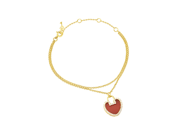 品名:心动 手链(925银镀18K金镶嵌红玛瑙、5A级锆石)