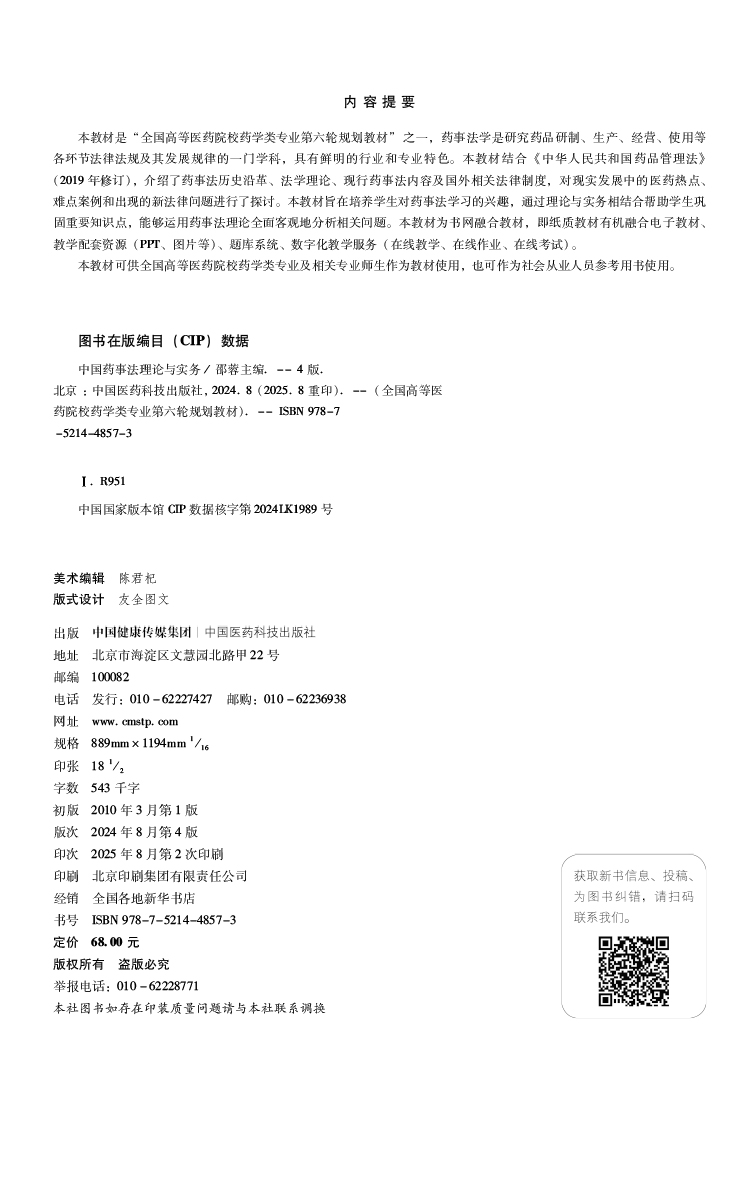 中国药事法理论与实务 第4四版 全国高等医药院校药学类专业第六轮规划教材 邵蓉 供药学类专业用9787521448573中国医药科技出版社