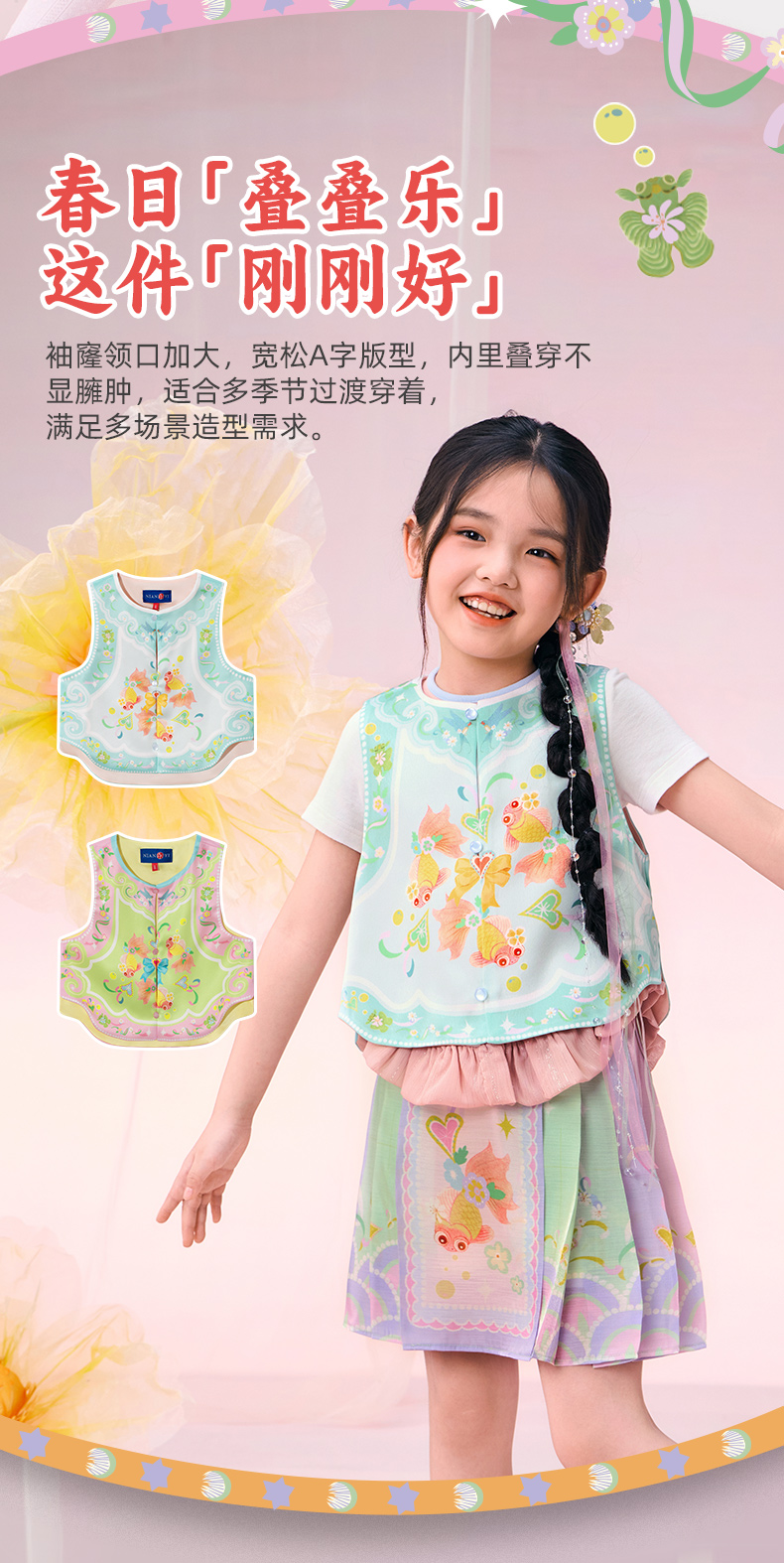 年衣童装女童2025新款儿童国风中式如鱼得水中式马甲