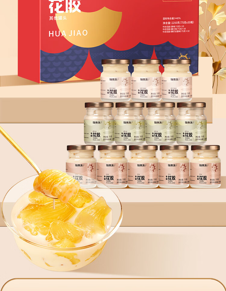 【品牌优选】福东海 即食花胶奶冻75克/瓶 8瓶 12瓶16瓶 30瓶装礼盒款 补充胶原蛋白 轻食鱼胶女性孕妇滋补营养品