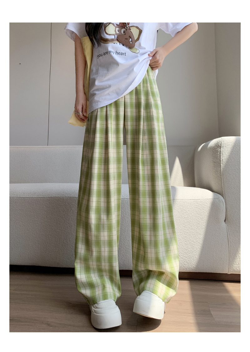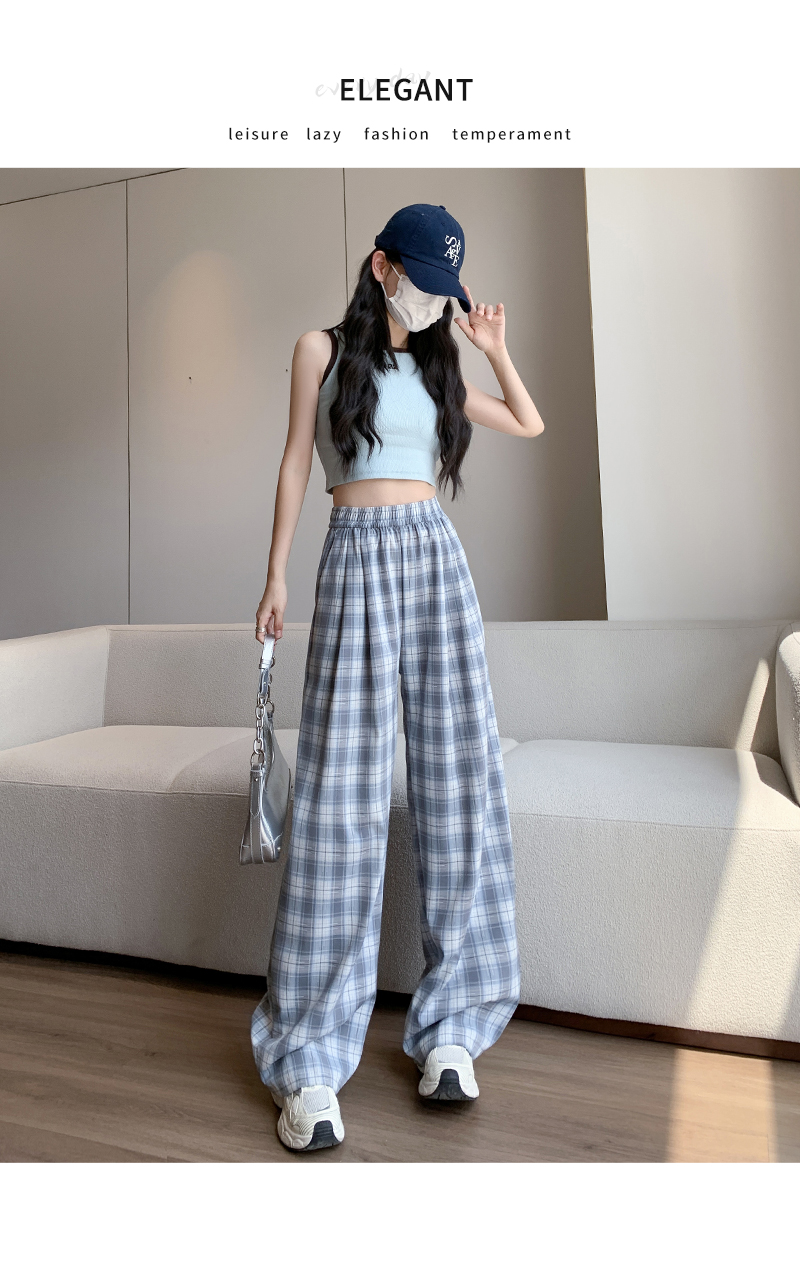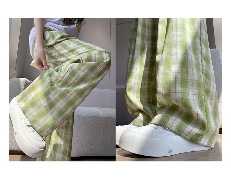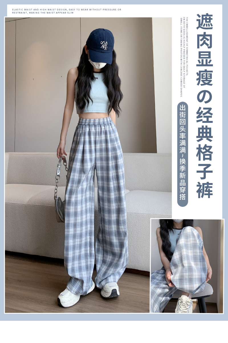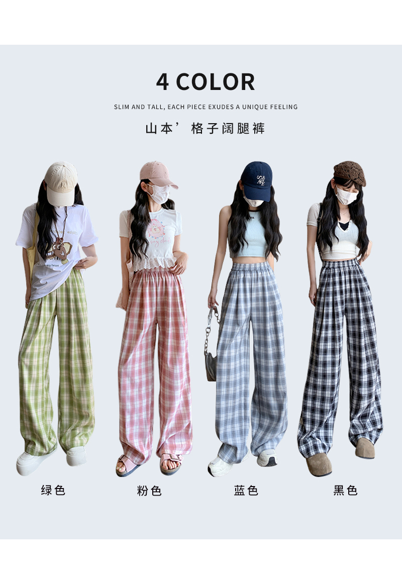【YW】无忧购夏日多巴胺撞色格子宽松高腰垂感显瘦阔腿裤H-1775(截单后7天发货)