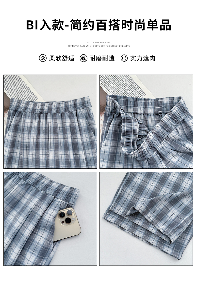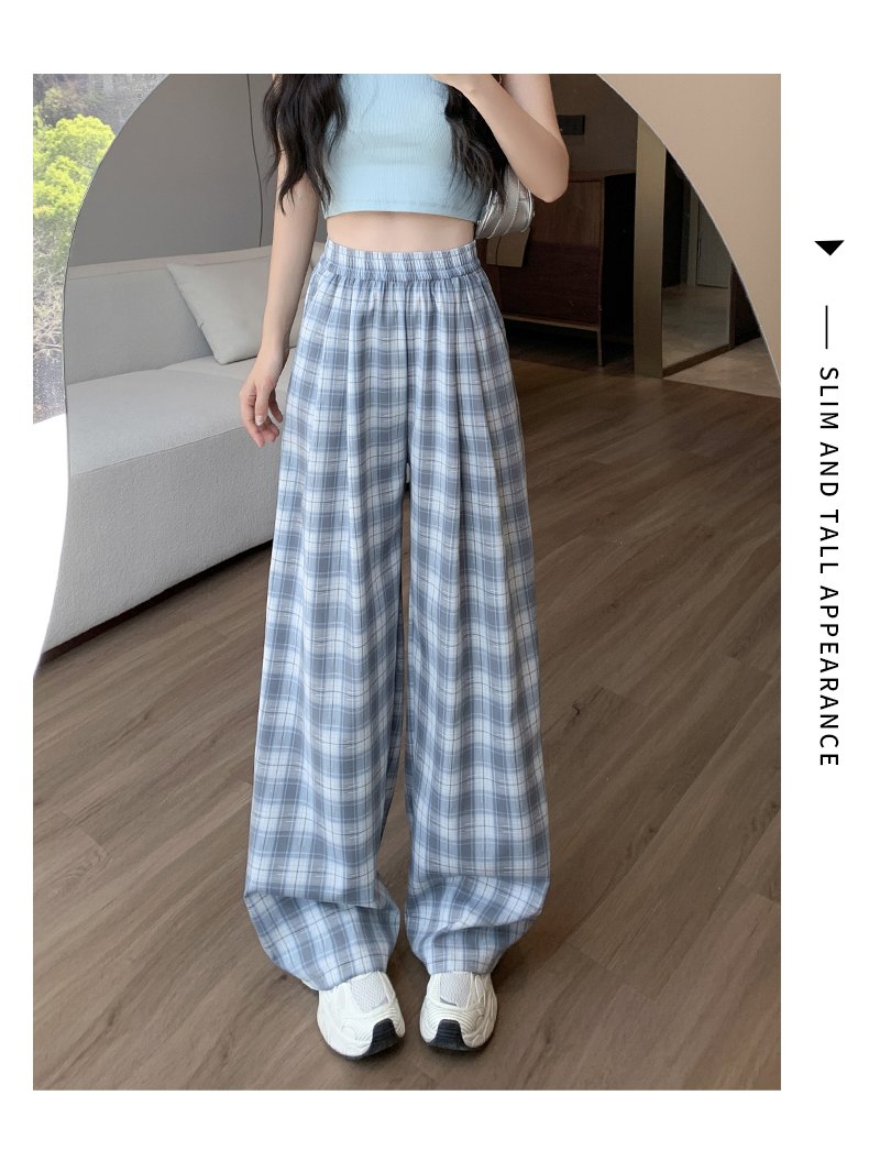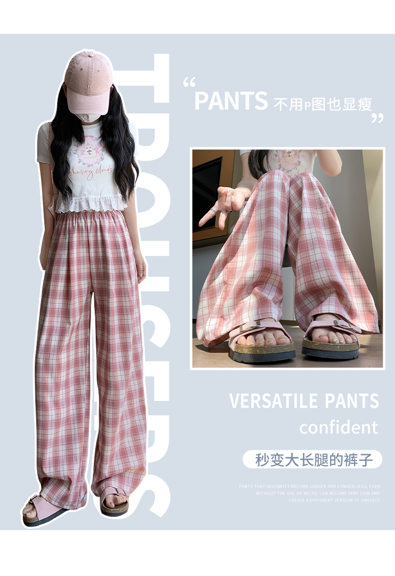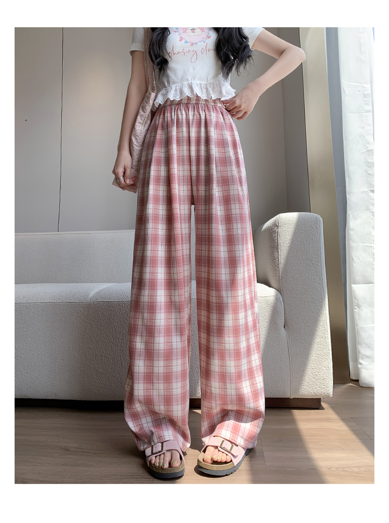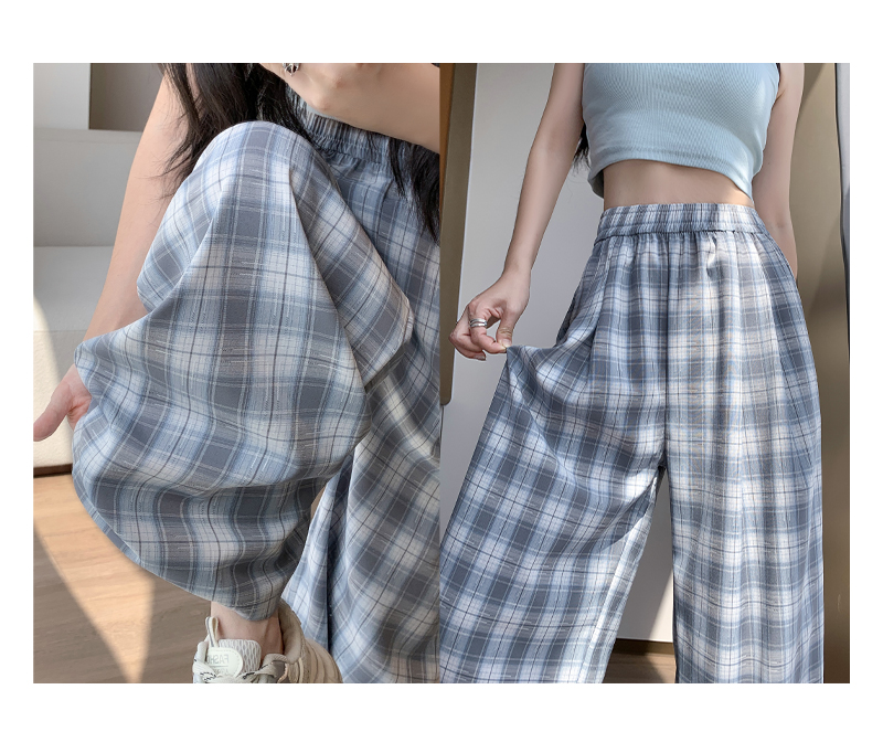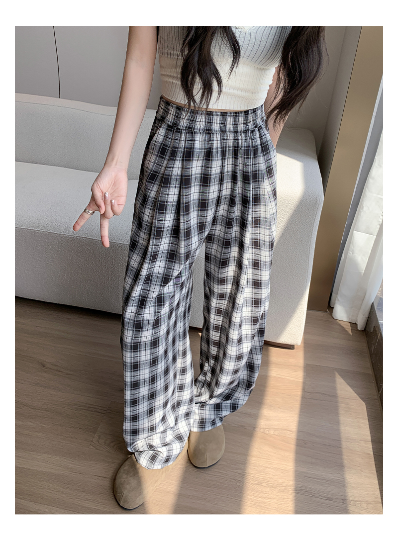 【YW】无忧购夏日多巴胺撞色格子宽松高腰垂感显瘦阔腿裤H-1775(截单后7天发货)