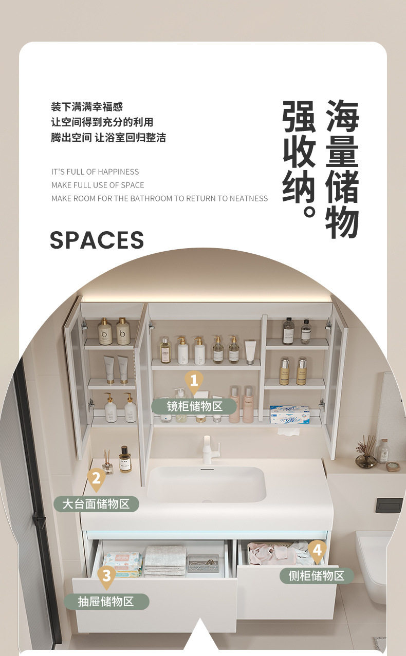 柜盆圆弧脸盆陶瓷浴室柜洗手盆一体卫生间盆洗脸盆肤感洗漱盆组合