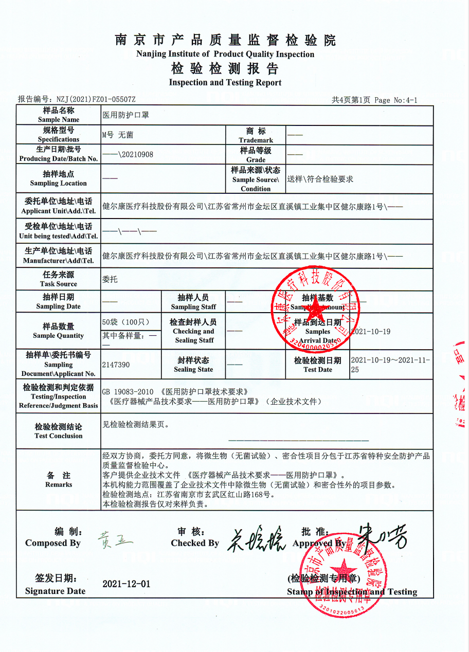 官方的检测报告可以清楚看到经过了无菌检验、口罩佩戴体验感和防护能力等项目,明明白白。