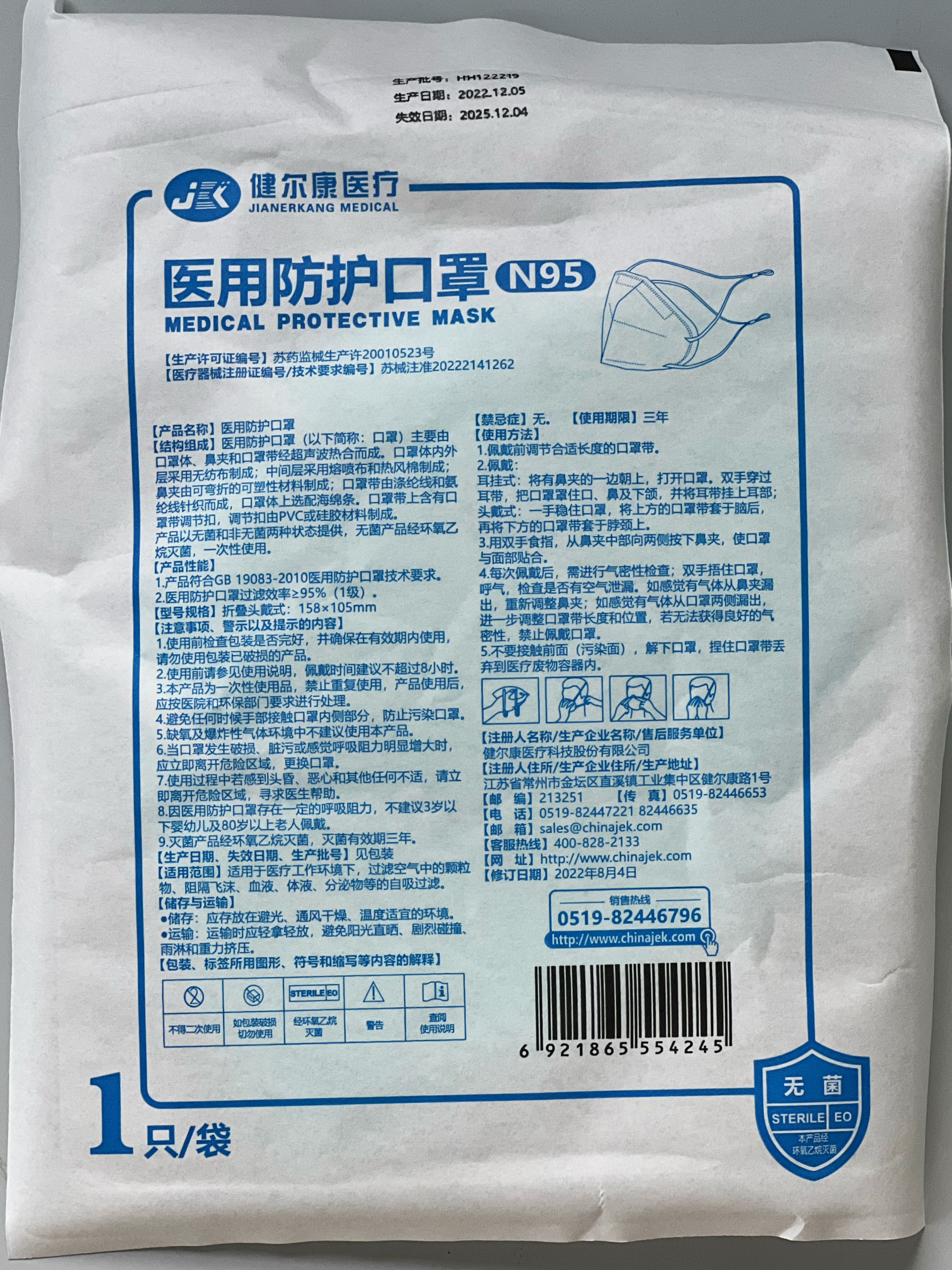 虽然我们普通人使用其实在拆开的瞬间就不是无菌状态了,但我建议选灭菌的N95,这样才能保证生产环境的无菌状态。
