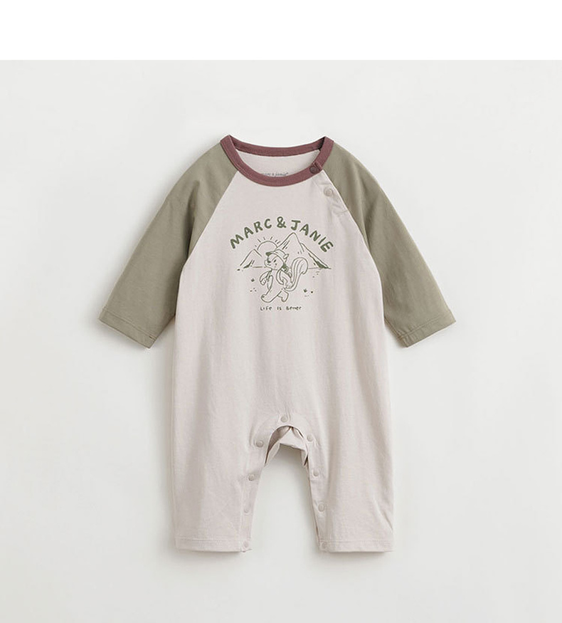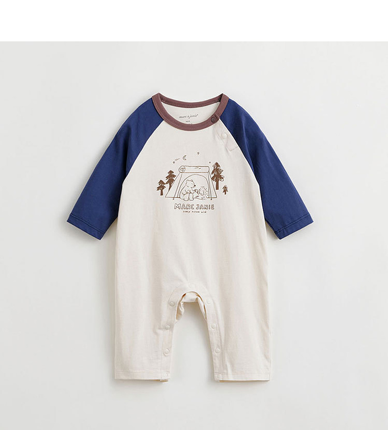 马克珍妮男女宝宝户外风连体衣婴儿小熊涂鸦纯棉哈衣爬服春240127