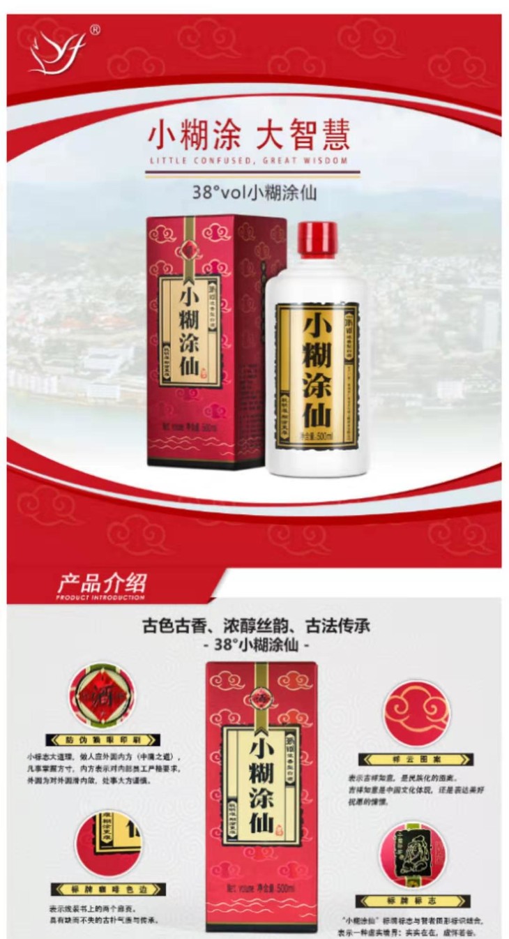 500ml小糊涂仙酒38度浓香型白酒*2瓶