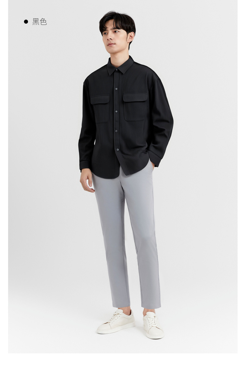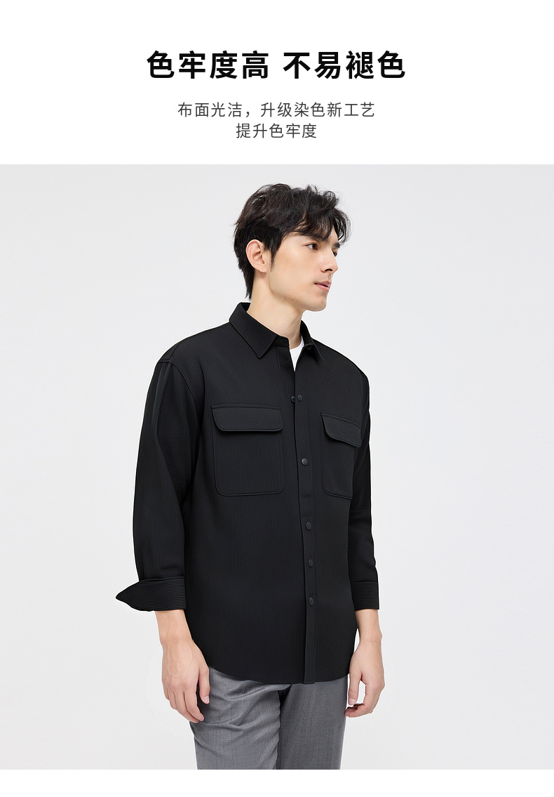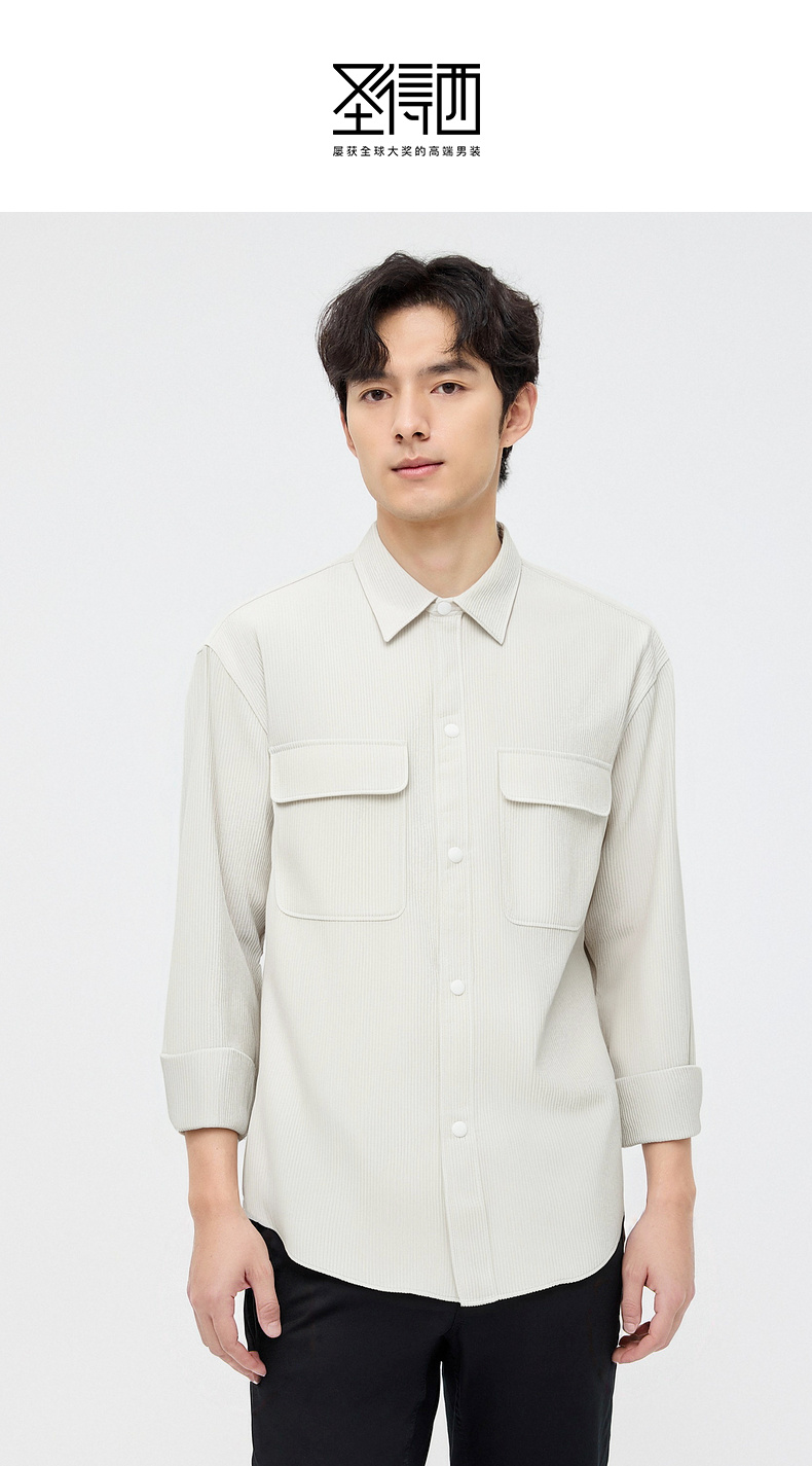 圣得西男士长袖衬衫秋季新款易打理休闲通勤纯色简约男装上衣外套