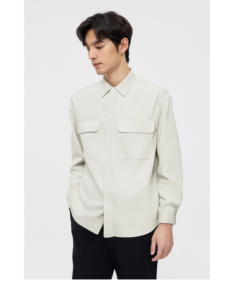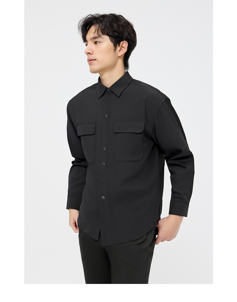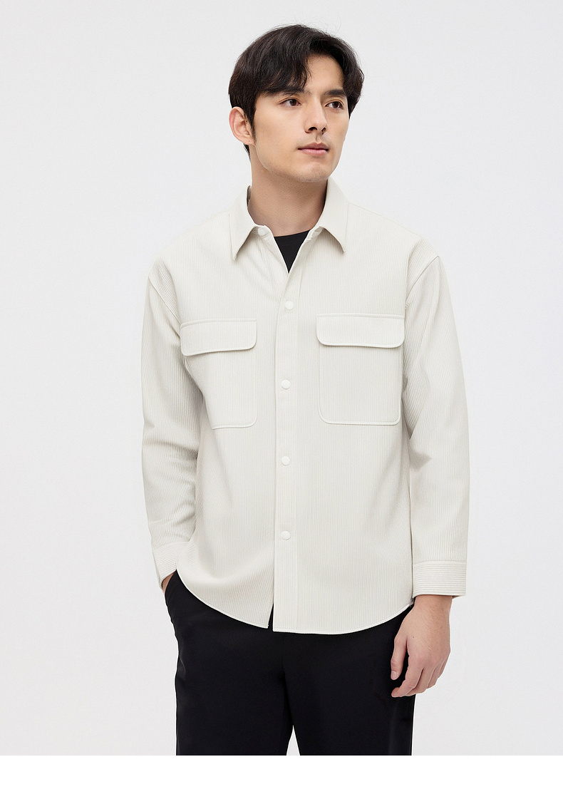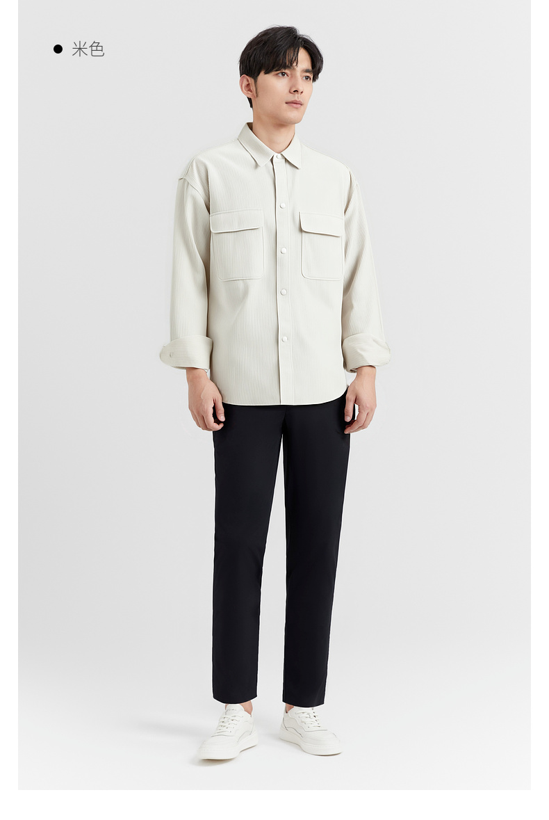 圣得西男士长袖衬衫秋季新款易打理休闲通勤纯色简约男装上衣外套