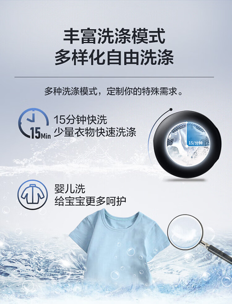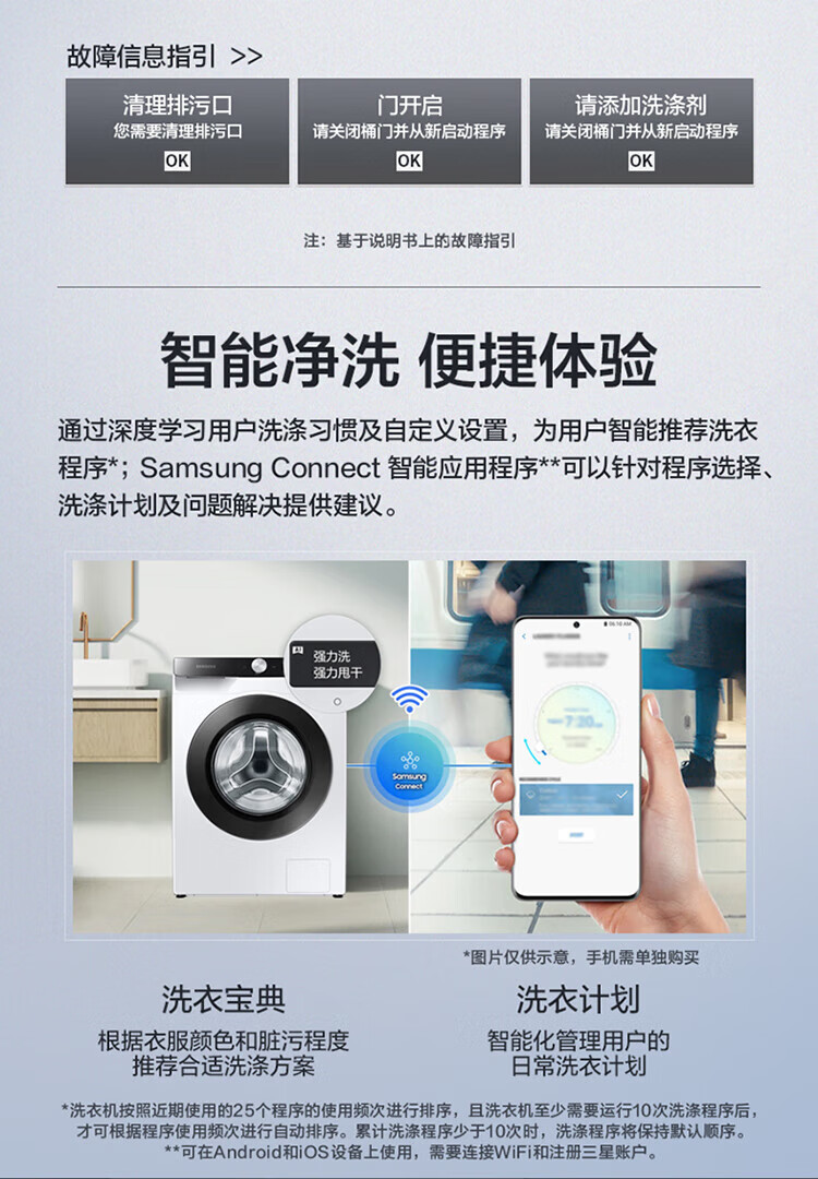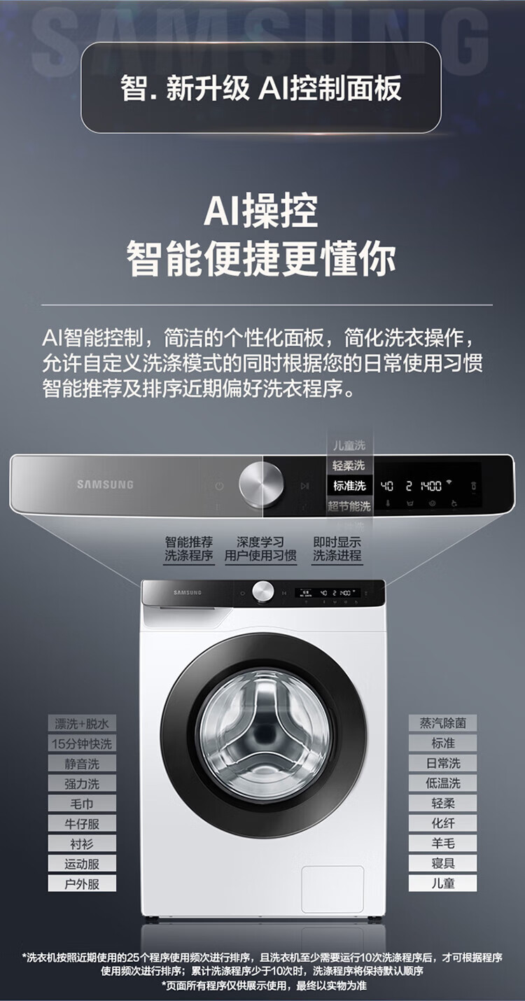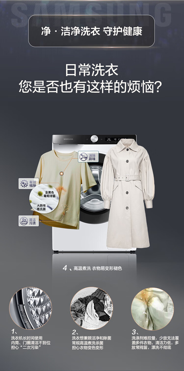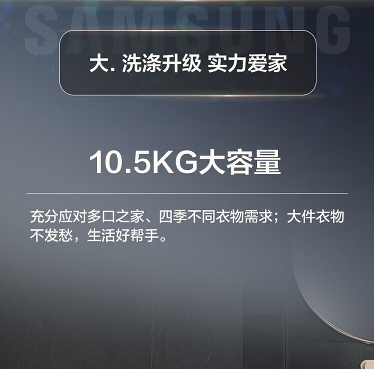 【年终燃购】三星(SAMSUNG)10.5公斤滚筒洗衣机 蒸汽除菌 高温桶自洁 15分钟快洗 泡泡净洗10公斤洗衣机