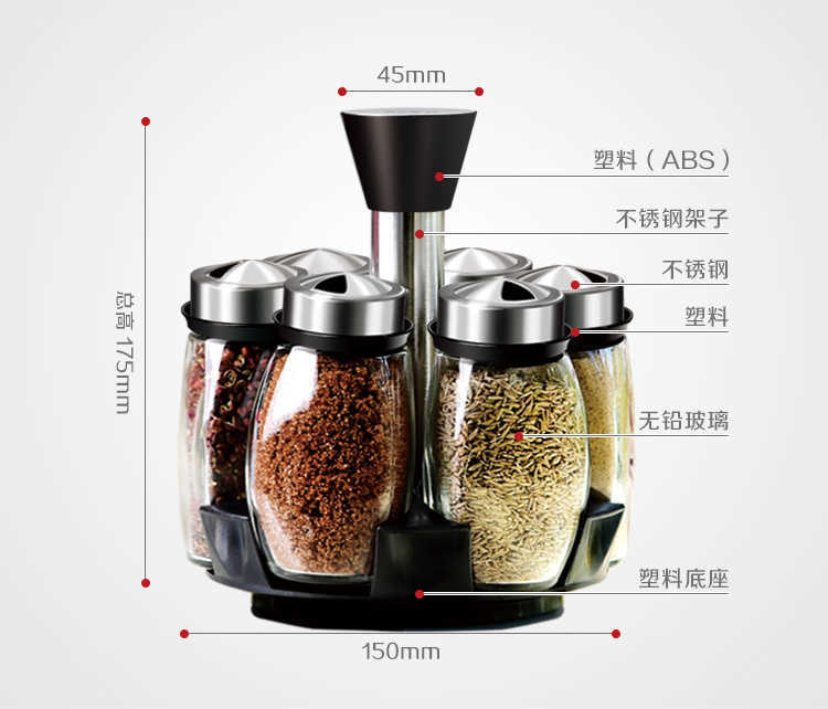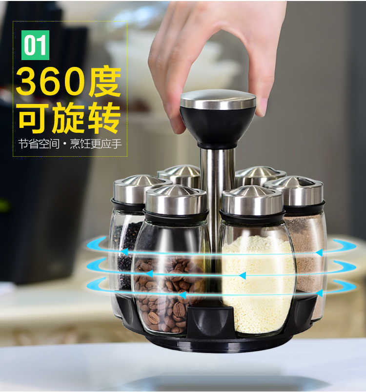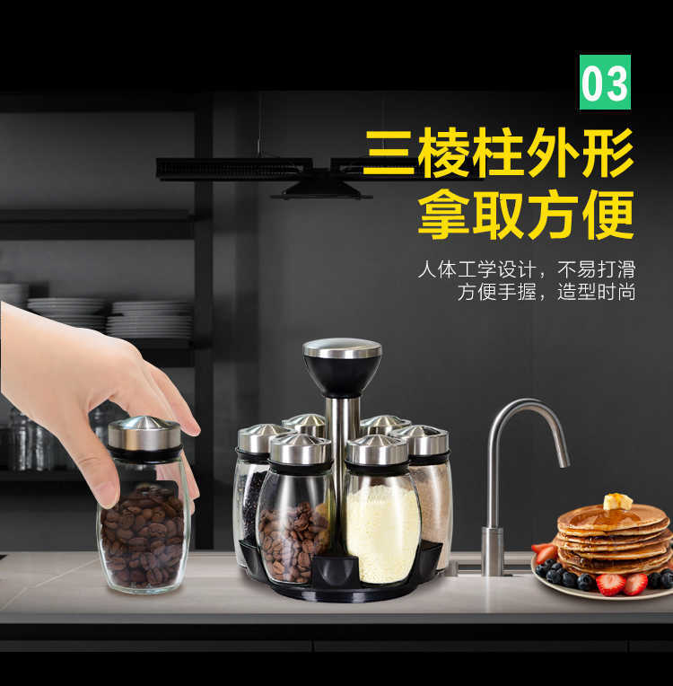 创意旋转调味瓶佐料盒玻璃调料瓶罐调料盒套装调味罐厨房家用
