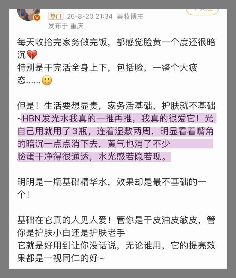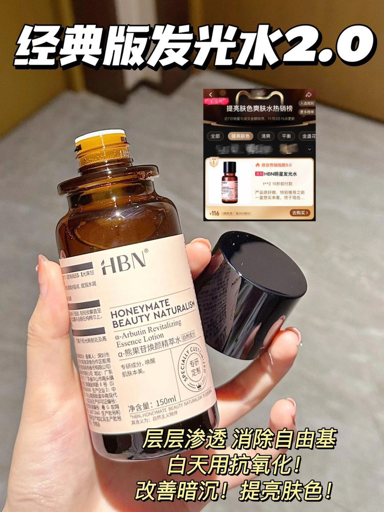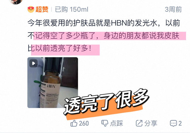 HBN明星发光水2.0你们瞅瞅这天猫榜单人家直接霸占提亮肤色爽肤水的热销榜、好评榜、回购榜三个榜的TOP1算下来都累计热卖2000多万瓶了这啥概念?就是用过的人都给出好评,还反复回购👍👍不管是熬夜熬成“小黄人”还是一直想变白变亮用它就完事儿,效果嘎嘎好‼️‼️‼️
