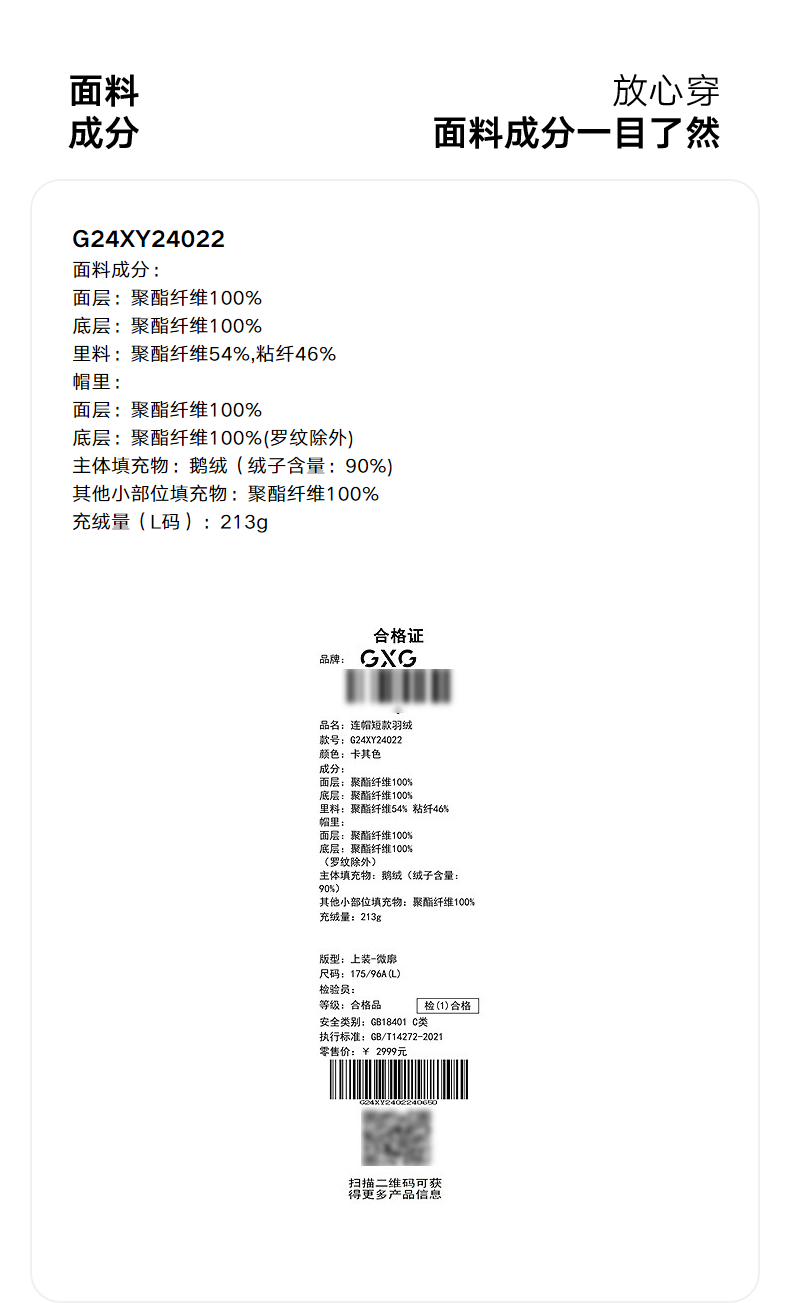 GXG男装 鹅绒保暖连帽羽绒服男通勤24年冬热卖G24XY24022