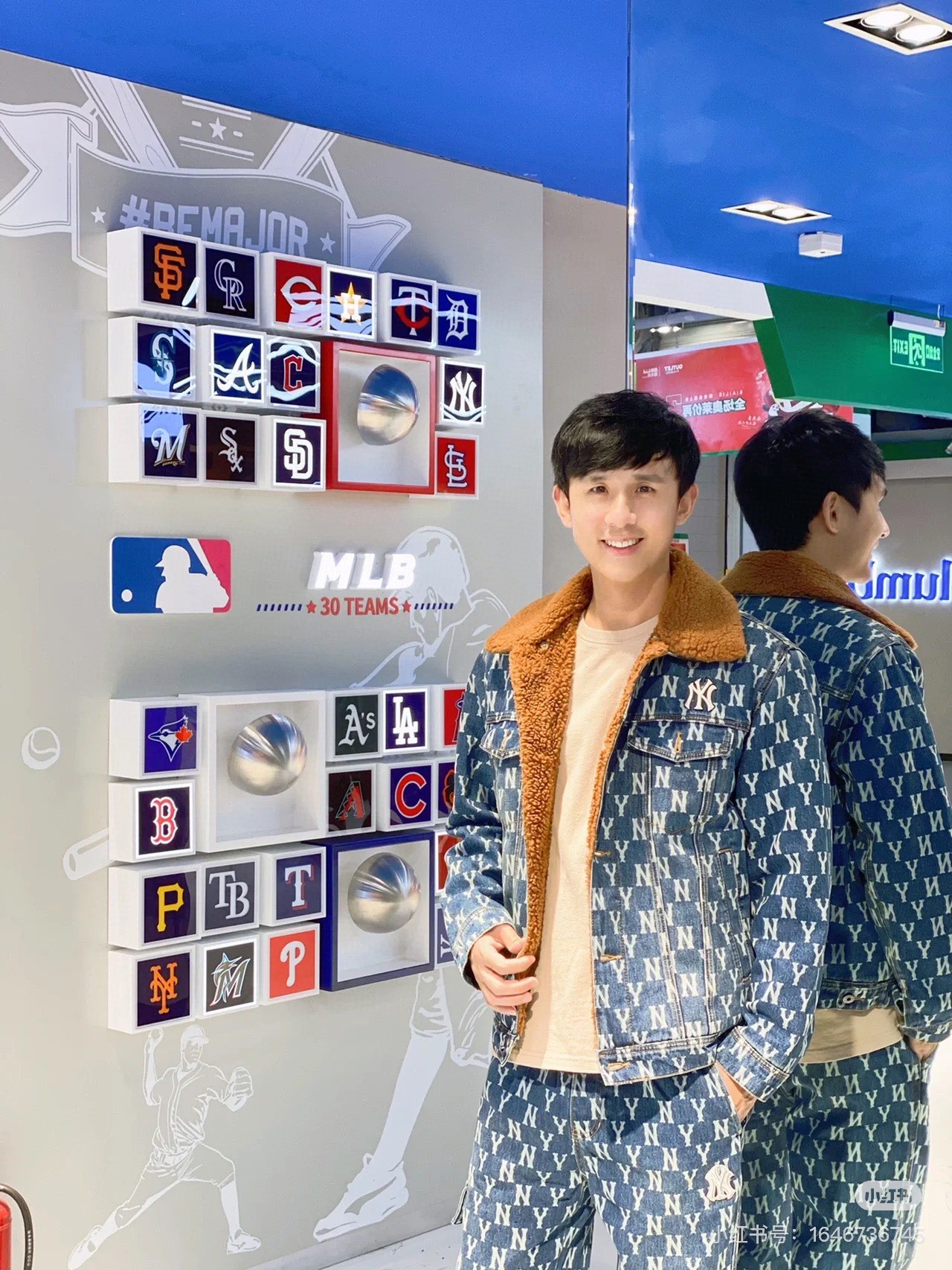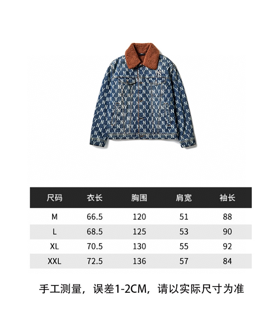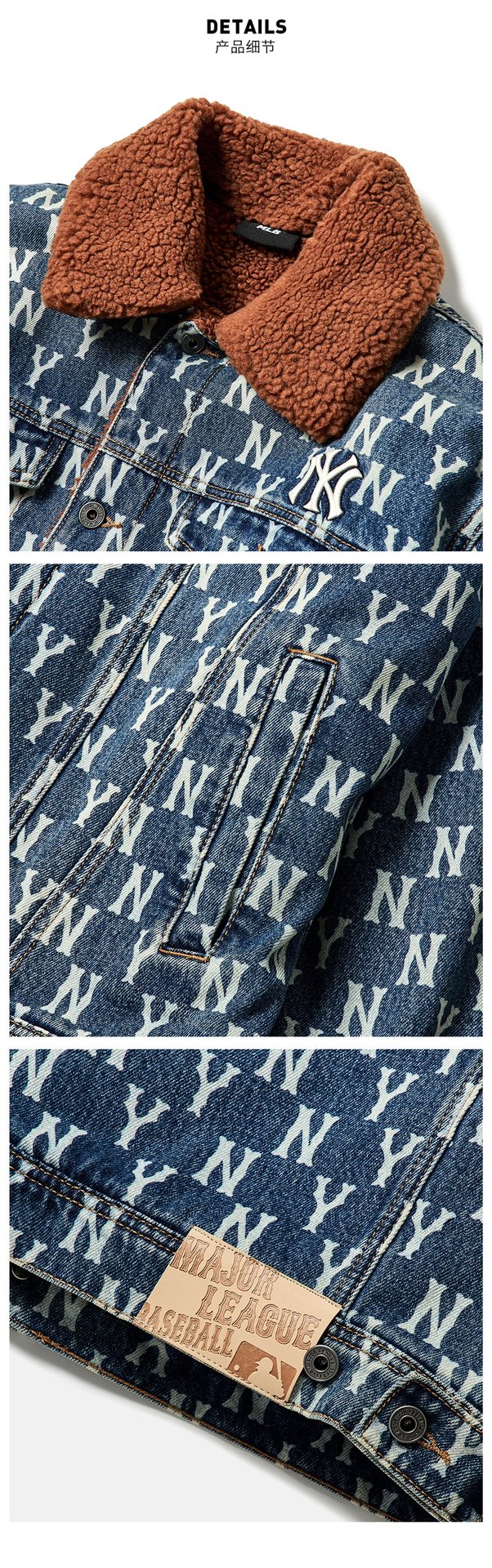 MLB 男女情侣复古老花羊羔绒牛仔外套