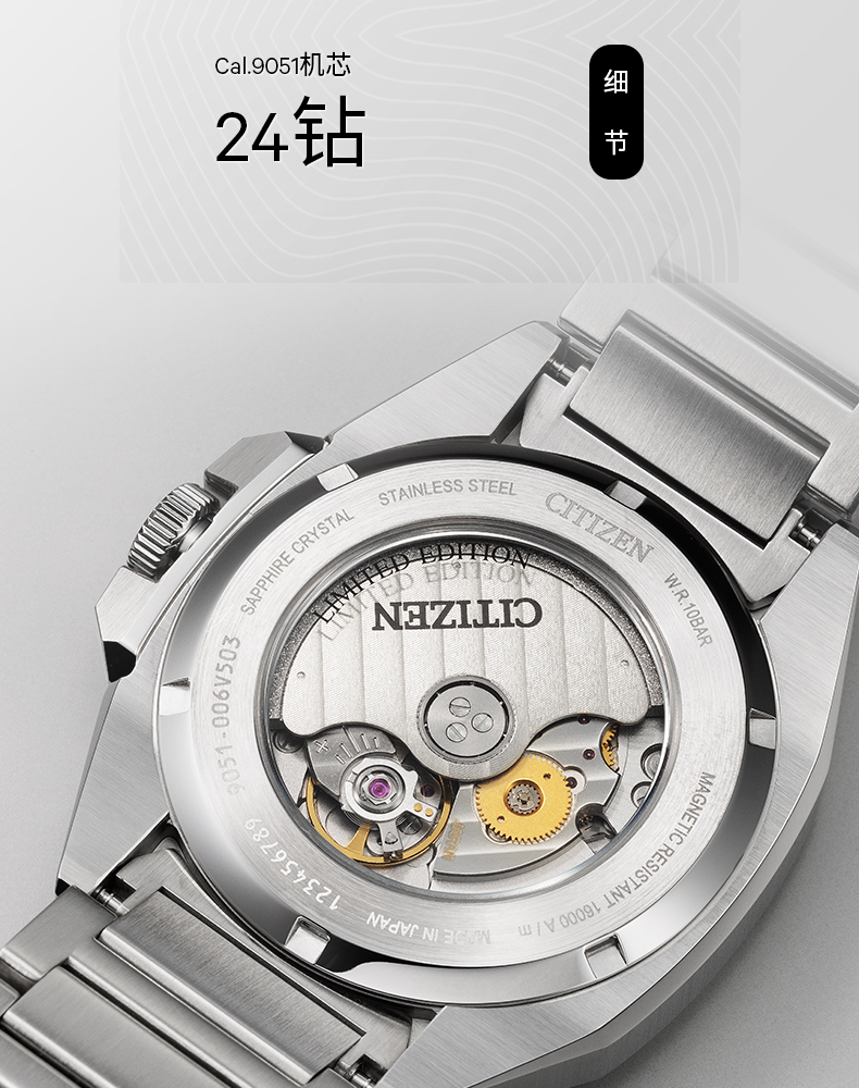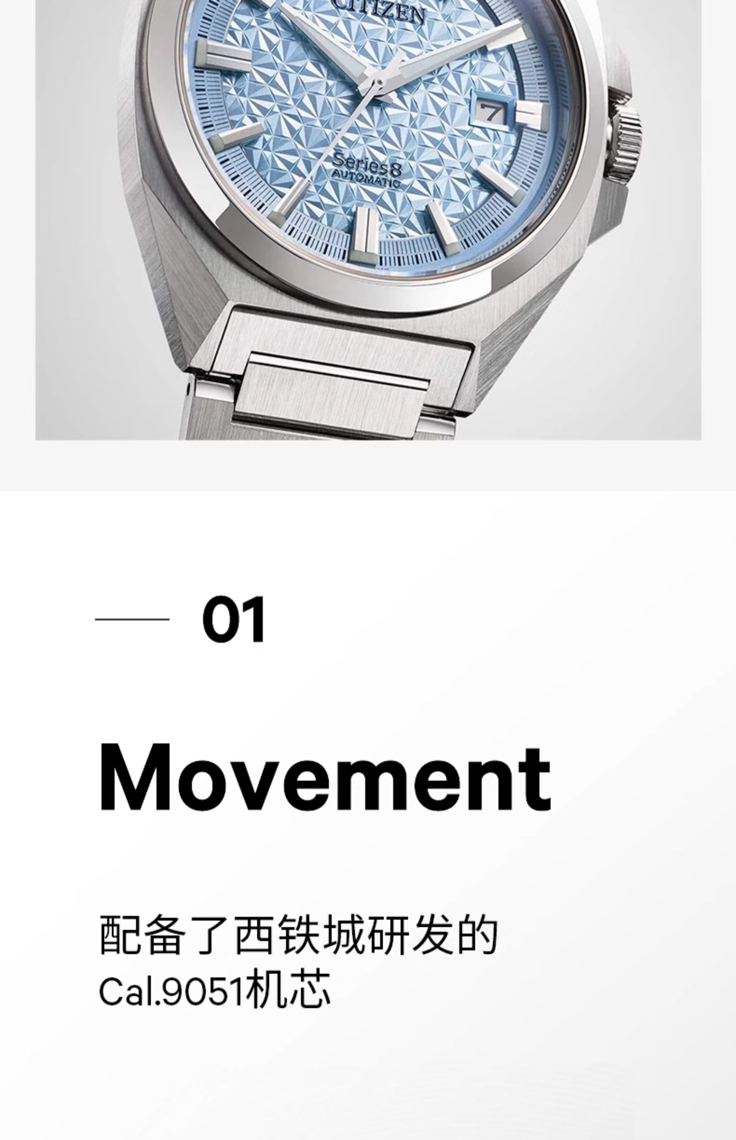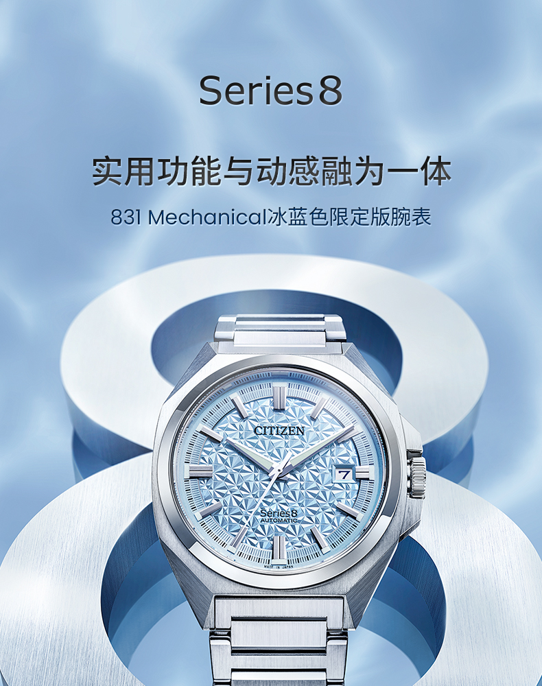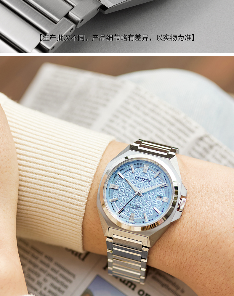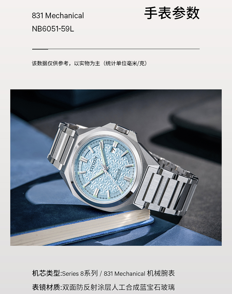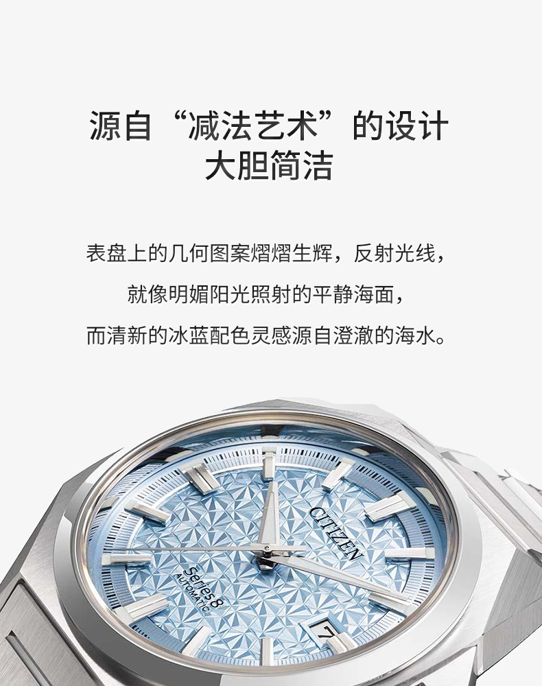 西铁城/CITIZEN机械防磁Series 8系列不锈钢冰蓝色男表NB6051-59L