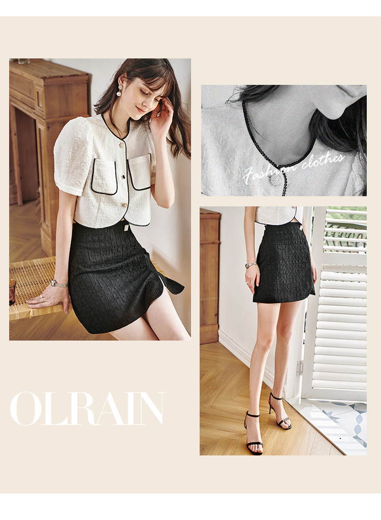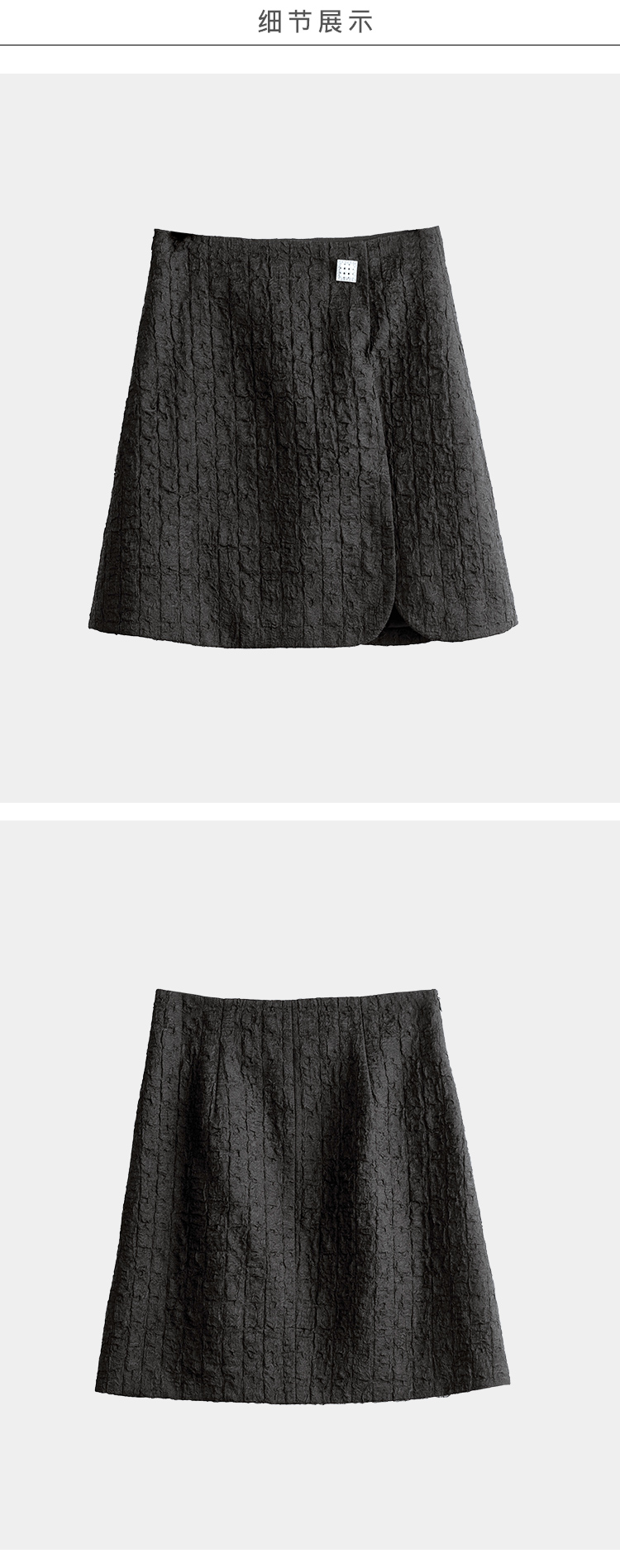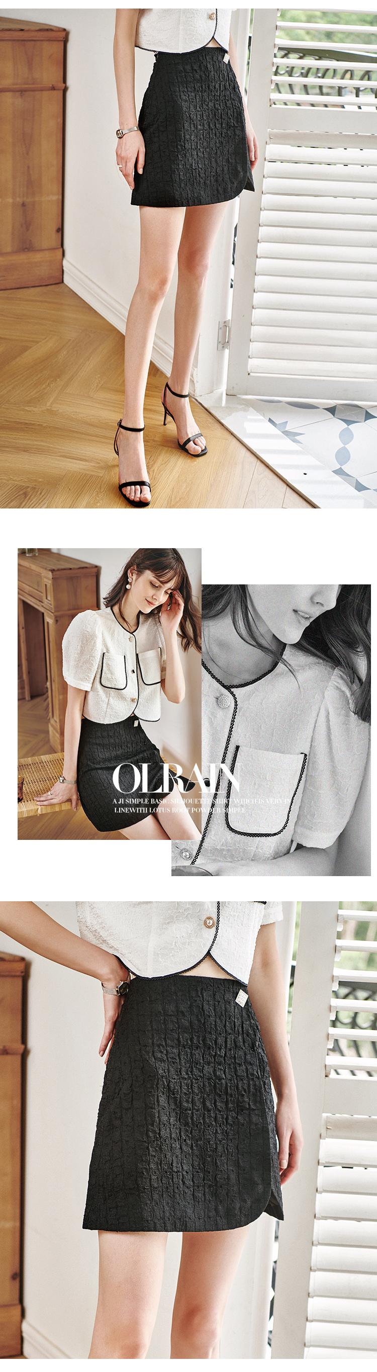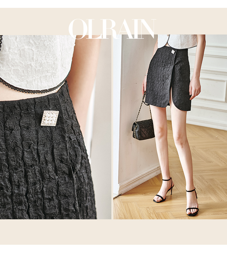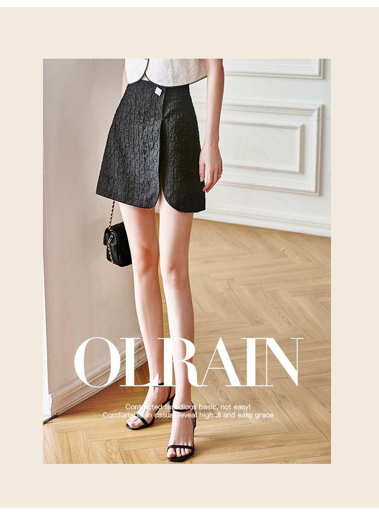 欧芮儿黑色半身裙女2021新款高腰显瘦时尚肌理纱摩登小A短裙