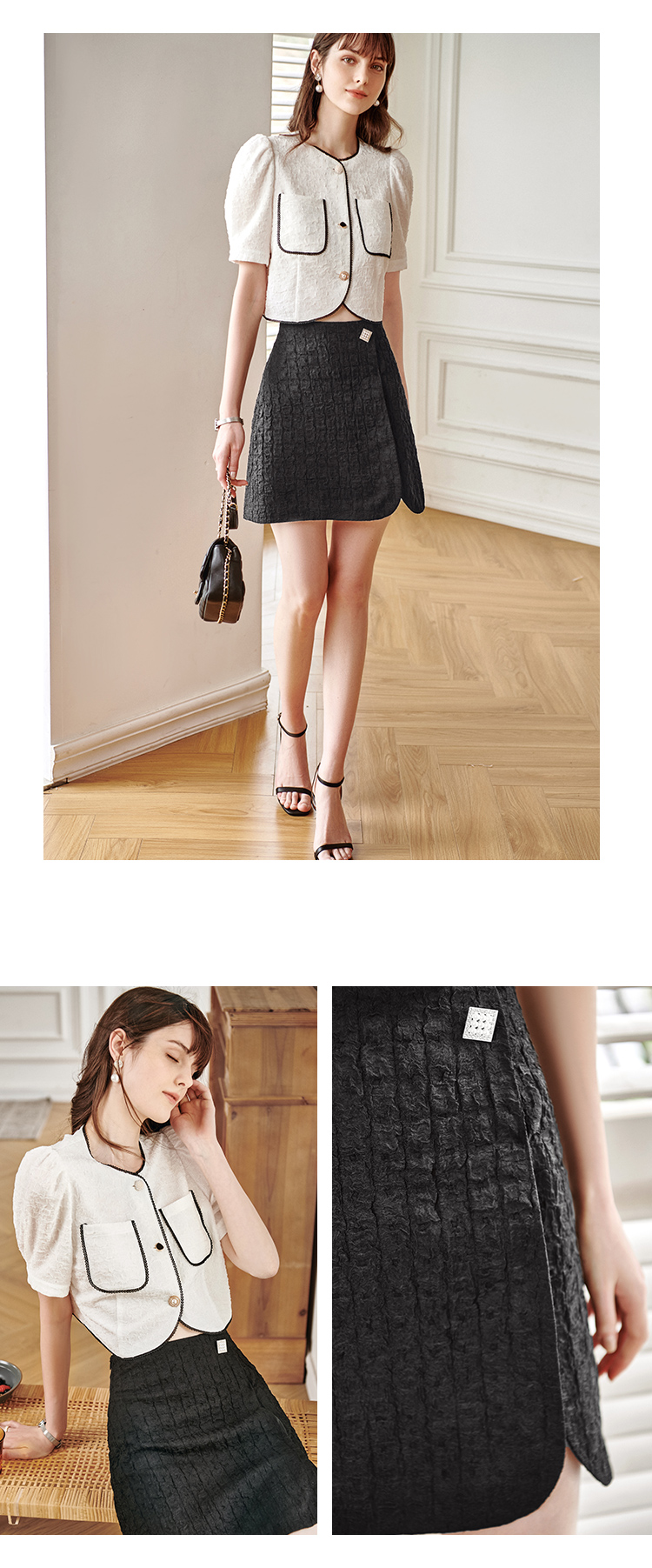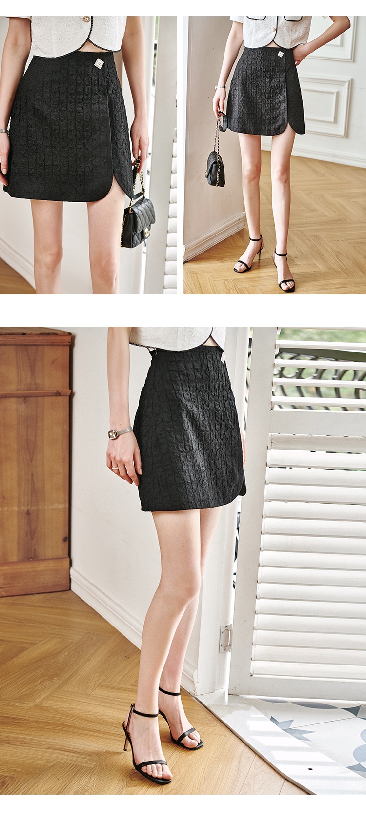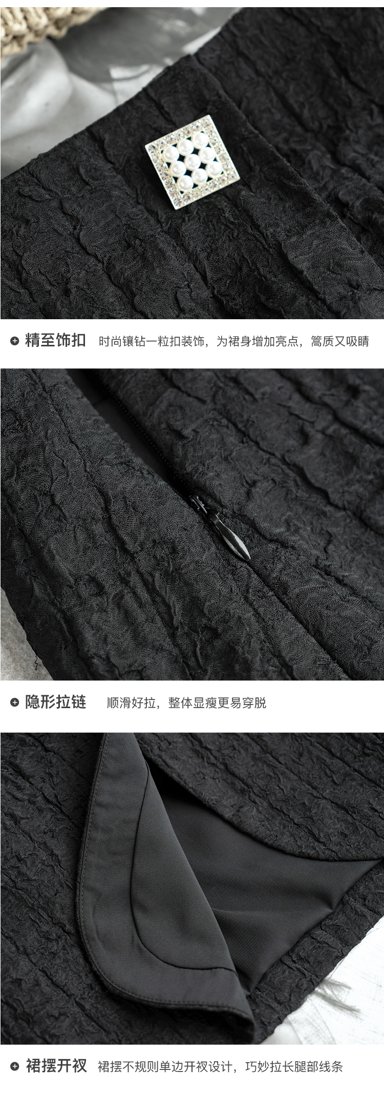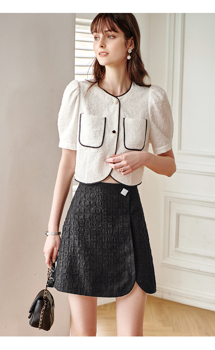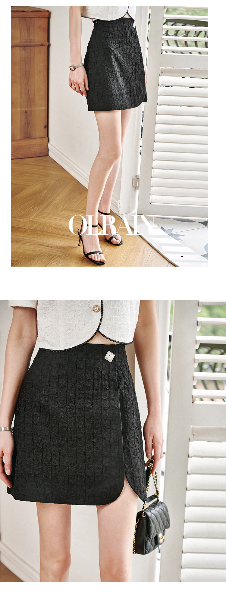 欧芮儿黑色半身裙女2021新款高腰显瘦时尚肌理纱摩登小A短裙
